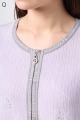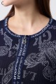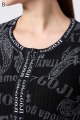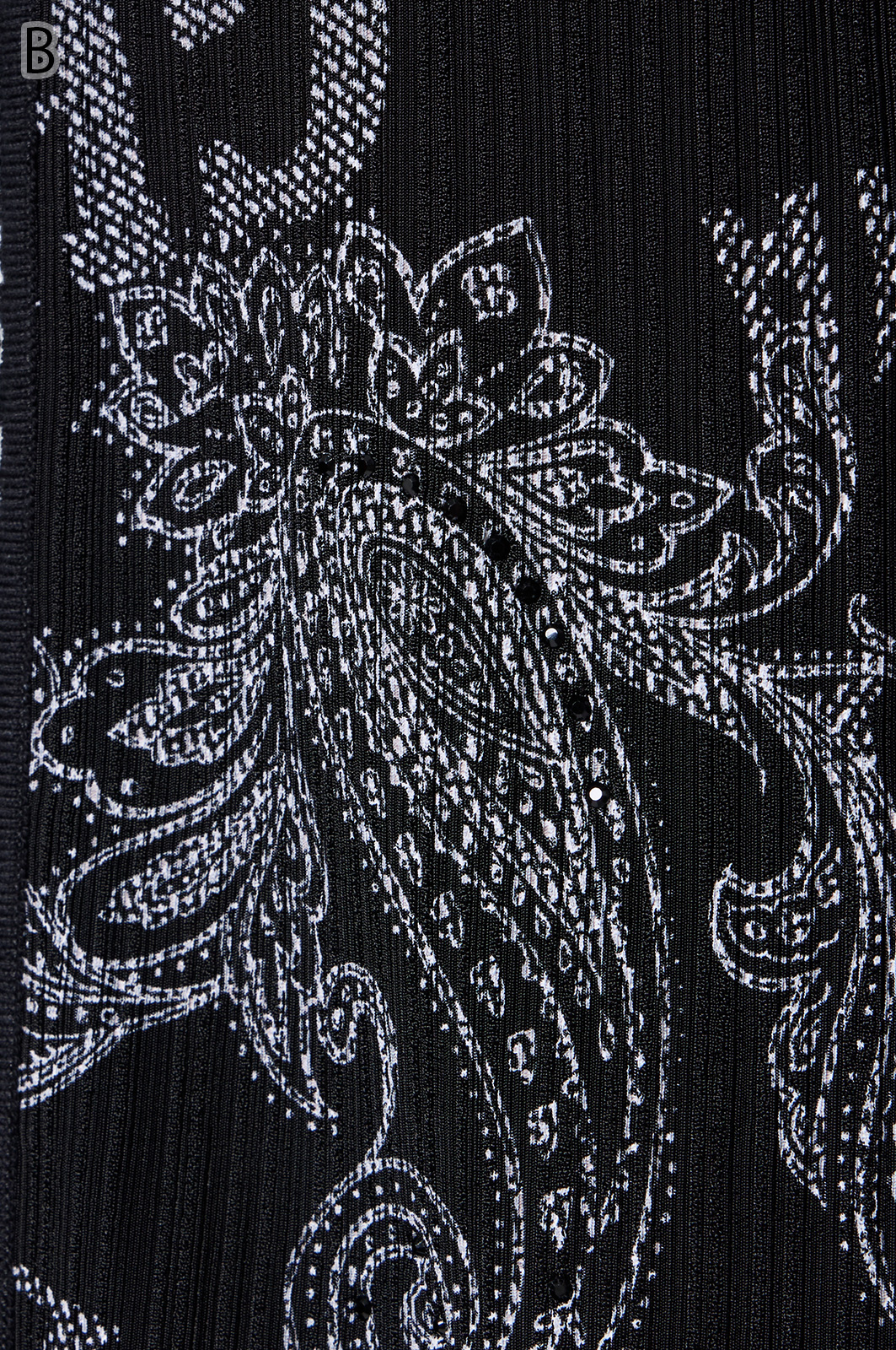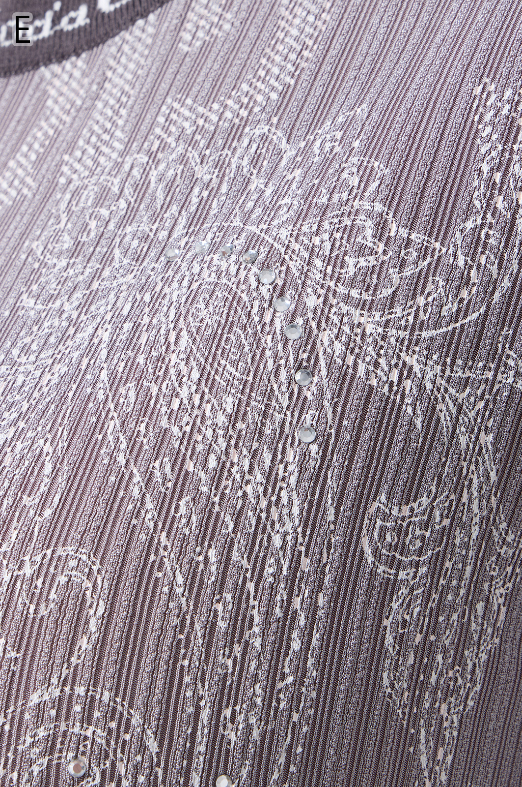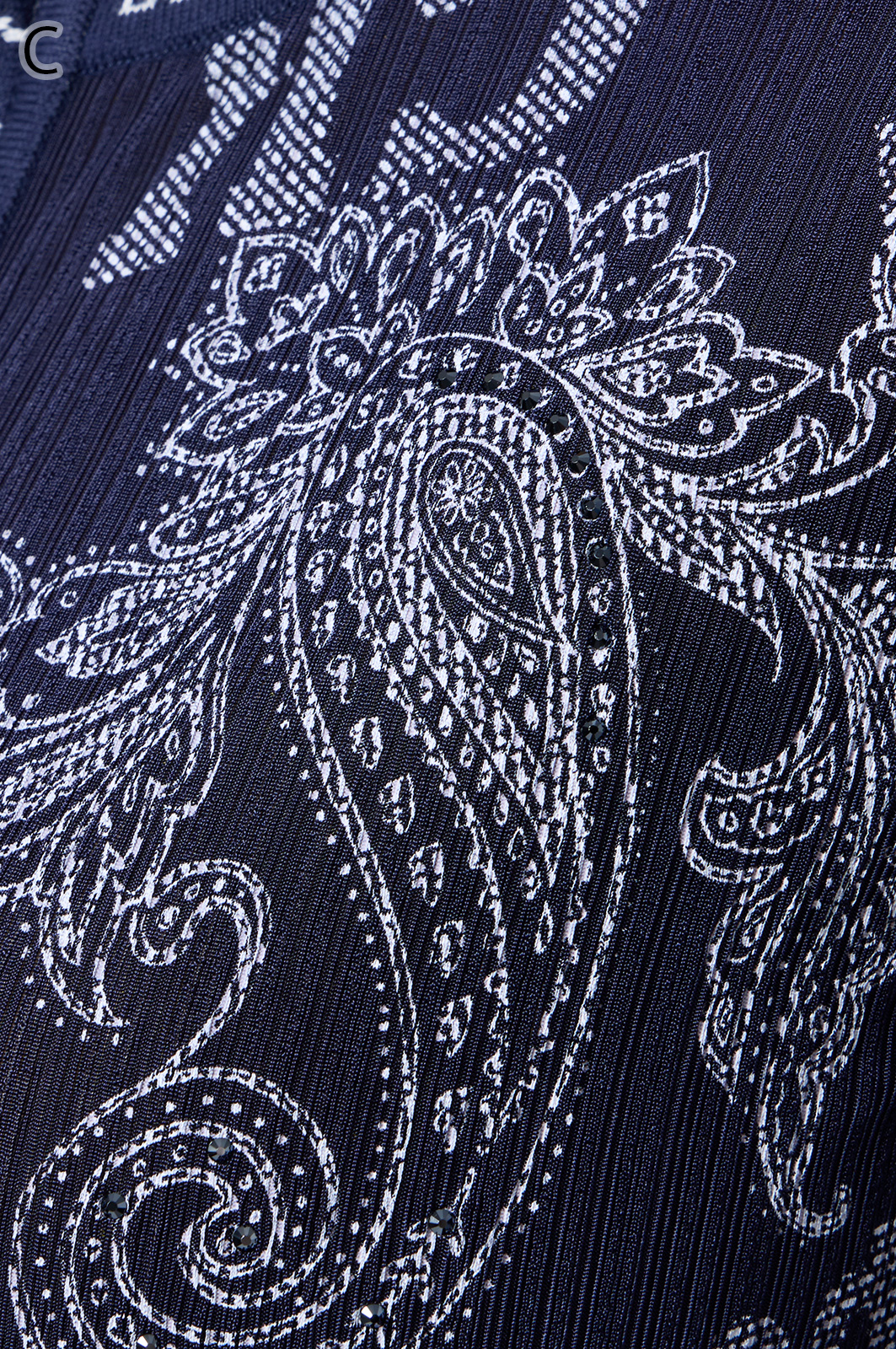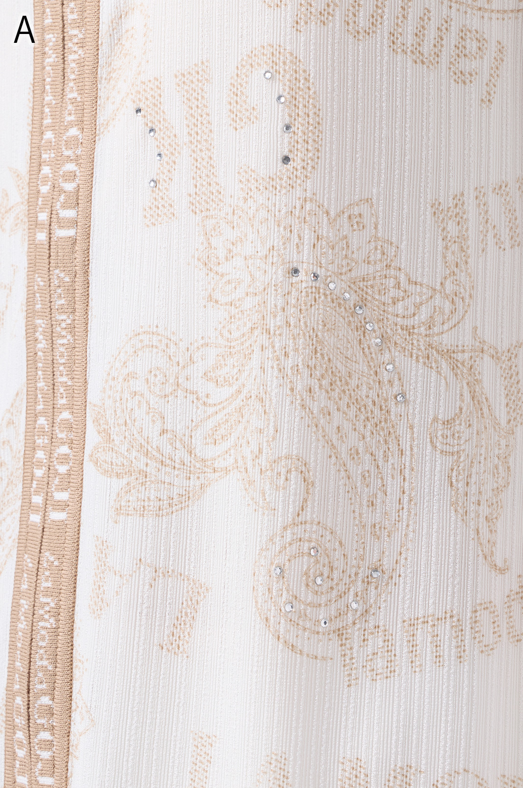 落ち感のあるモダーレ素材を使用し、オリジナルペーズリー&ロゴのプリントが魅力のブラウス。前ファスナー仕様で、衿ぐりや袖口、裾には高級感のあるロゴ入りリンキング始末を施しました。前を開けてカーディガン風にも楽しめる一着です。