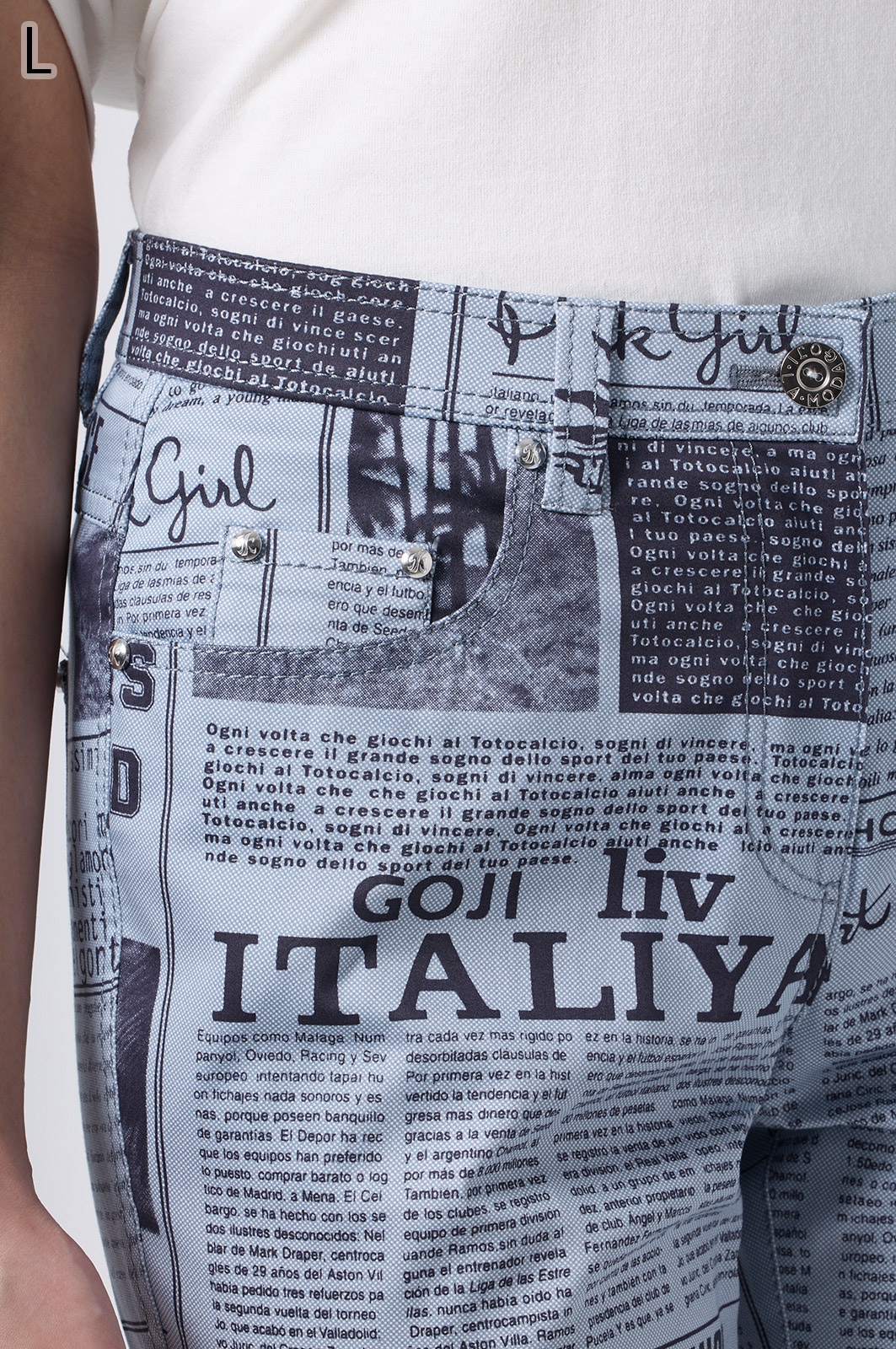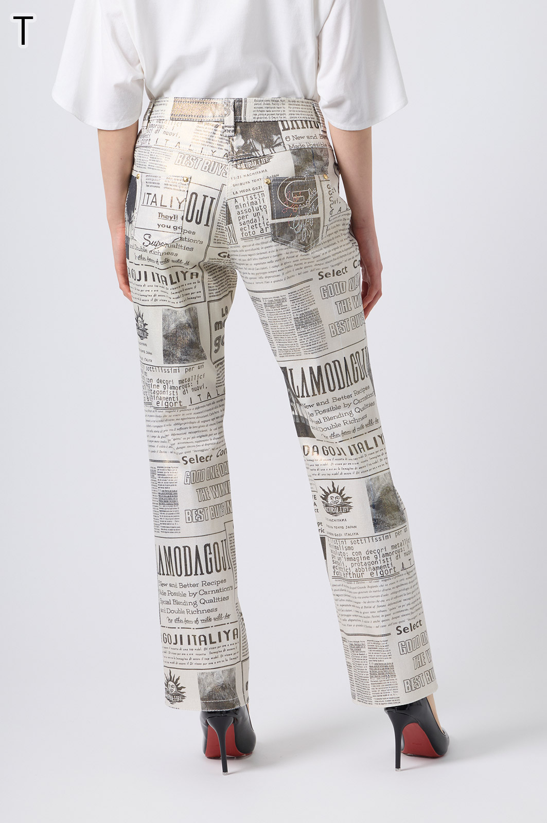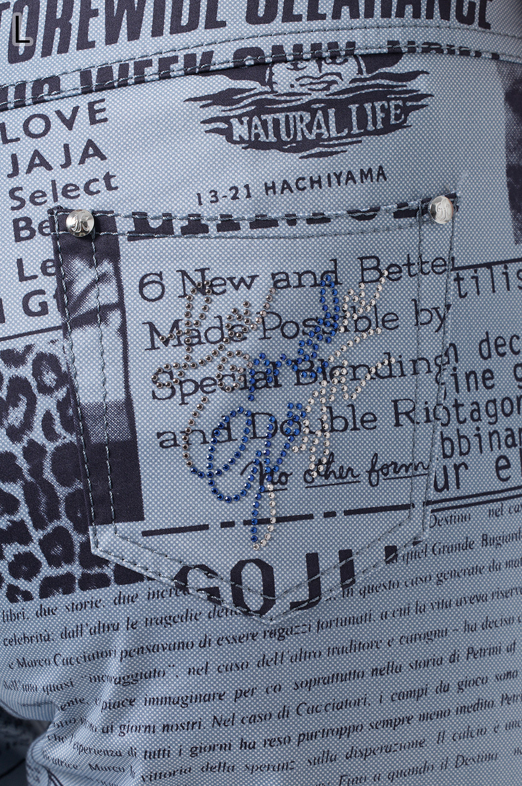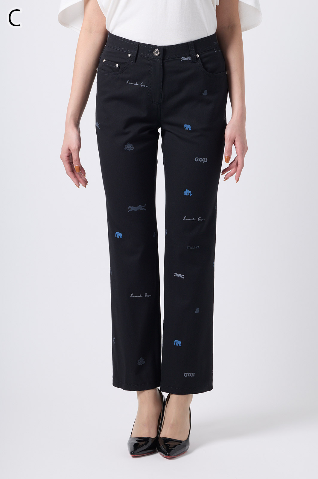 横ストレッチの効いた綿素材が心地よい、オリジナルロゴ入りのストレート5ポケットジーンズ。伊太利屋らしい洗練されたシルエットで、ウエストはインベル風ゴム仕様ではき心地抜群。カジュアルにも上品にも楽しめる一本です。