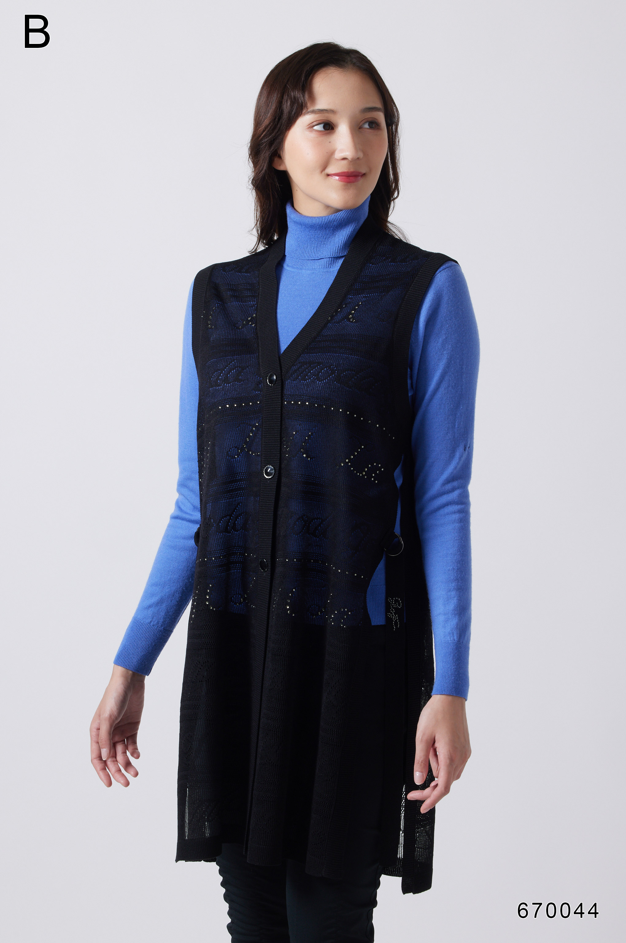オリジナルロゴをジャガード編みで表現した、軽やかで涼しい羽織り感覚のベスト。カジュアルにもフォーマルにも合わせやすく、快適な着心地を提供します。