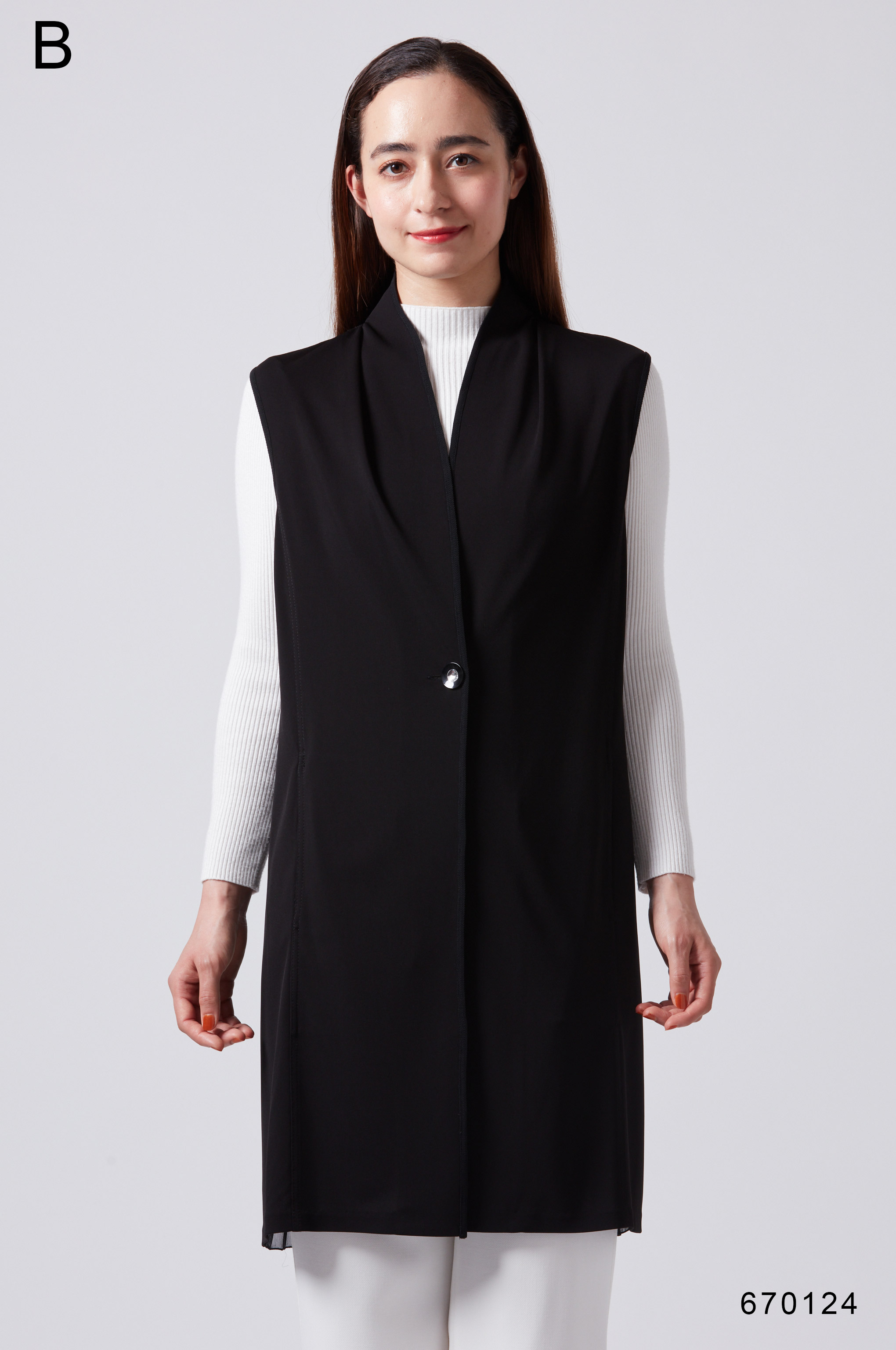 ソフトなニット素材に後ヨークにレースを配した、女性らしいシフォンのプリーツベスト。優雅な風合いとエレガントなデザインが特徴で、多彩なシーンで活躍します。日常使いから特別な場面まで、スタイルを華やかに演出します。