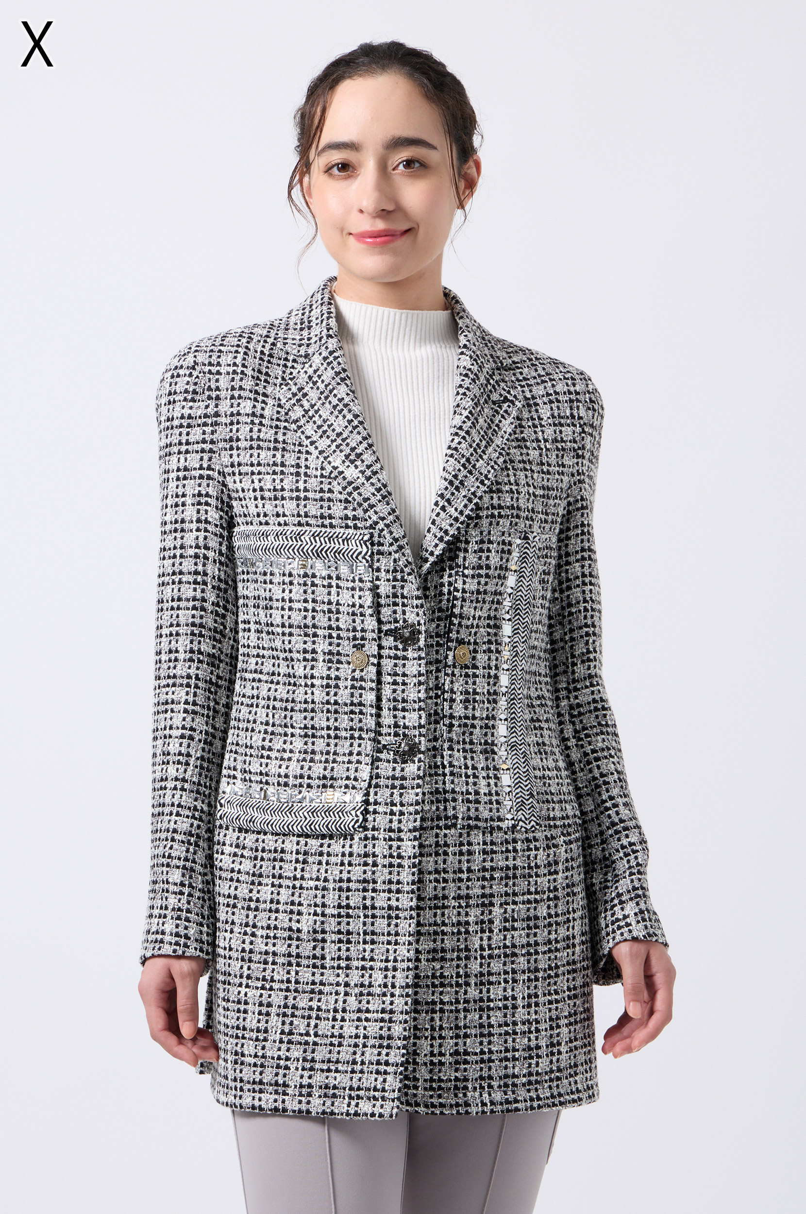 ツィードとメタリック加工が特徴のロングジャケットは、スポーティーさとエレガントさを兼ね備えた一着。洗練されたデザインで、どんなスタイルにもマッチし、いつまでもおしゃれに着こなせます。