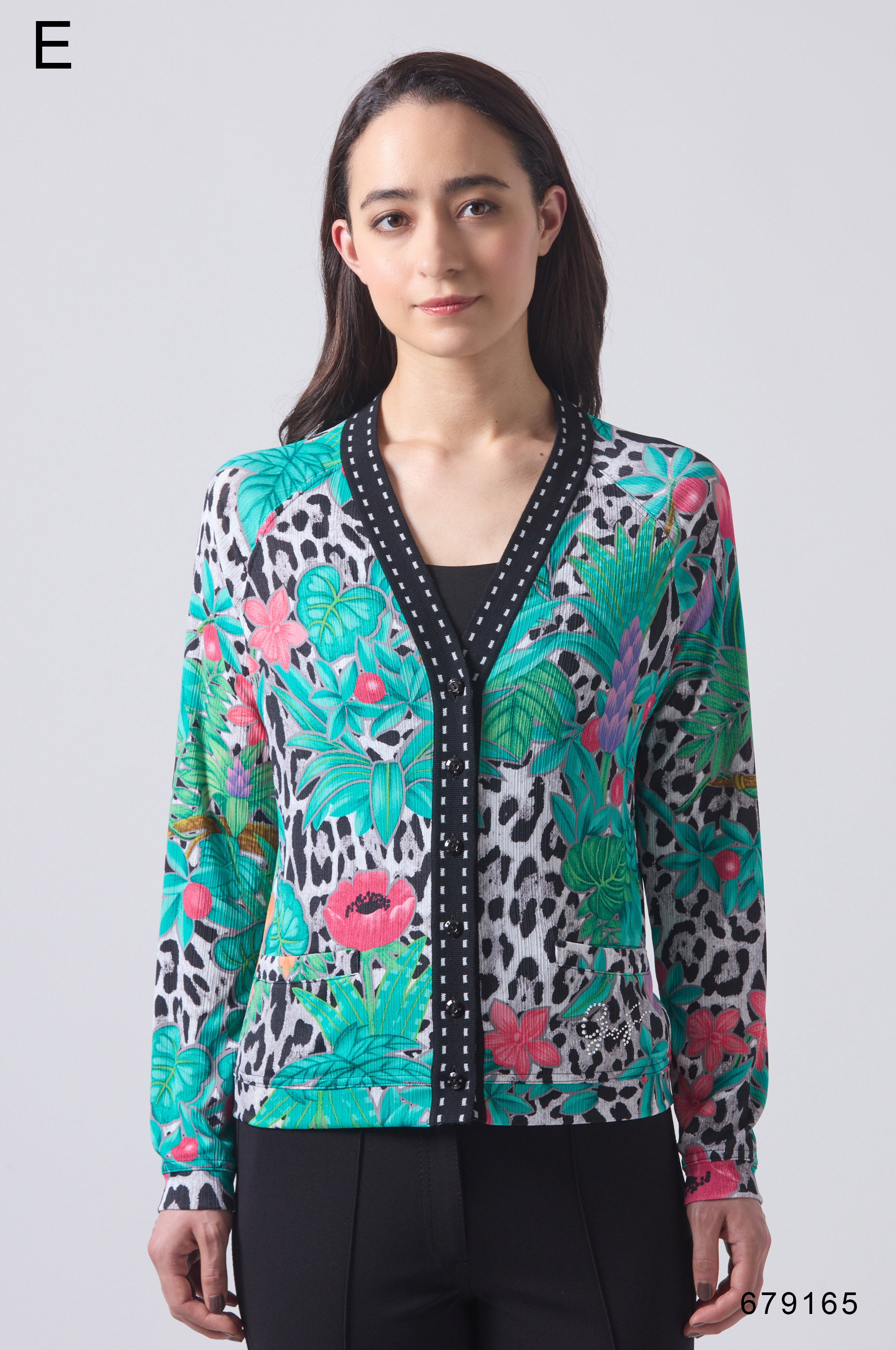 ヒョウ柄とお花の伊太利屋オリジナルデザイン。落ち感があり美しいシルエットで、前開きなので羽織りとしても活躍します。さまざまなシーンでお楽しみいただける一着です。