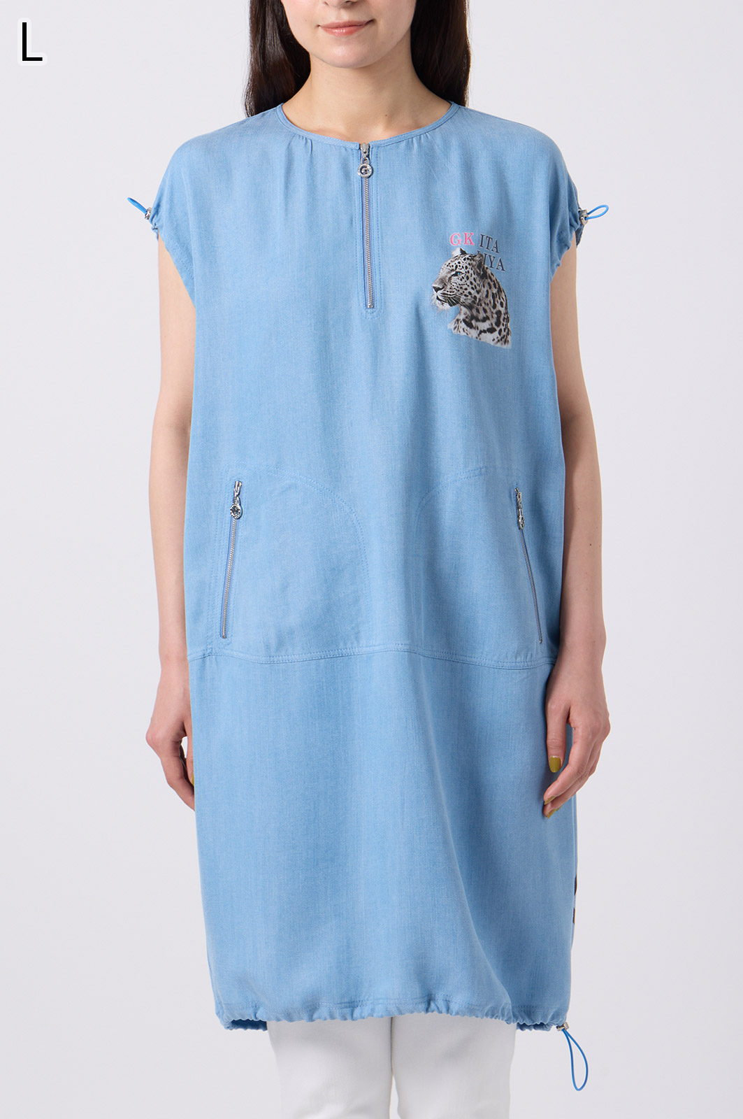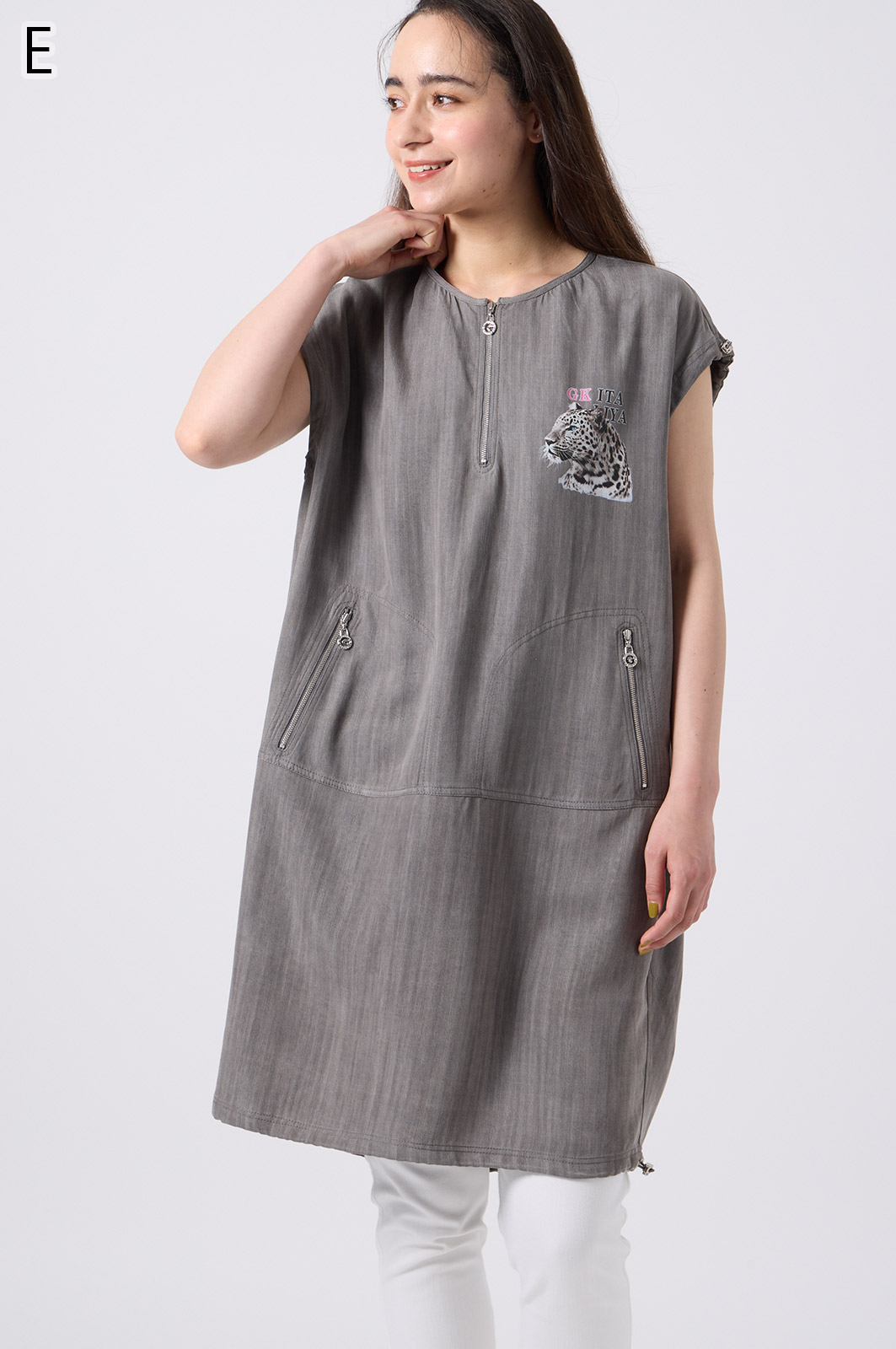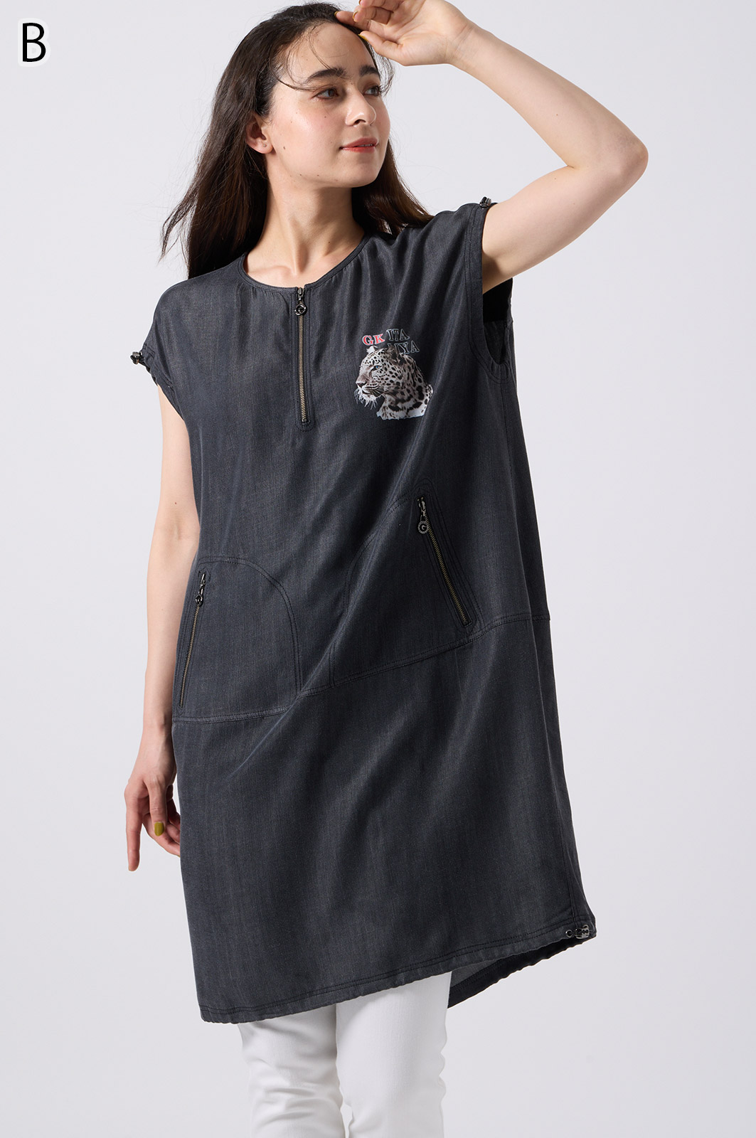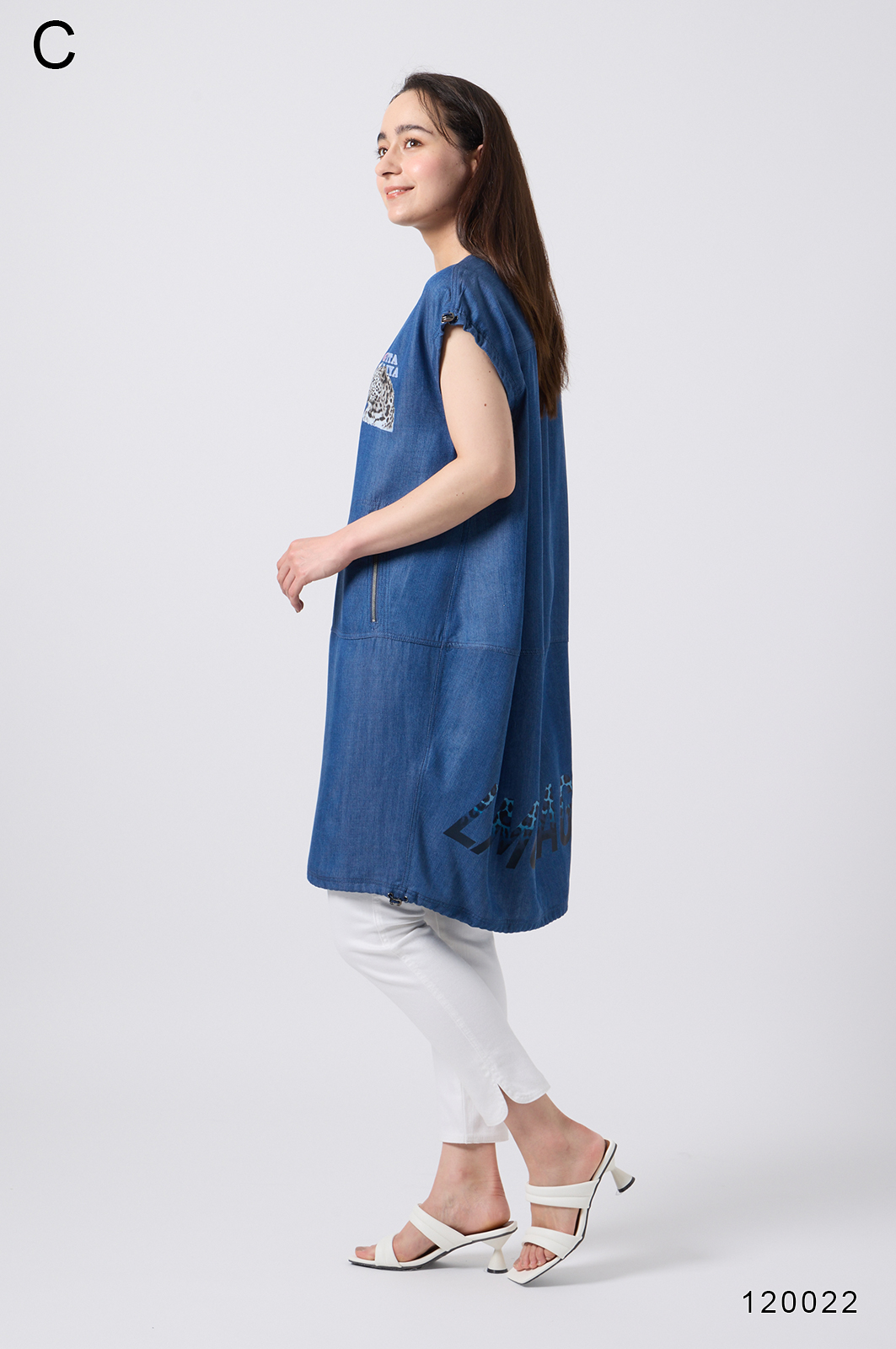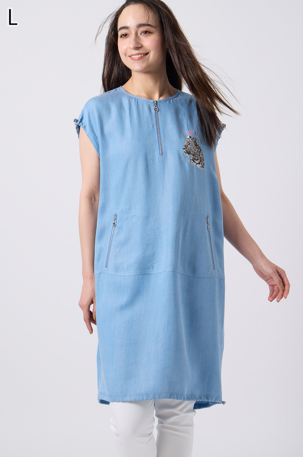 やわらかな風合いのデニム素材を使い、体を包み込むような丸みのあるシルエットに仕立てたワンピース。胸元のオリジナルロゴがアクセントになって、大人のカジュアルスタイルに遊び心をプラスします。