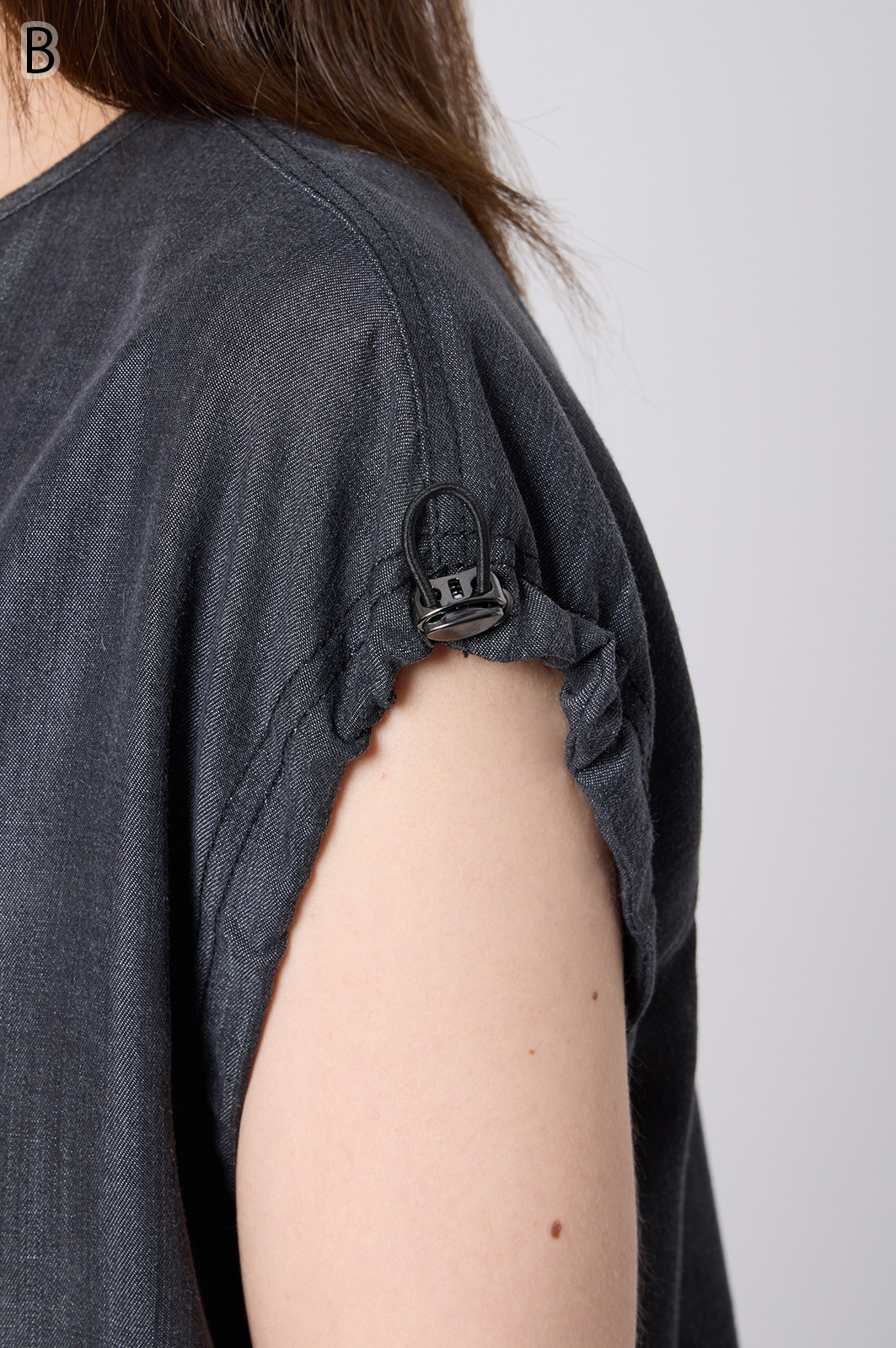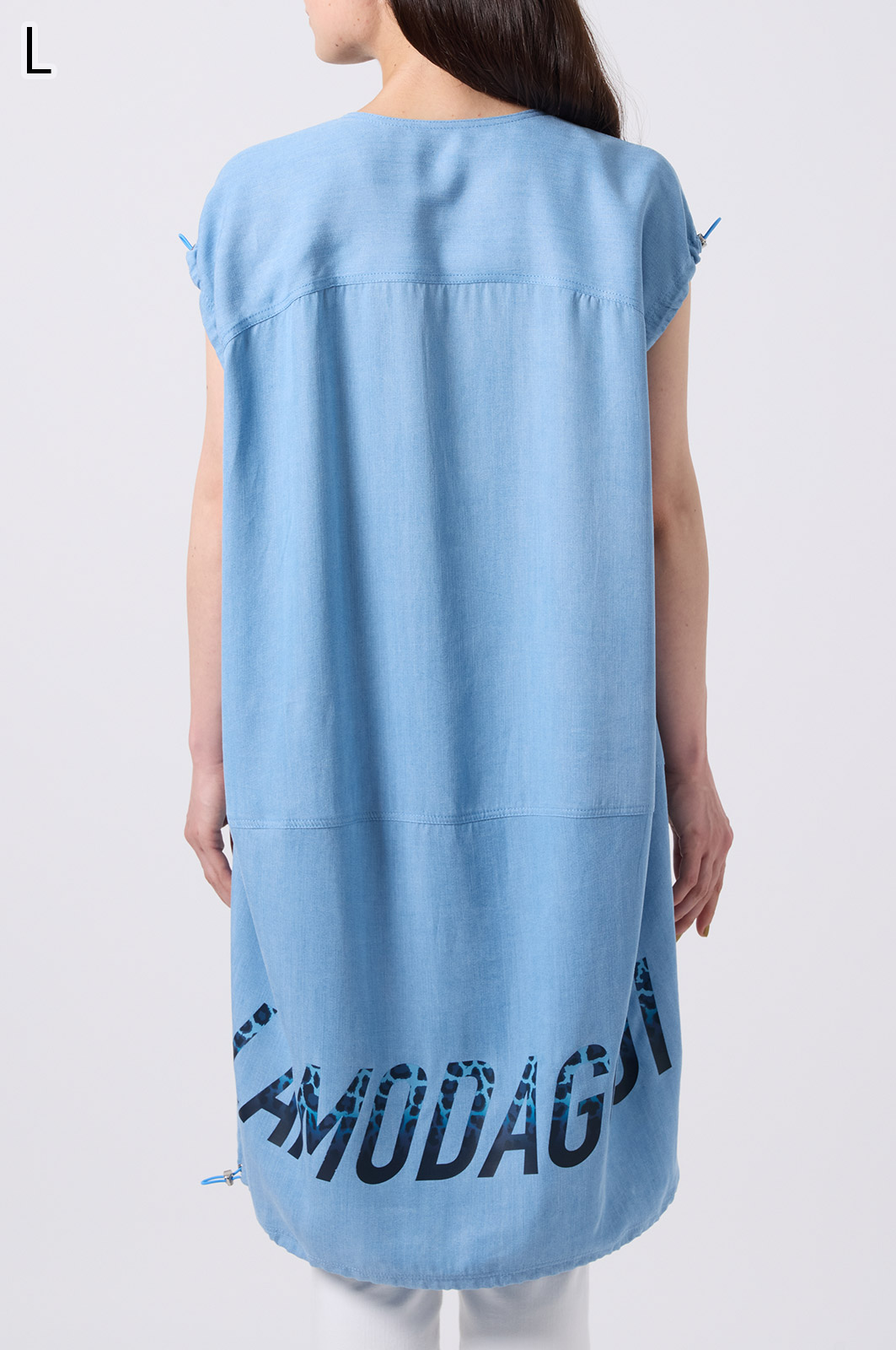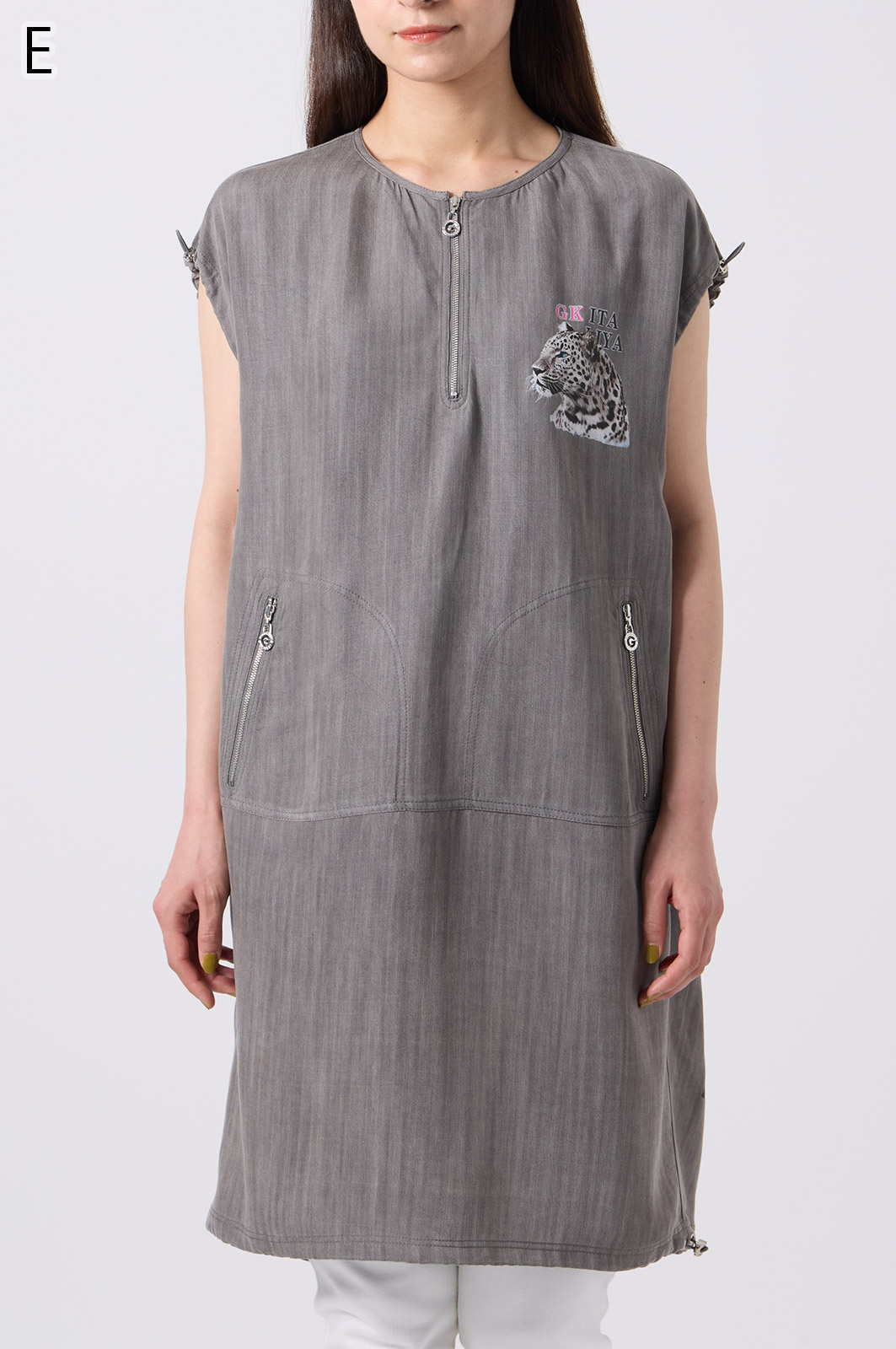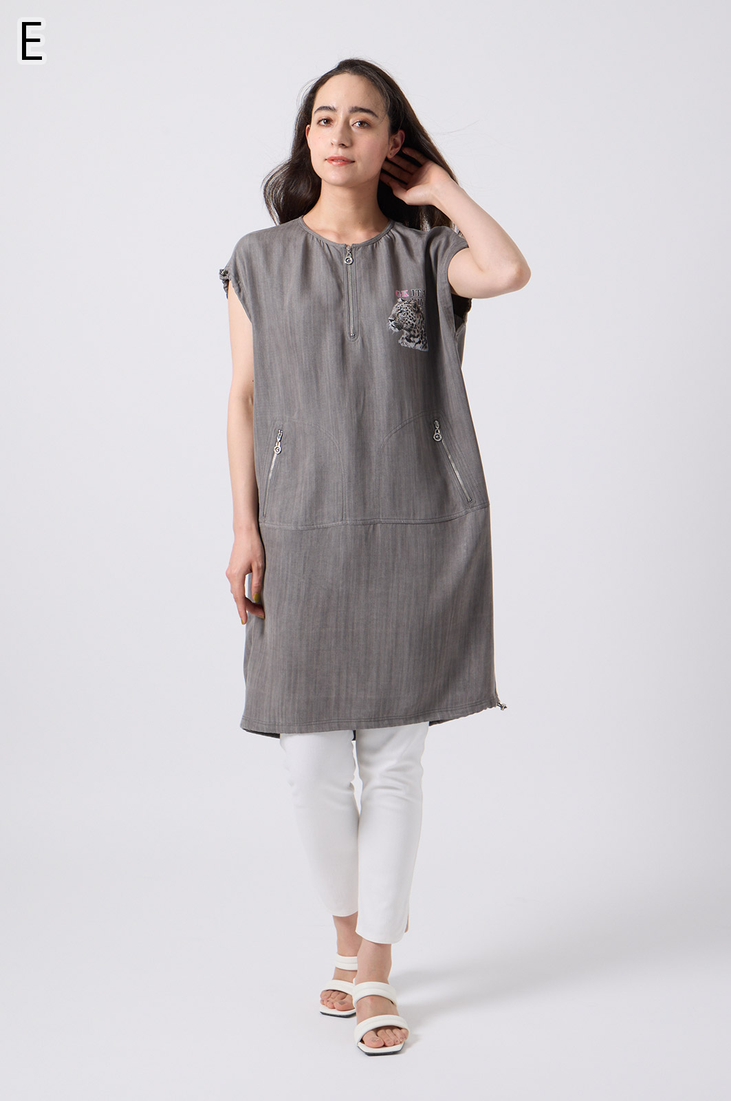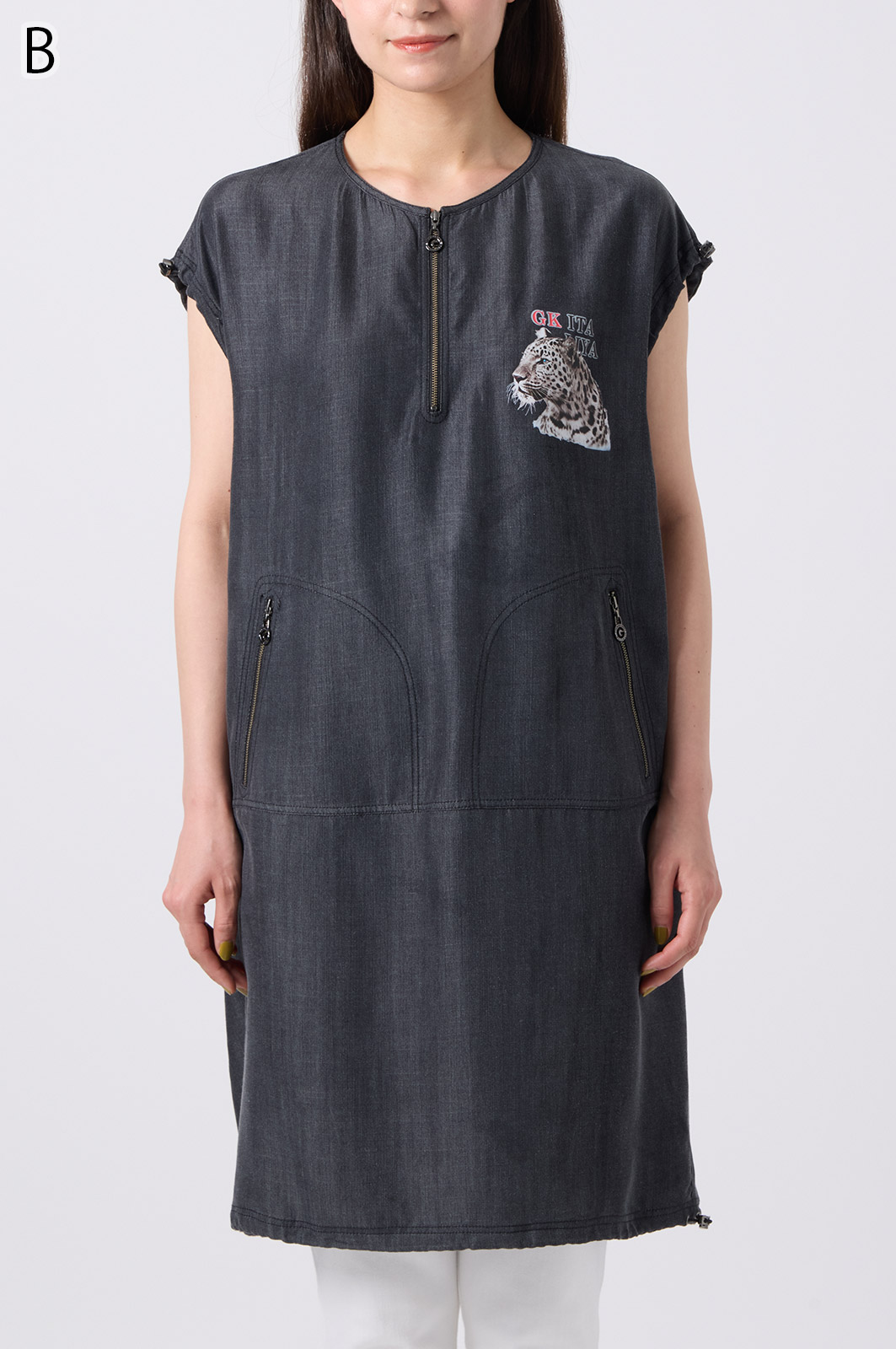 やわらかな風合いのデニム素材を使い、体を包み込むような丸みのあるシルエットに仕立てたワンピース。胸元のオリジナルロゴがアクセントになって、大人のカジュアルスタイルに遊び心をプラスします。