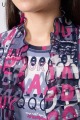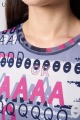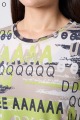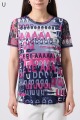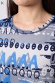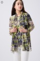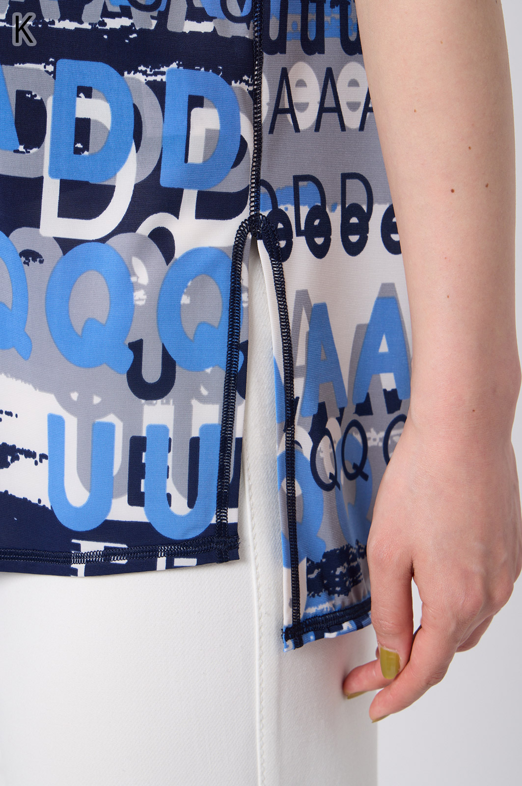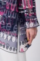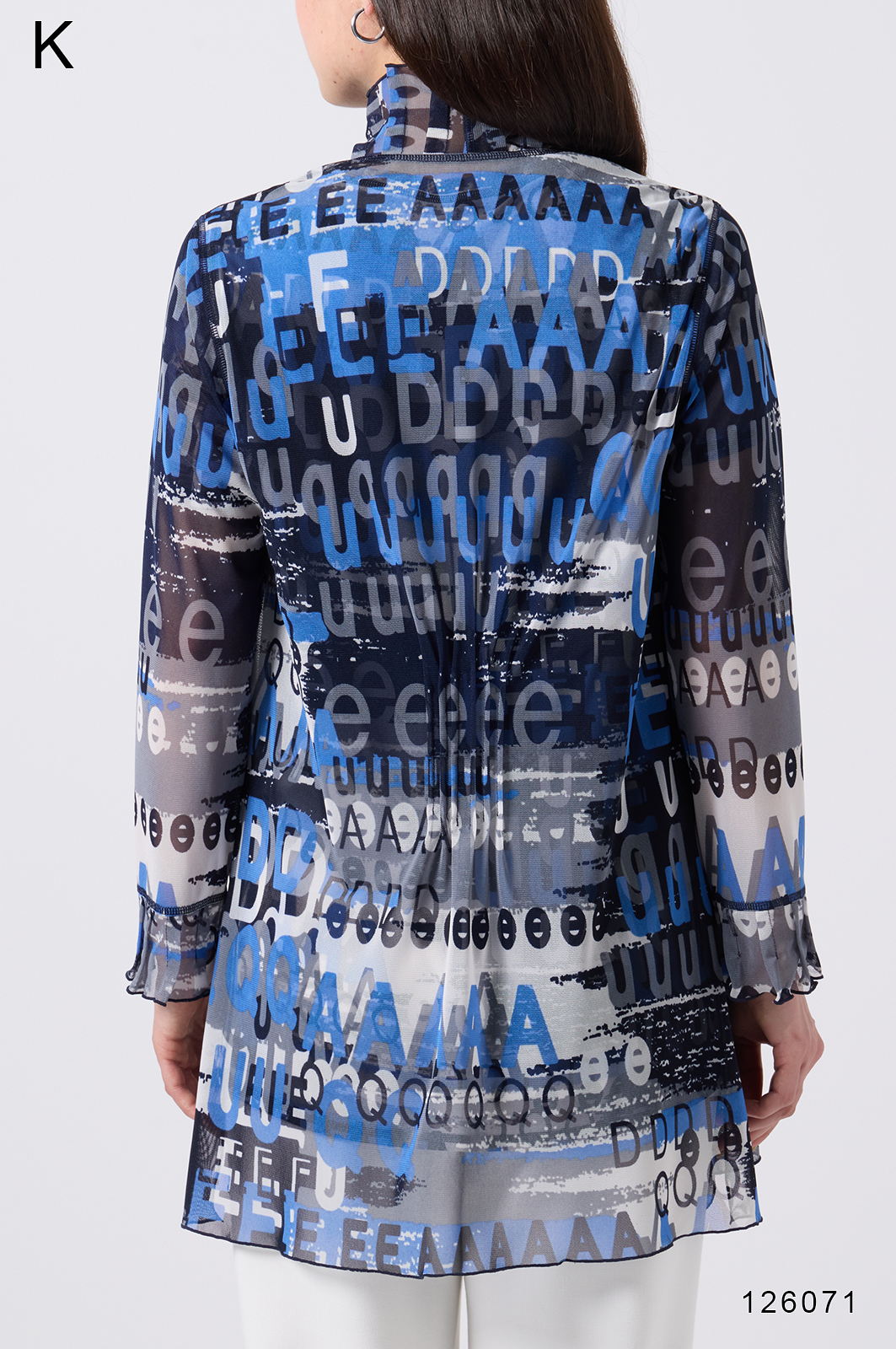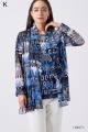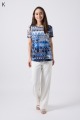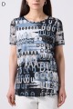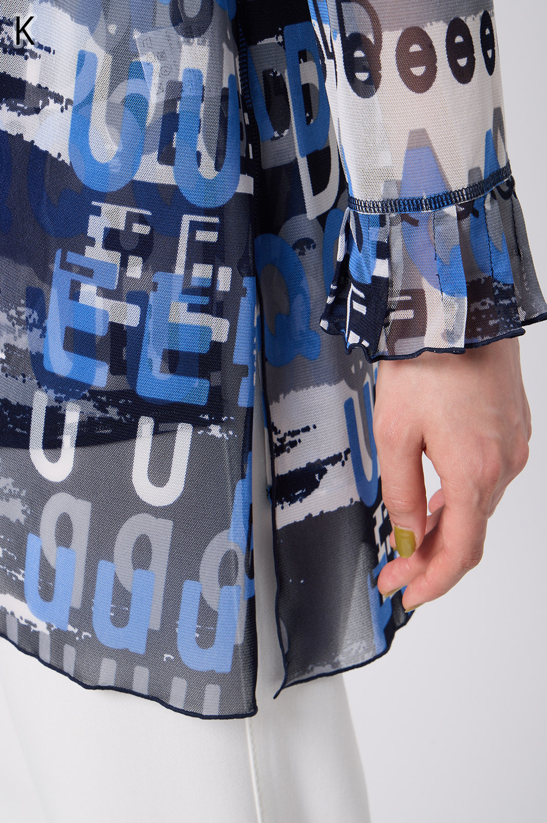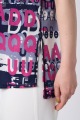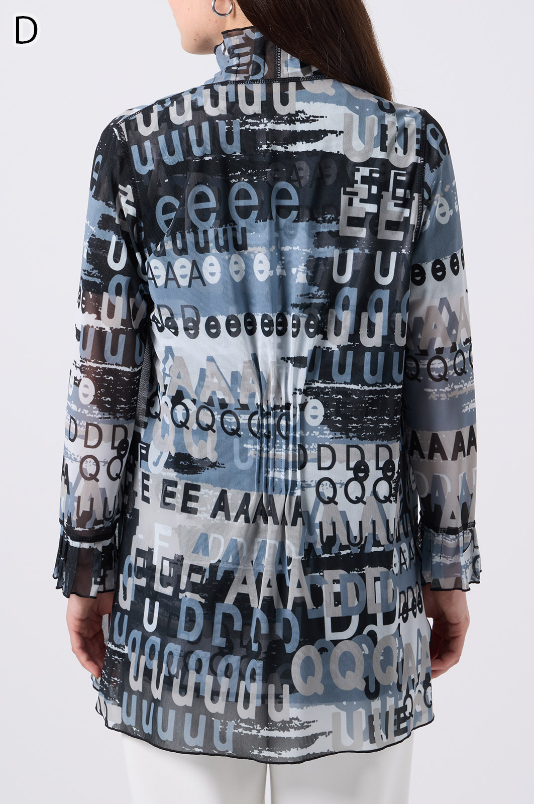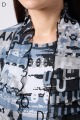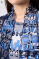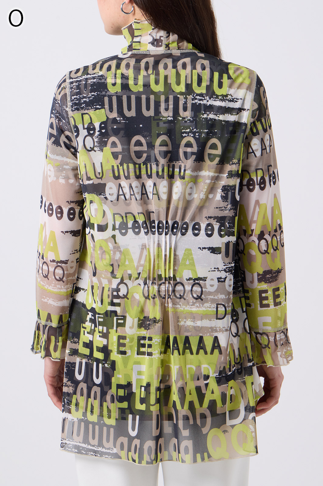 ロゴ入りの幾何学模様が映える軽やかな素材とニットを組み合わせた、Tシャツと羽織りブラウスのセット。重ねるだけで華やかな印象を演出できる着まわし便利なアイテムです。