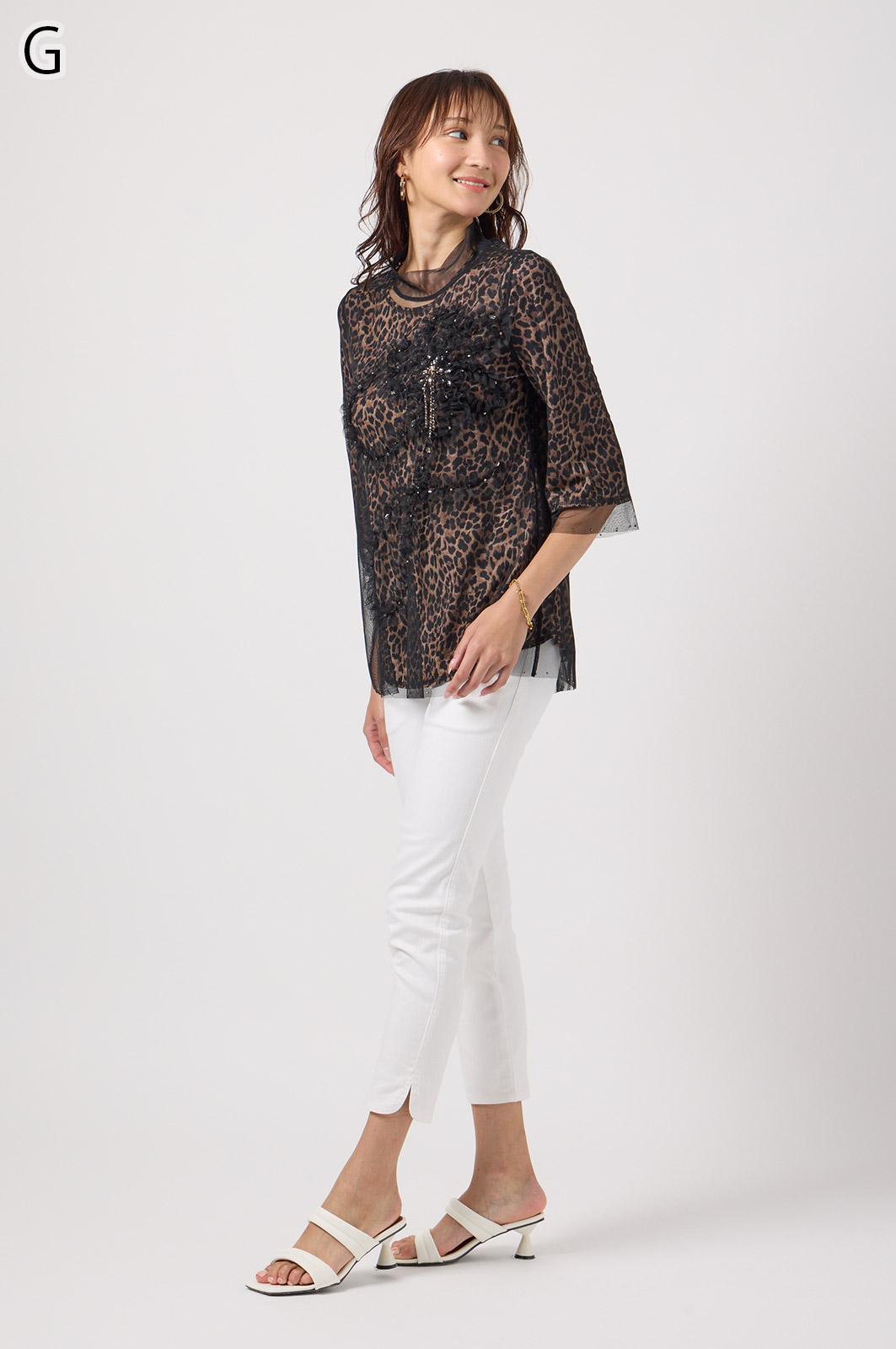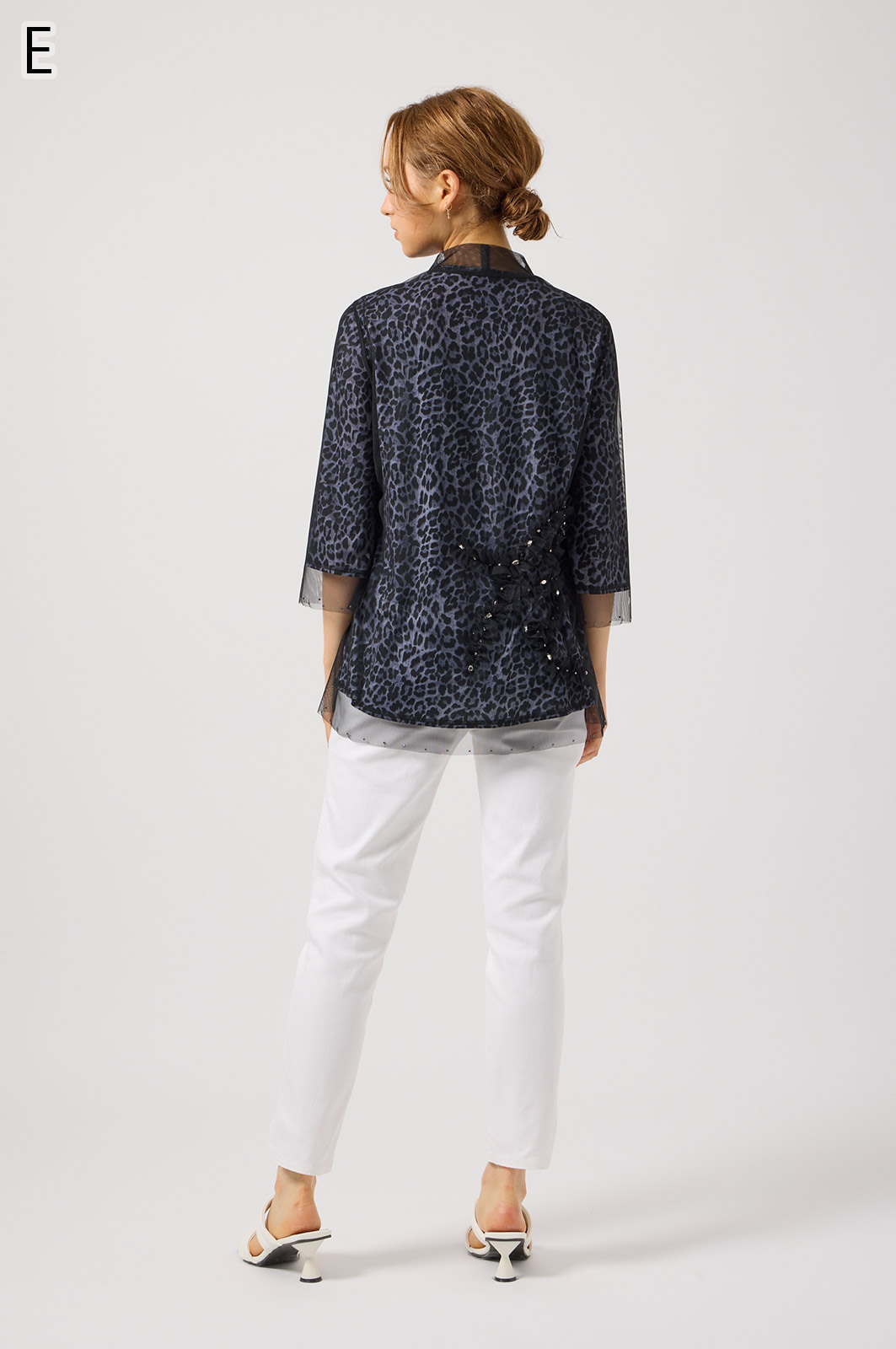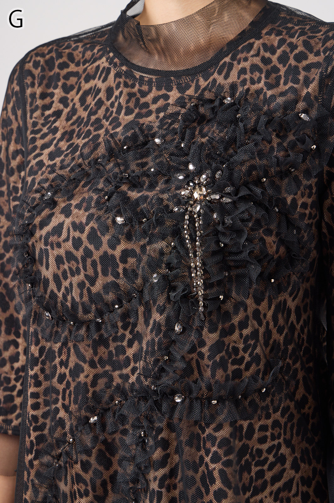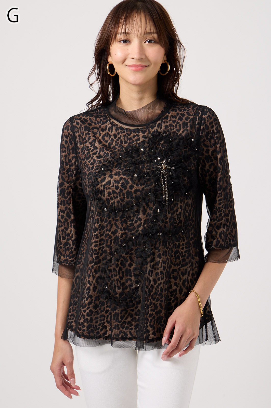 透け感のある生地に動物柄を重ねた一枚。着方次第で雰囲気チェンジも自由自在!いつもの無地Tに重ねるだけで、おしゃれ度アップ間違いなし♪