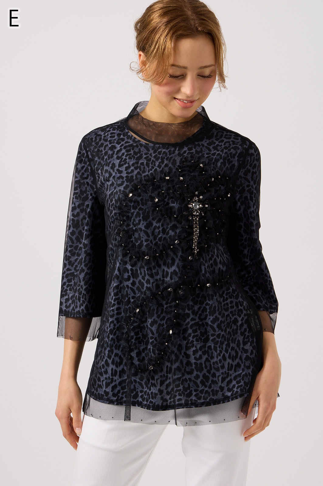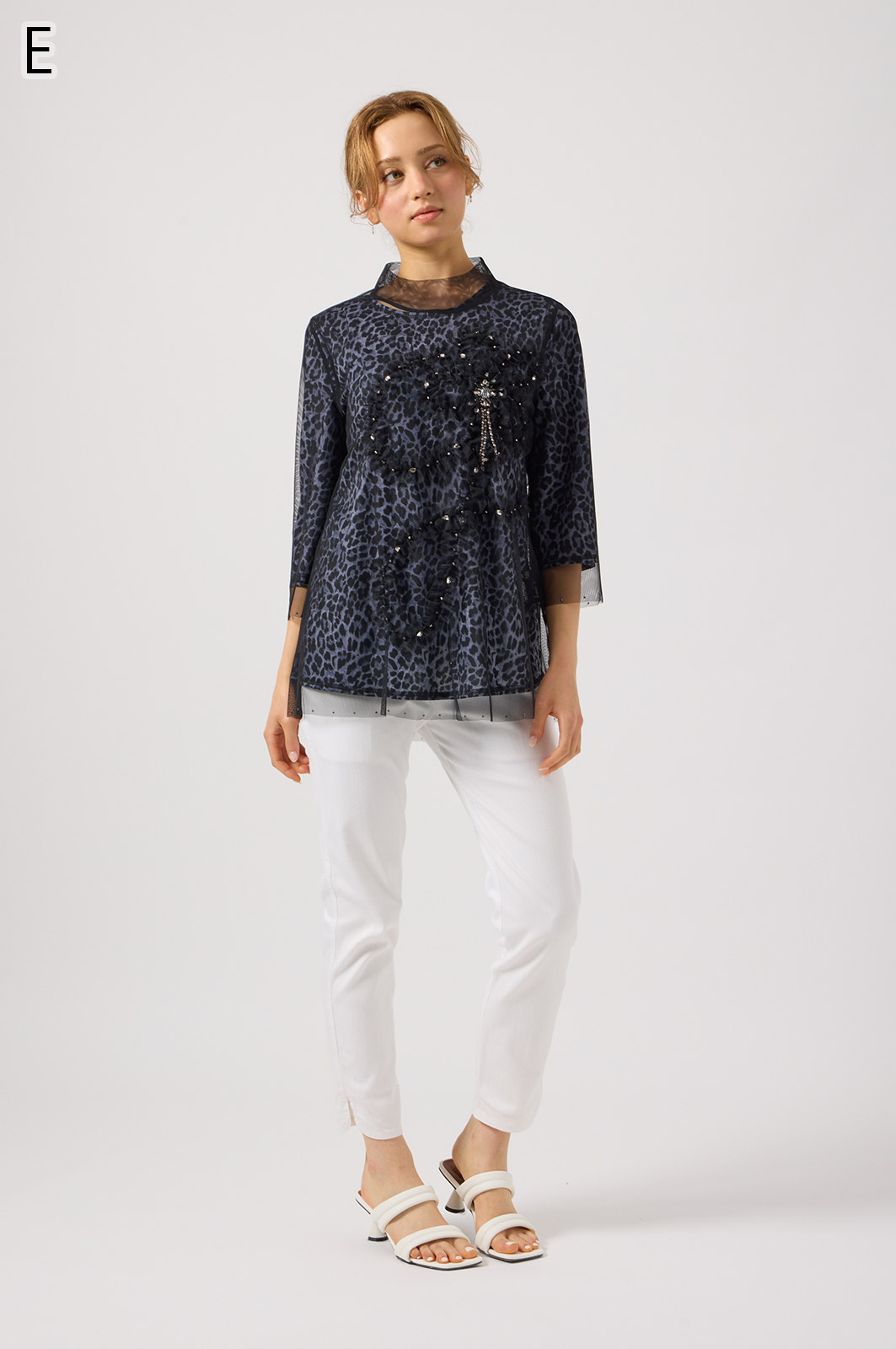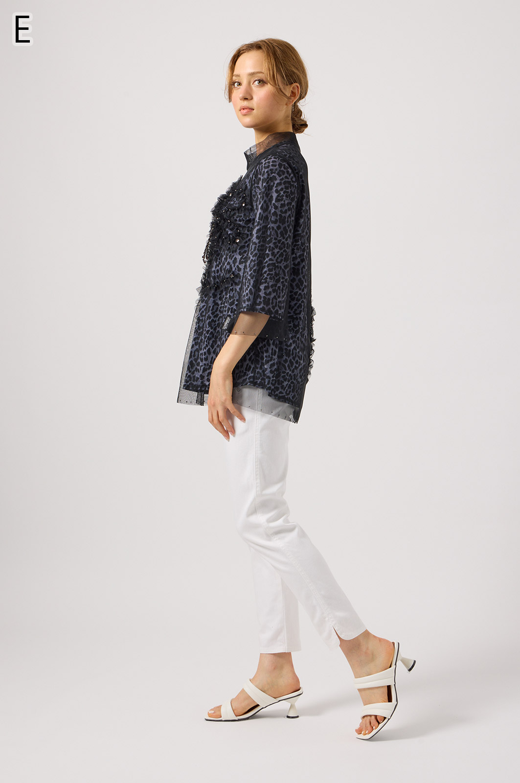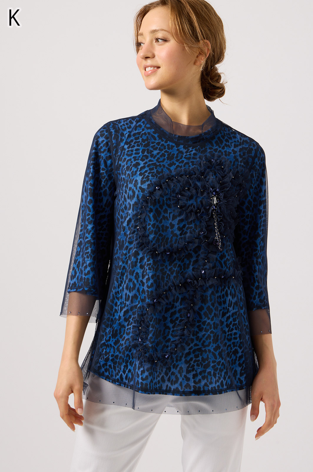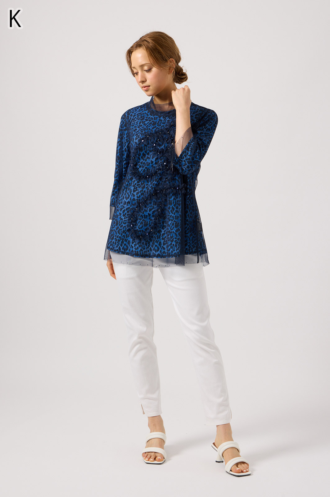 透け感のある生地に動物柄を重ねた一枚。着方次第で雰囲気チェンジも自由自在!いつもの無地Tに重ねるだけで、おしゃれ度アップ間違いなし♪