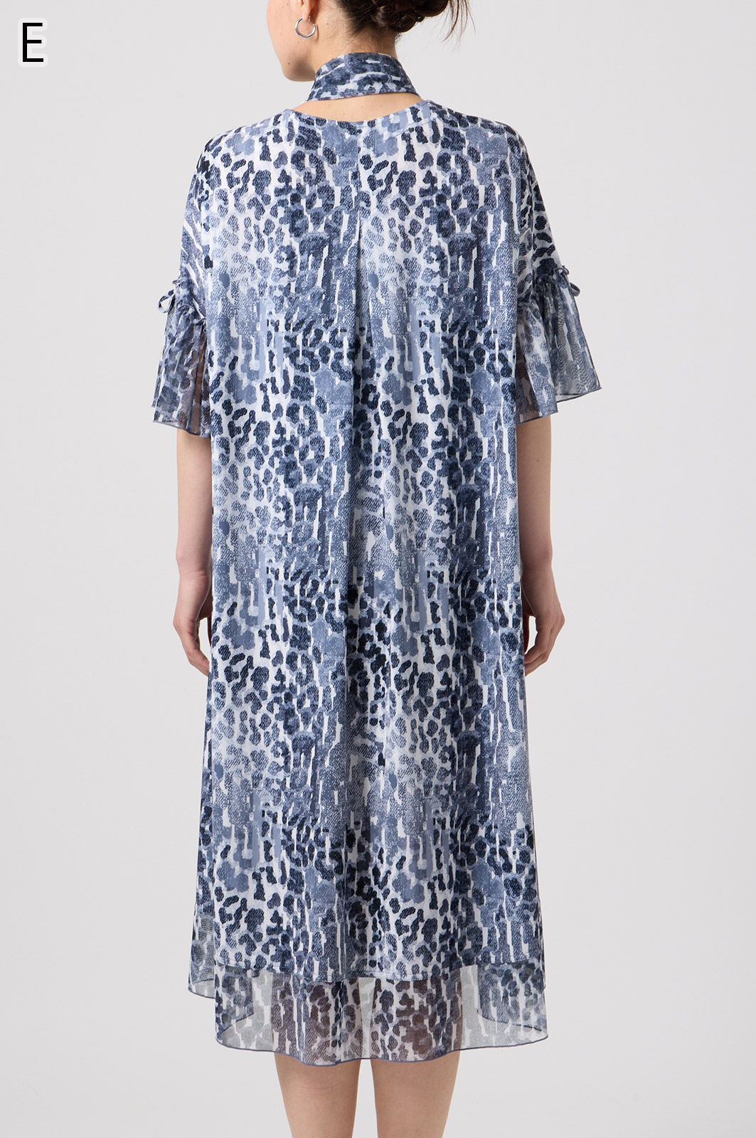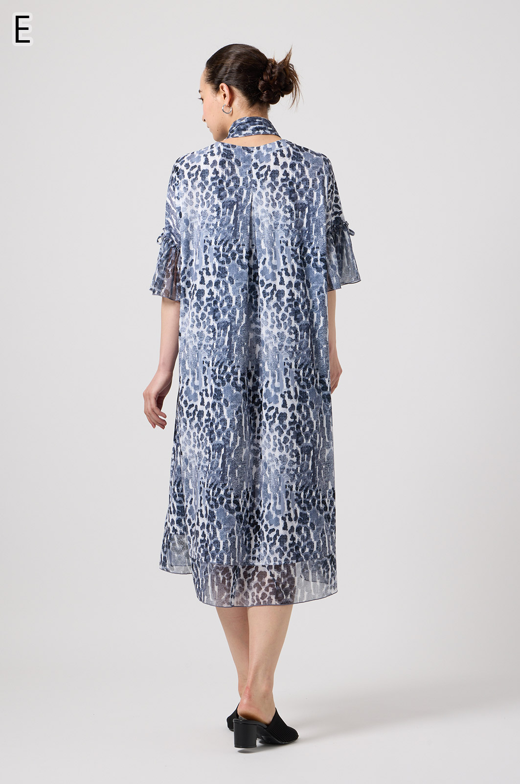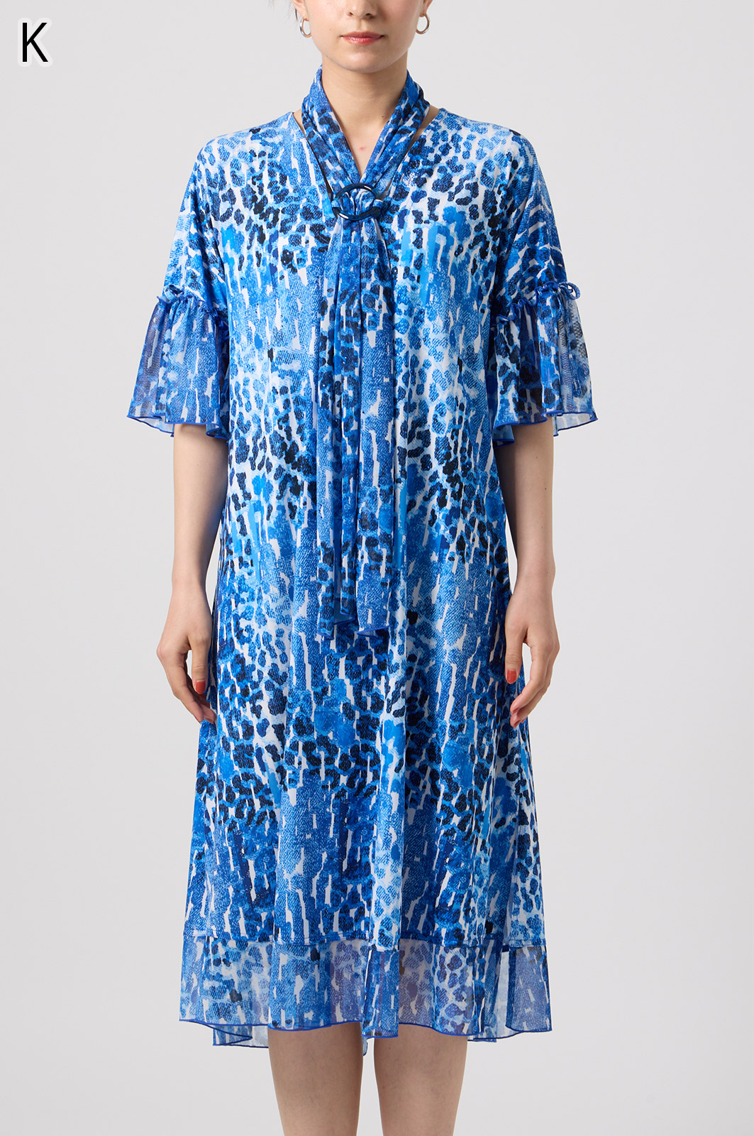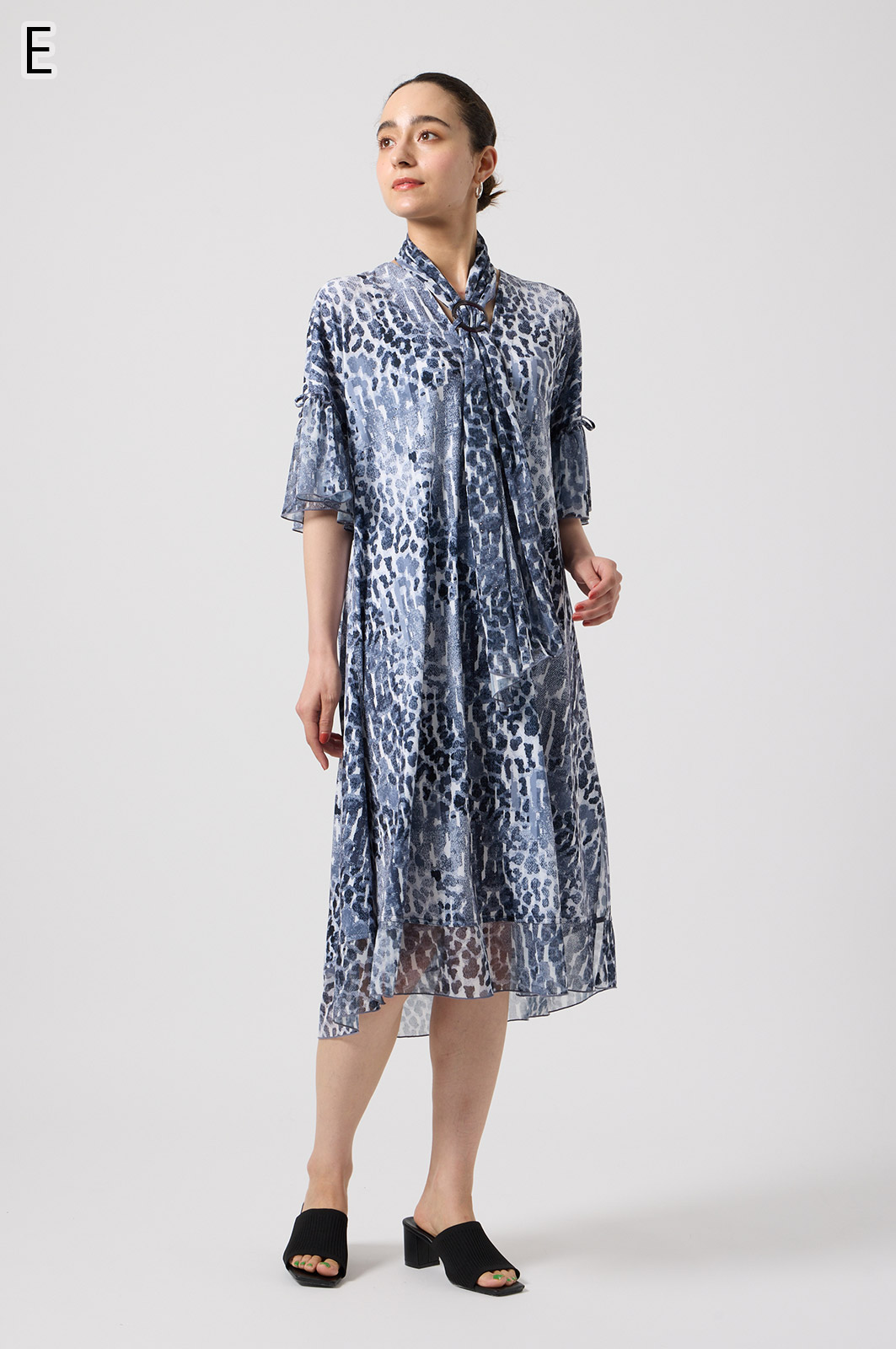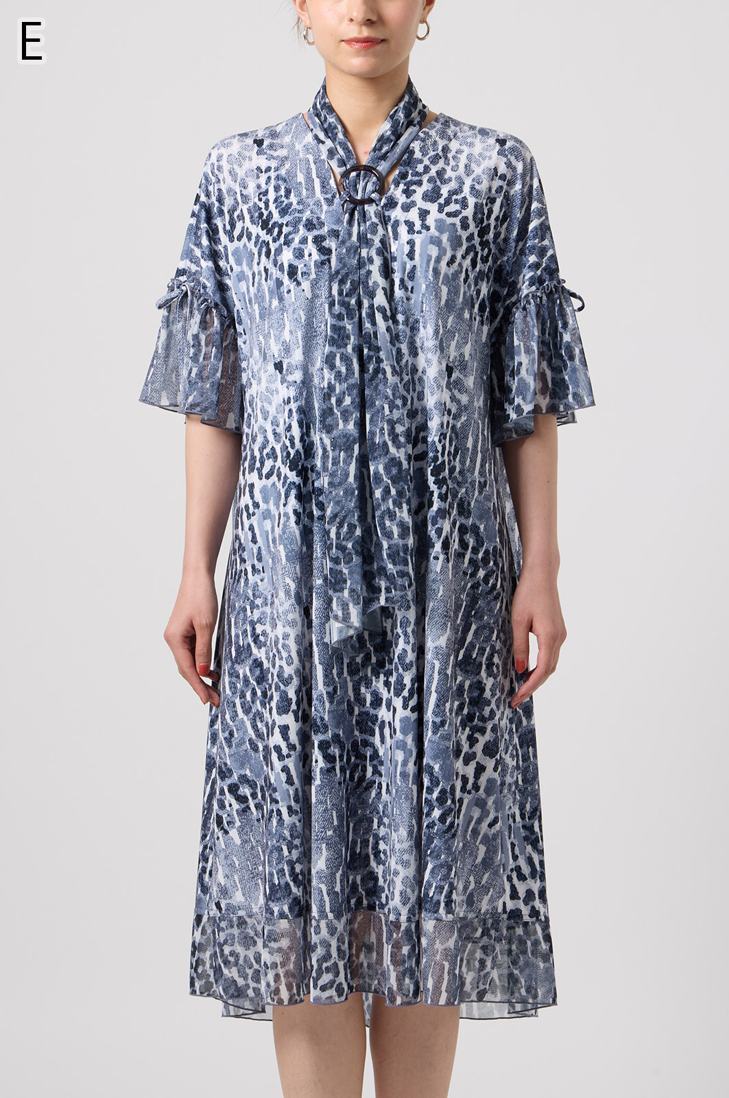 やわらかなグラデーション模様のニットとメッシュのストールがセットになった、女性らしいワンピース。シワになりにくく旅行にも便利です。