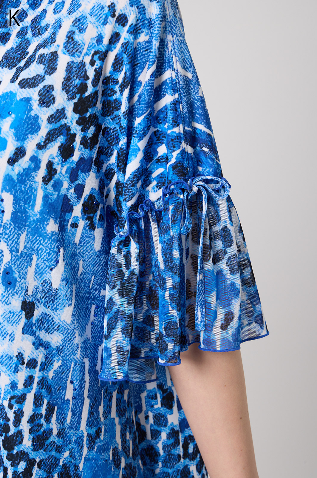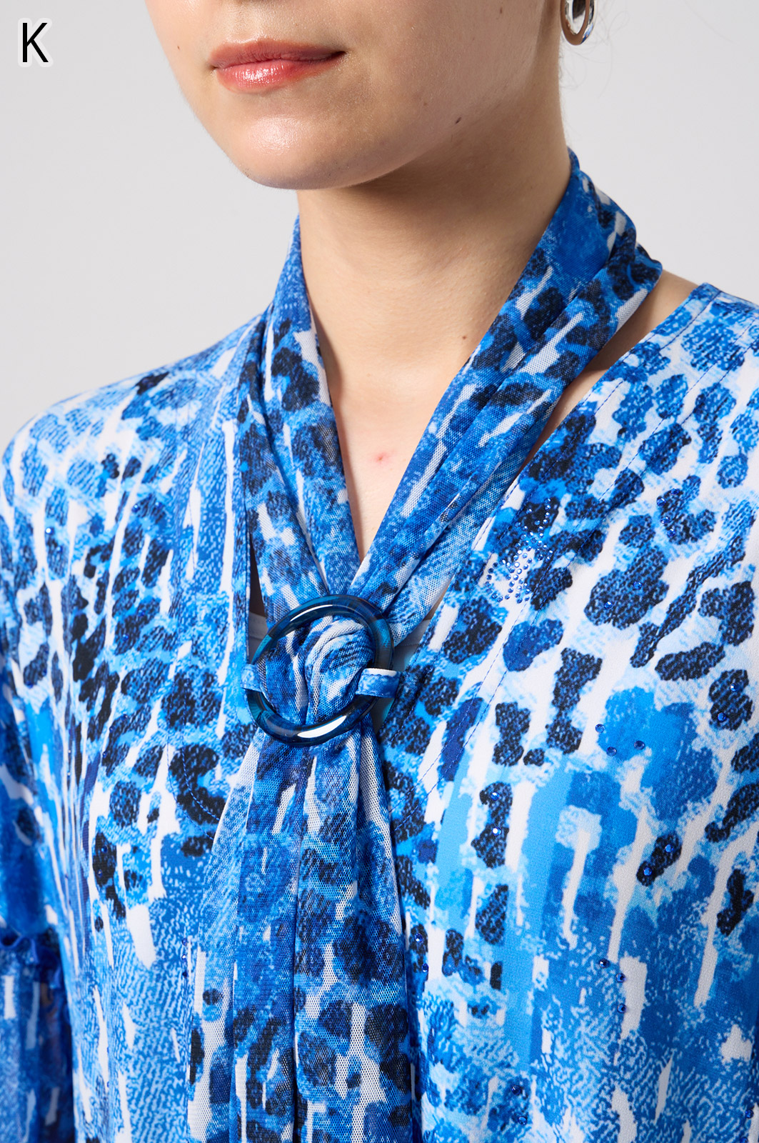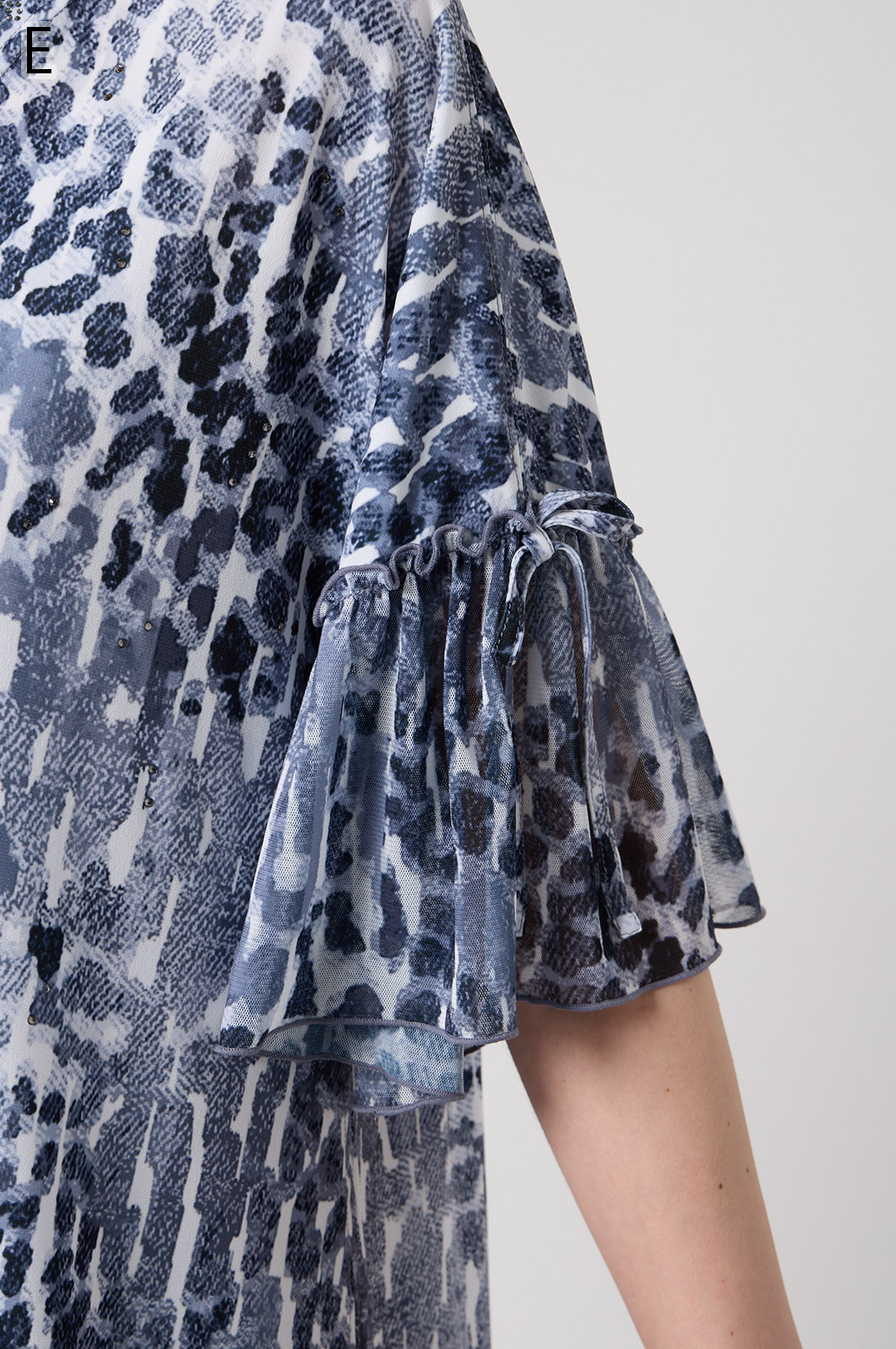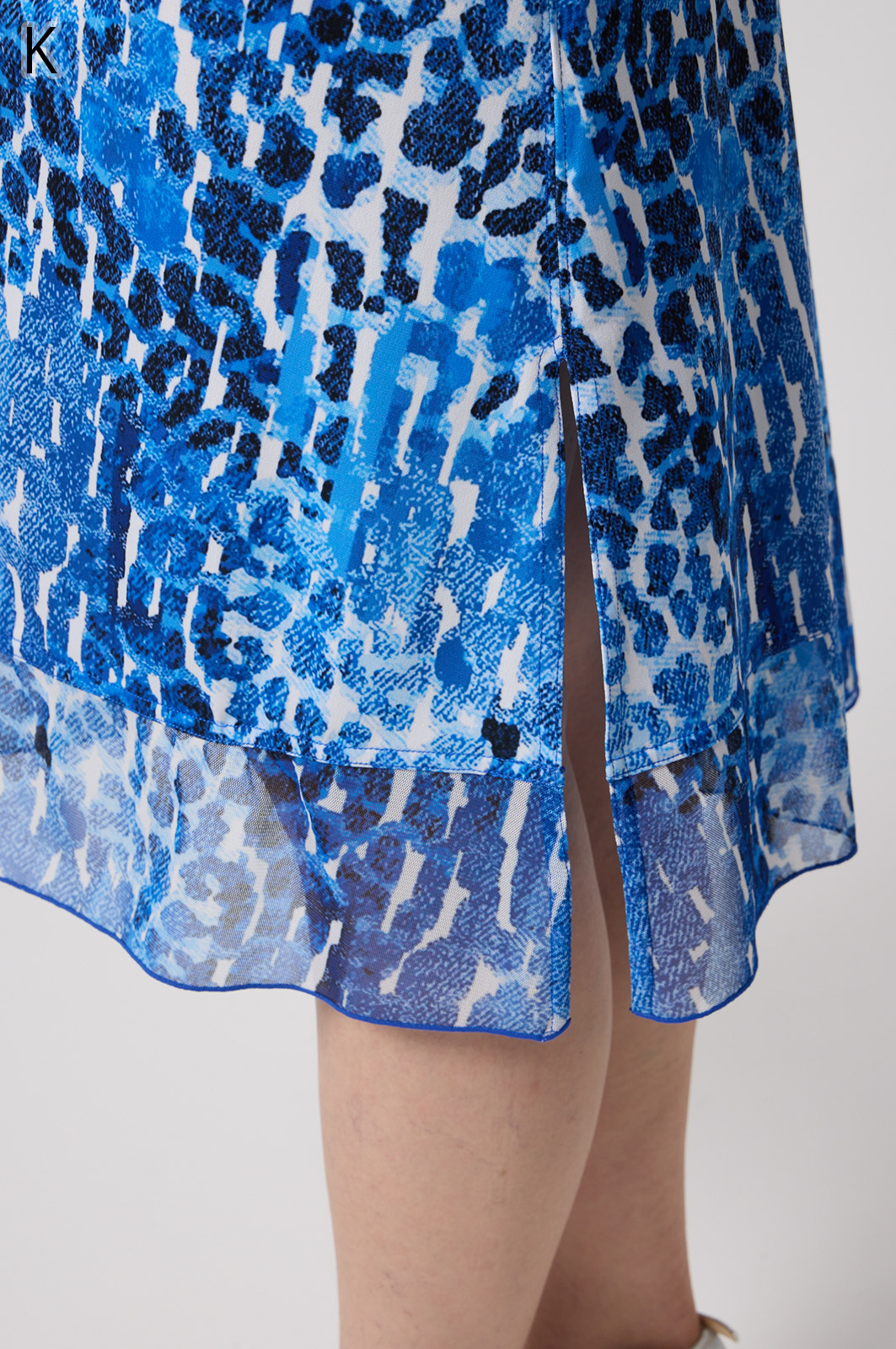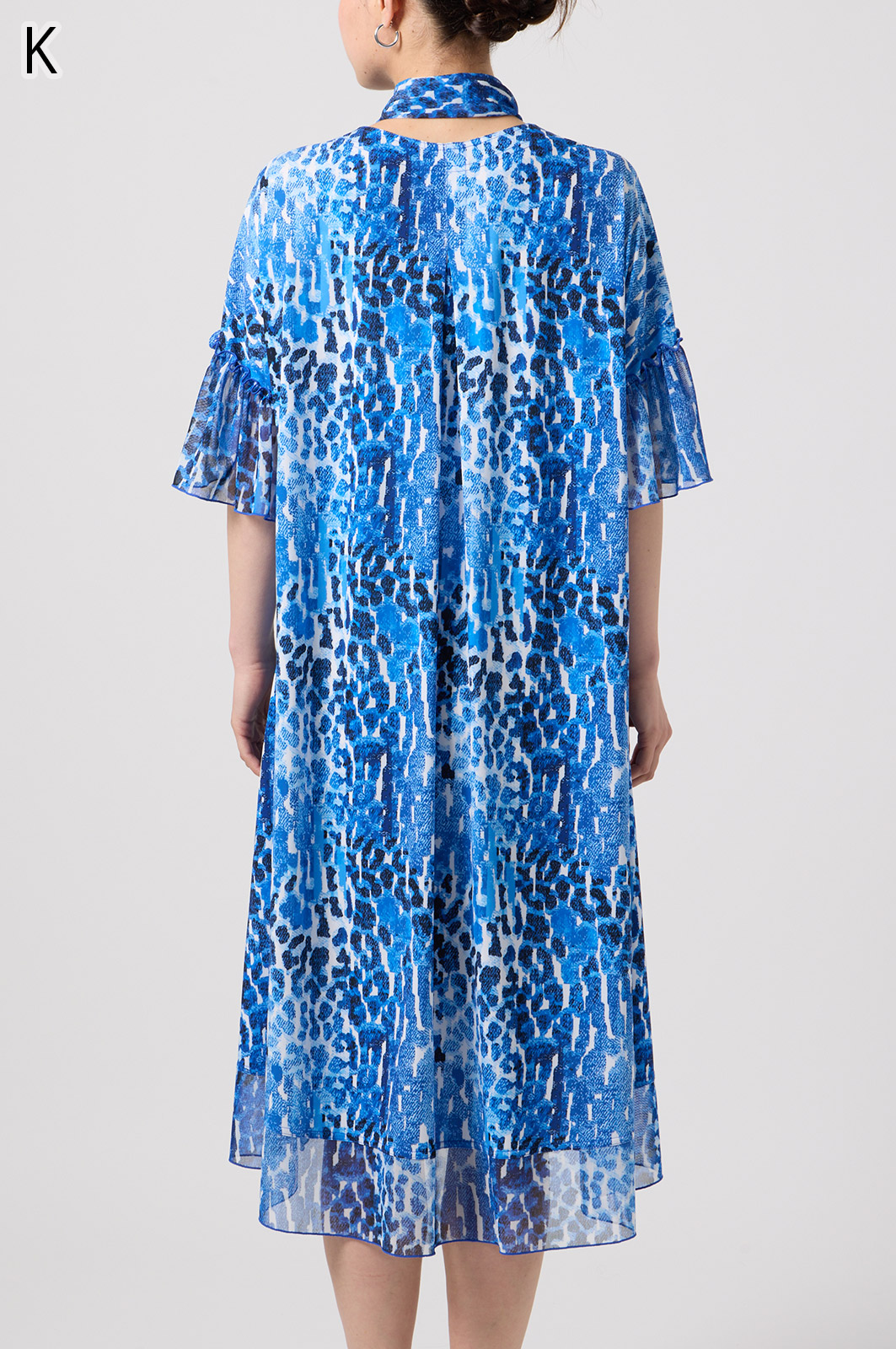 やわらかなグラデーション模様のニットとメッシュのストールがセットになった、女性らしいワンピース。シワになりにくく旅行にも便利です。
