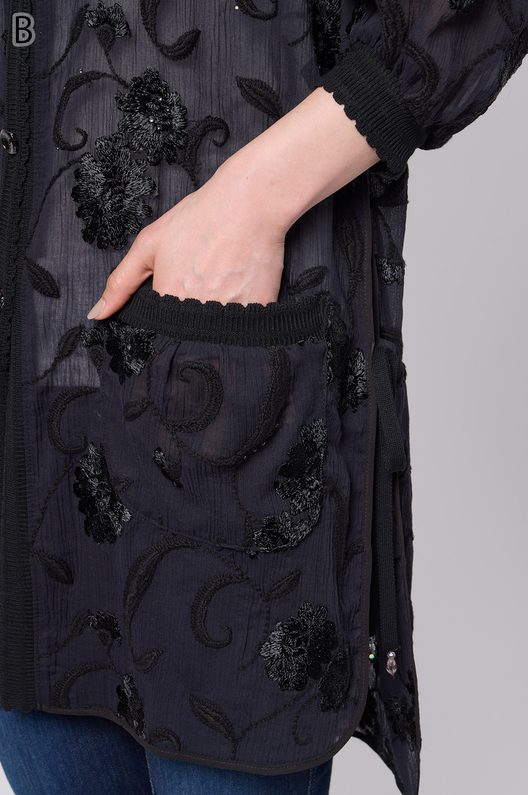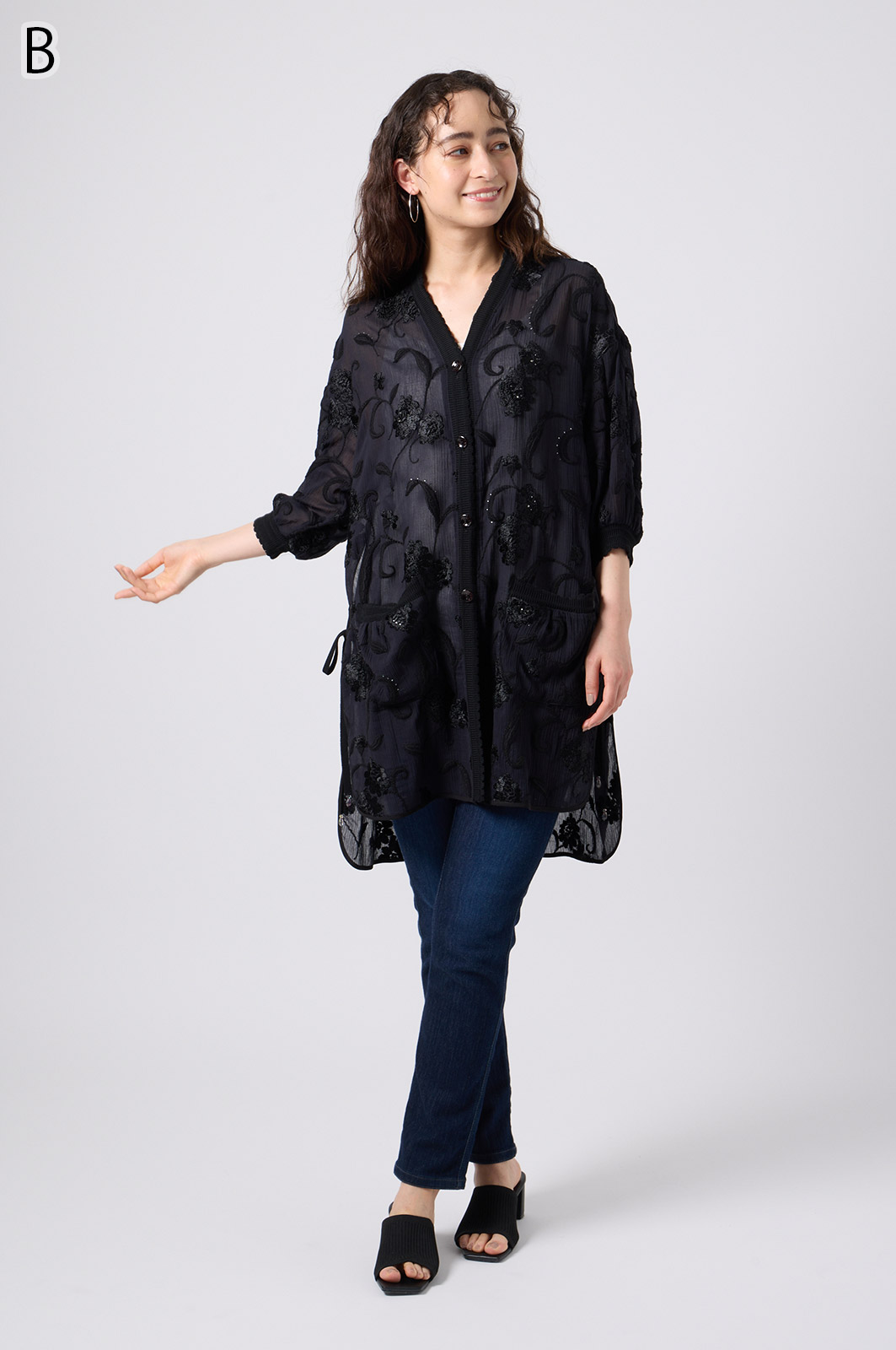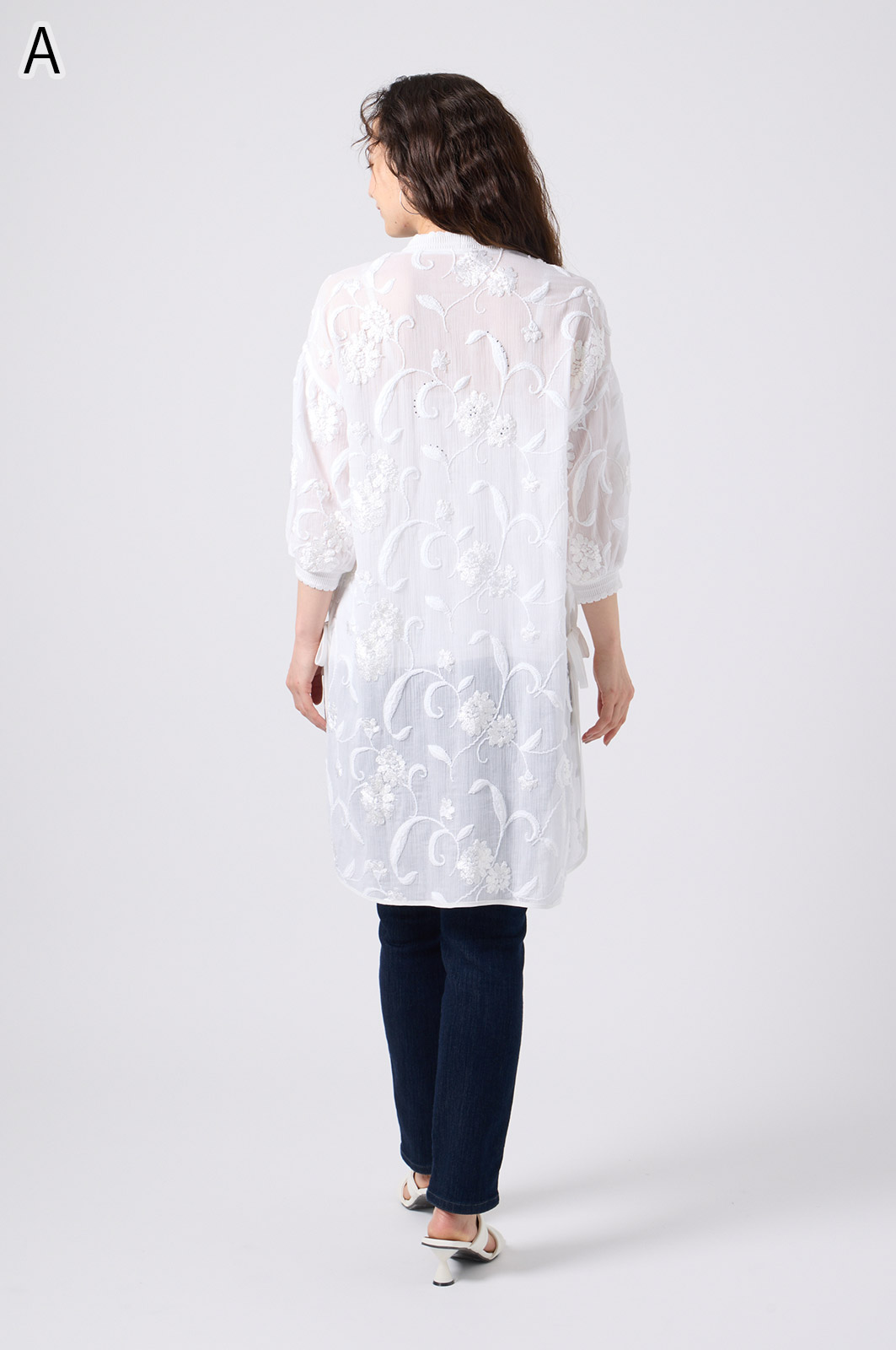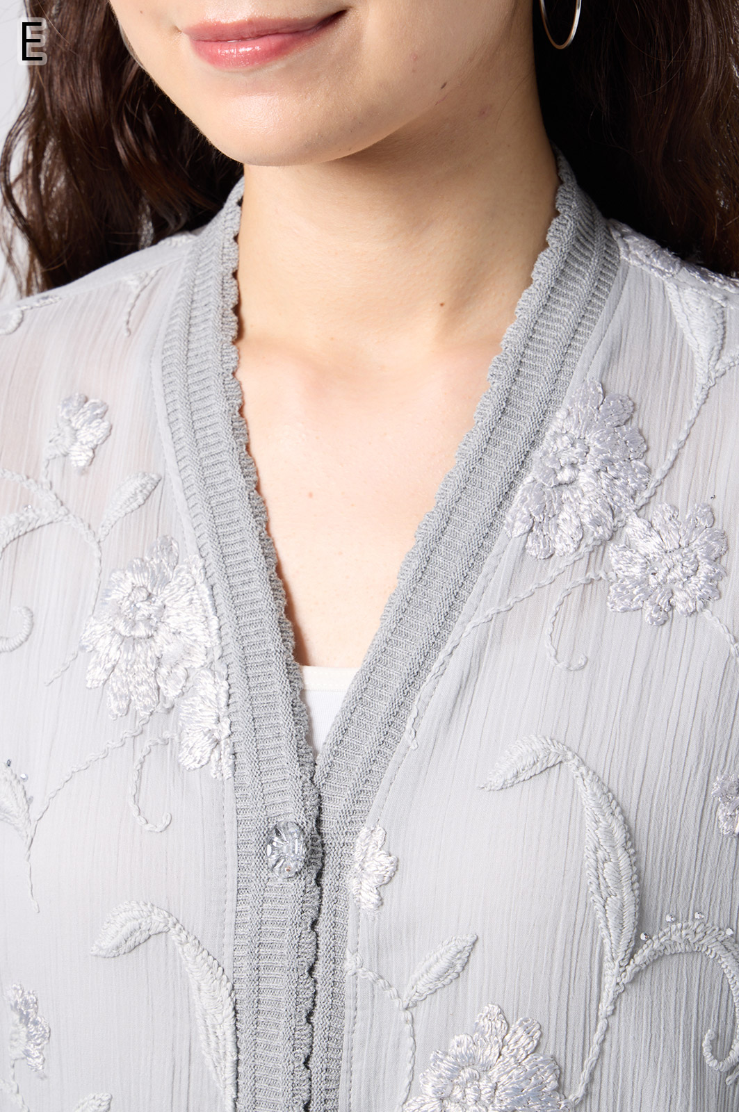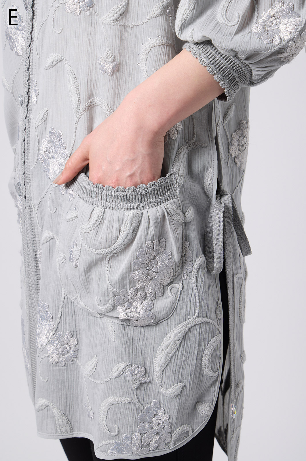 軽やかな綿混素材に、立体感のある花の刺しゅうが華やかな印象。さらっと羽織れるニット使いで、着心地も抜群。イタリー製生地ならではの上品さが光る、大人のためのブラウスです。