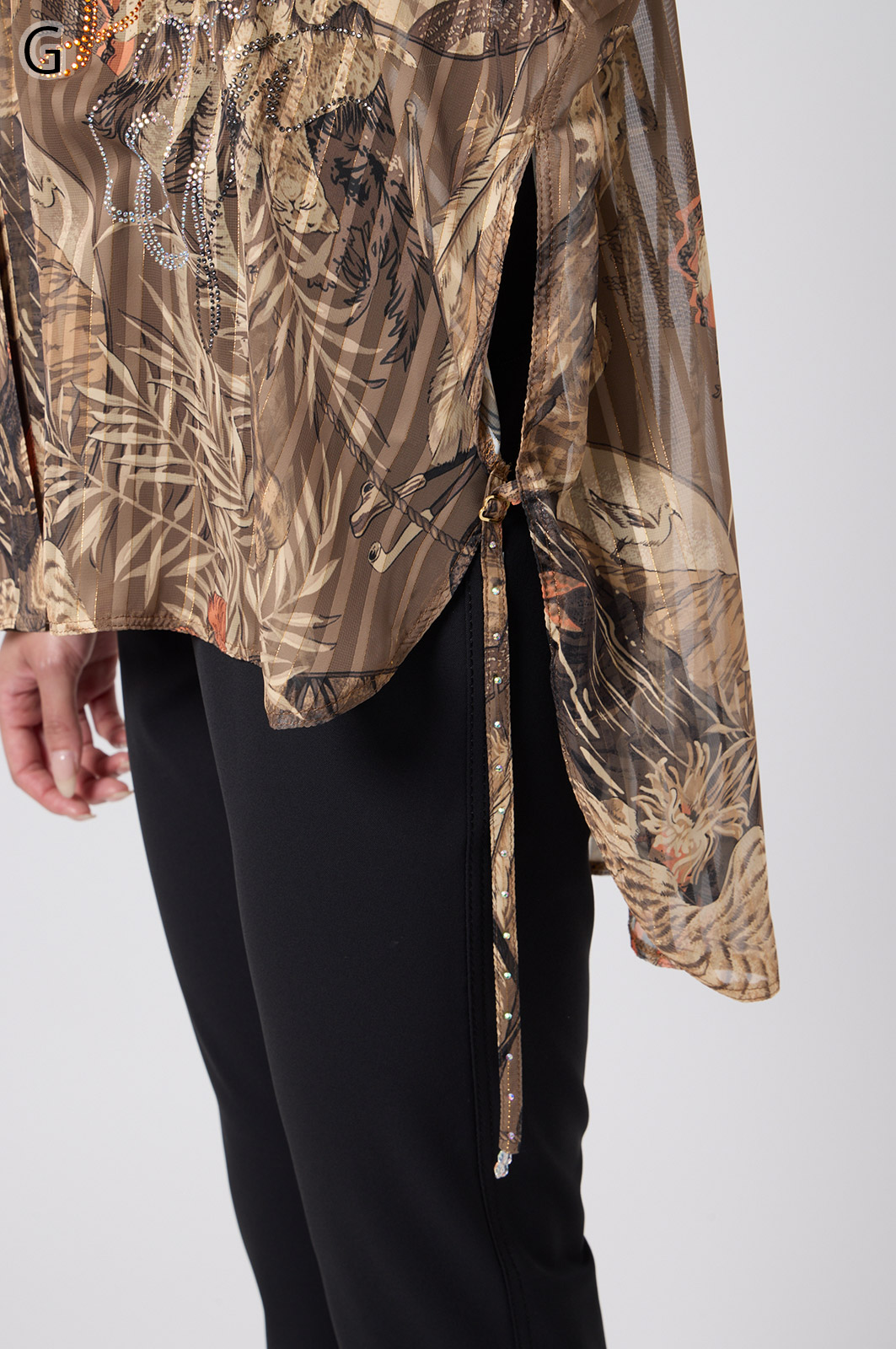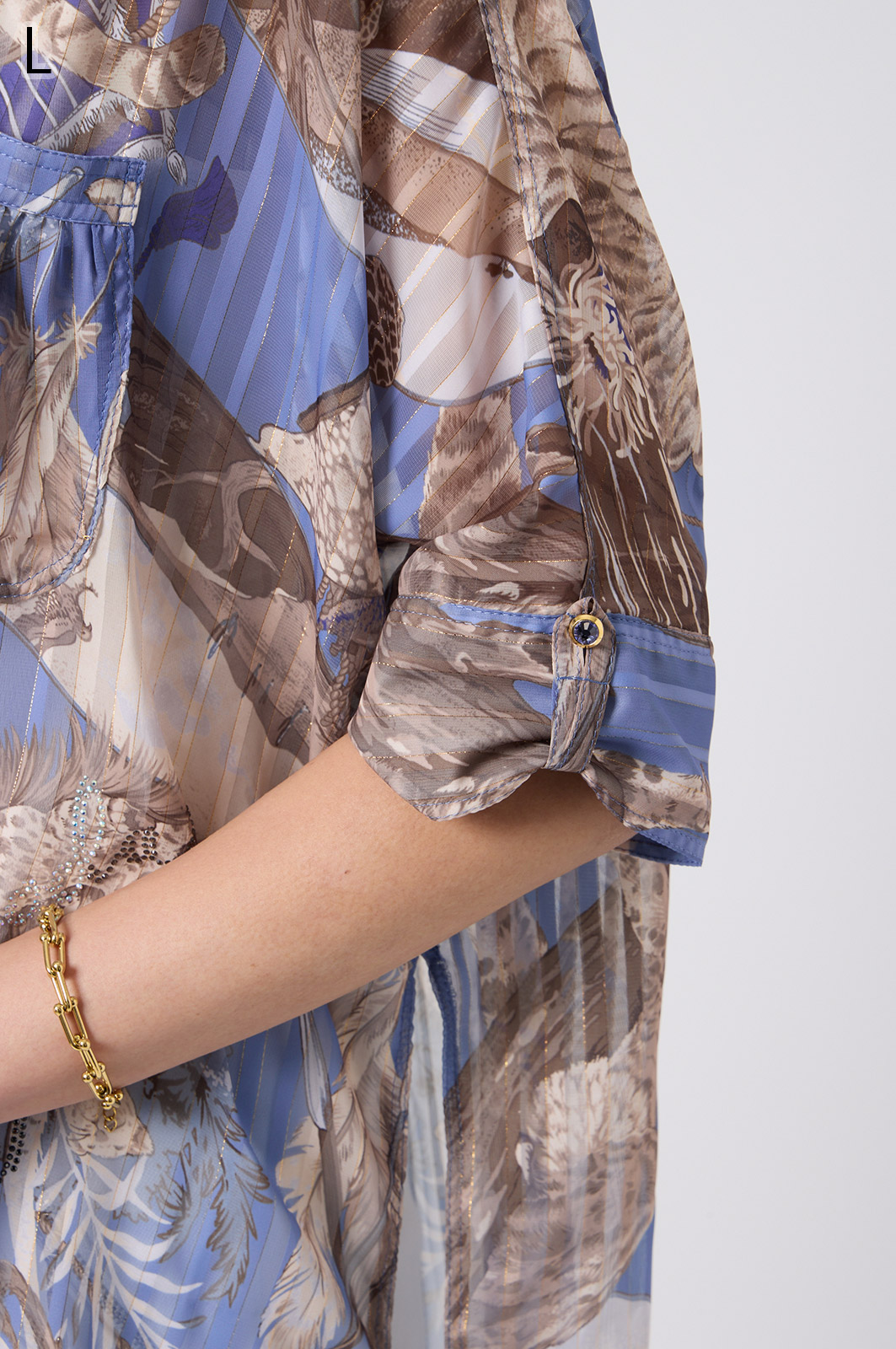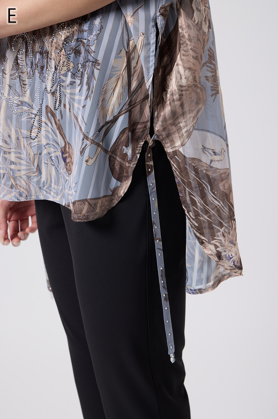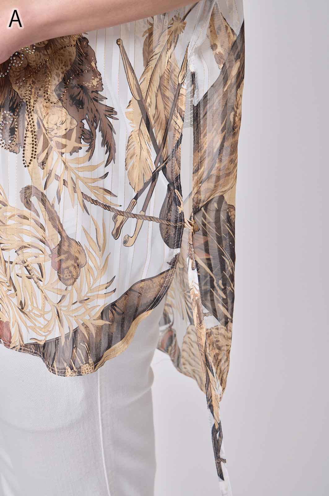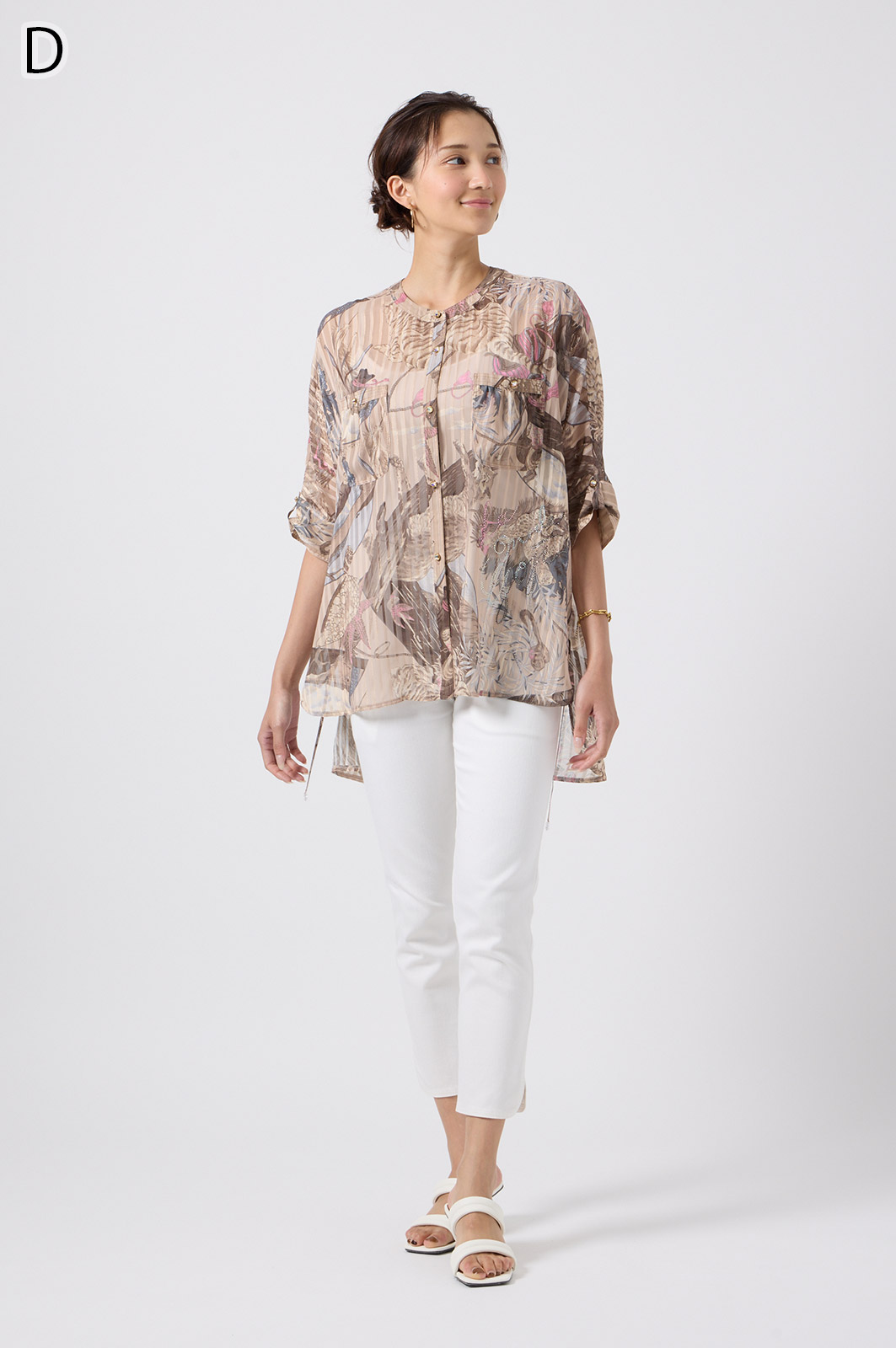NO.624279BL ブラウス (Blouse) 華やかな動物柄と、光沢のある軽やかな生地が上品な印象を演出。涼しくてさっと羽織れるので、夏のおでかけや冷房対策にもぴったりのブラウスです。 モデル身長:171cm 【 価格 (PRICE) 】 ¥63,800 税込(W/ TAX) 【 カラー (COLOR) 】 9号着用。他カラーも展開予定。 【 品質 (QUALITY) 】 ポリエステル100%(スリット糸使用) 【 サイズ ( SIZE ) 】 9号:着丈79cm/バスト164cm/ゆき丈58cm 11号:着丈81cm/バスト170cm/ゆき丈59cm