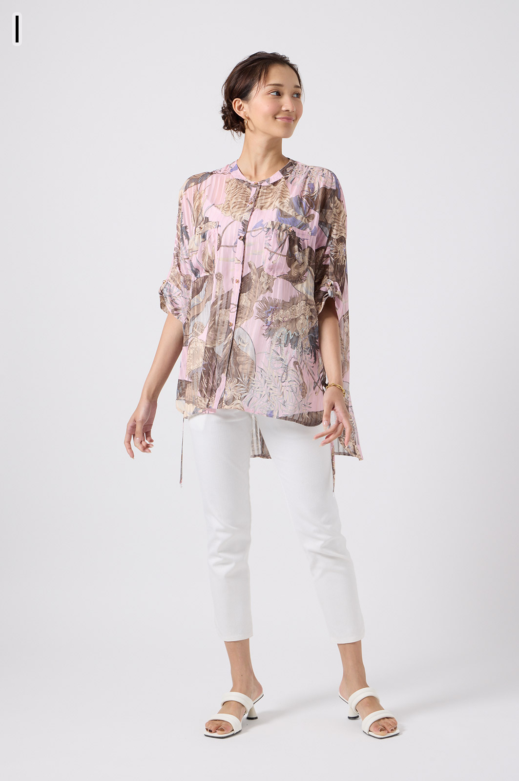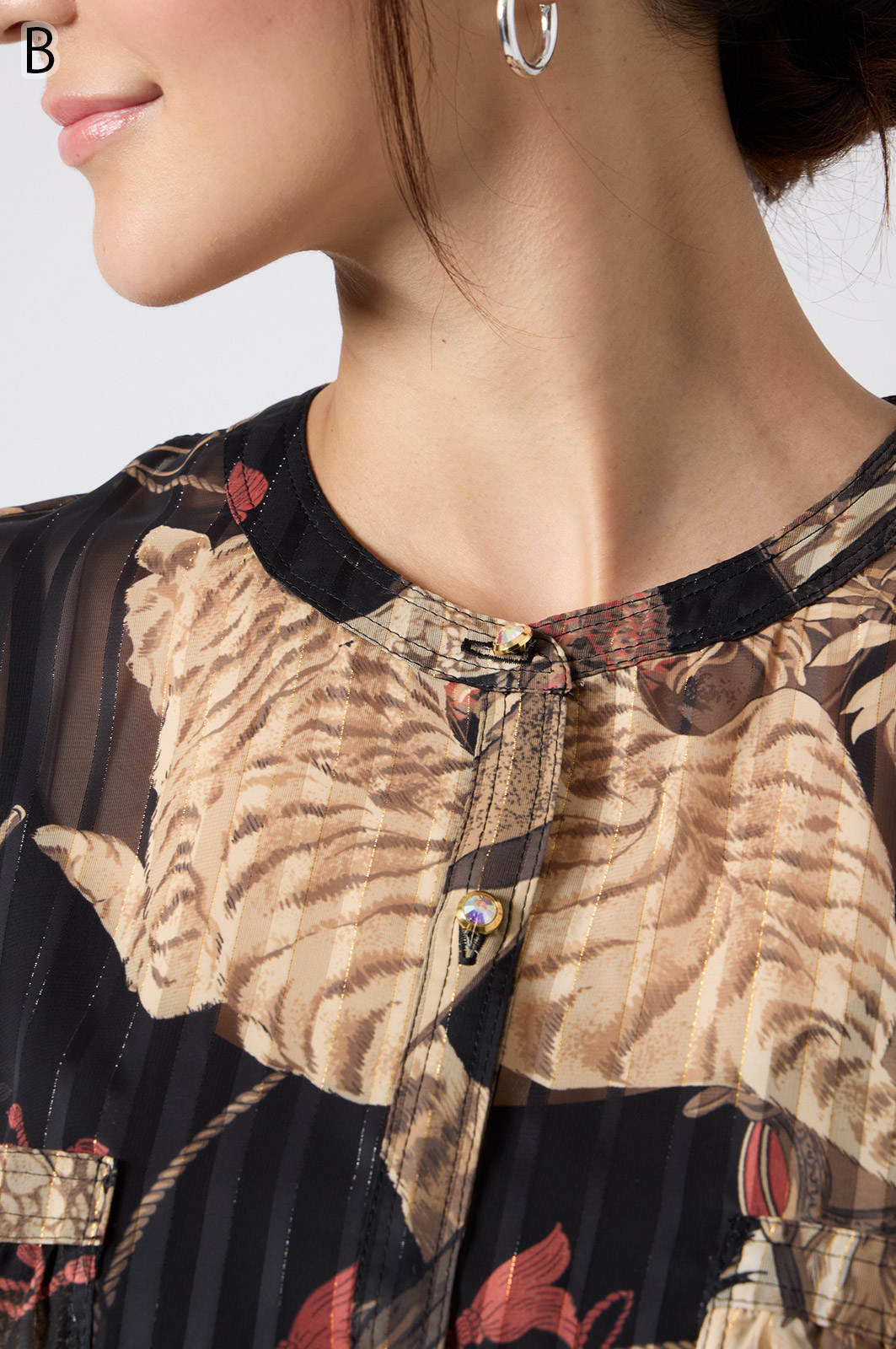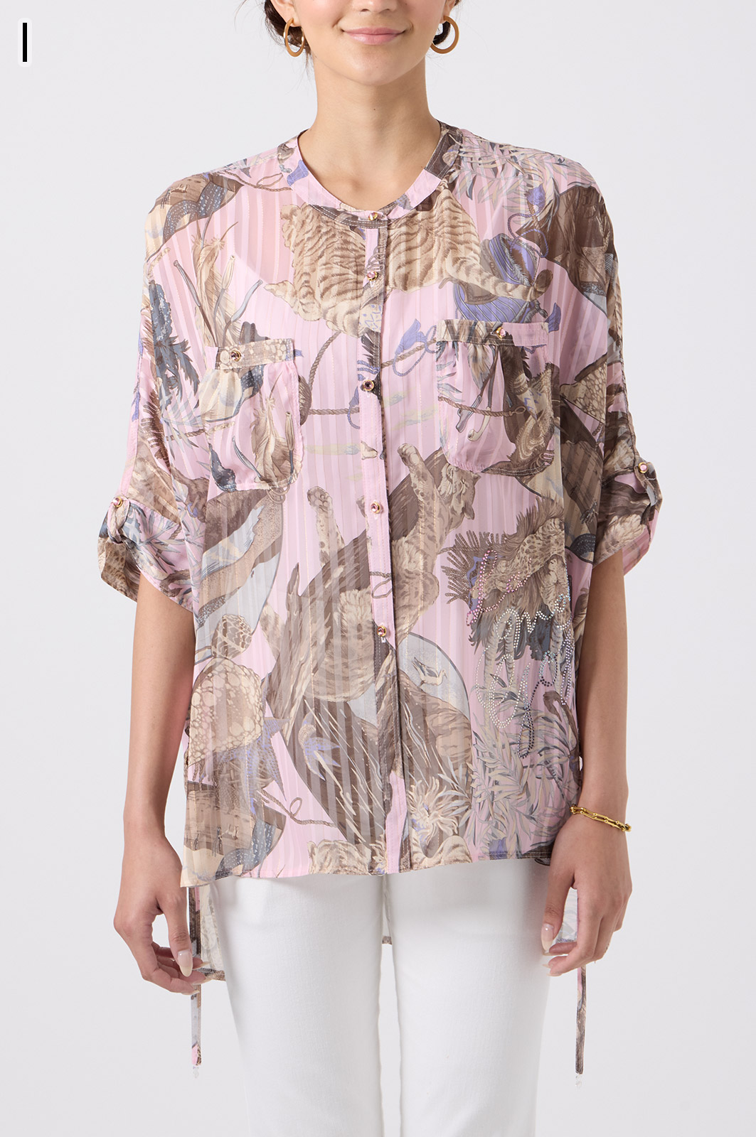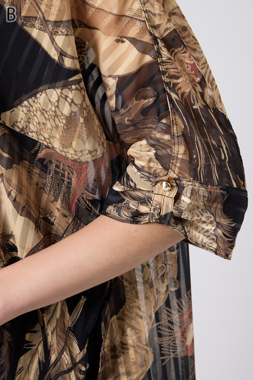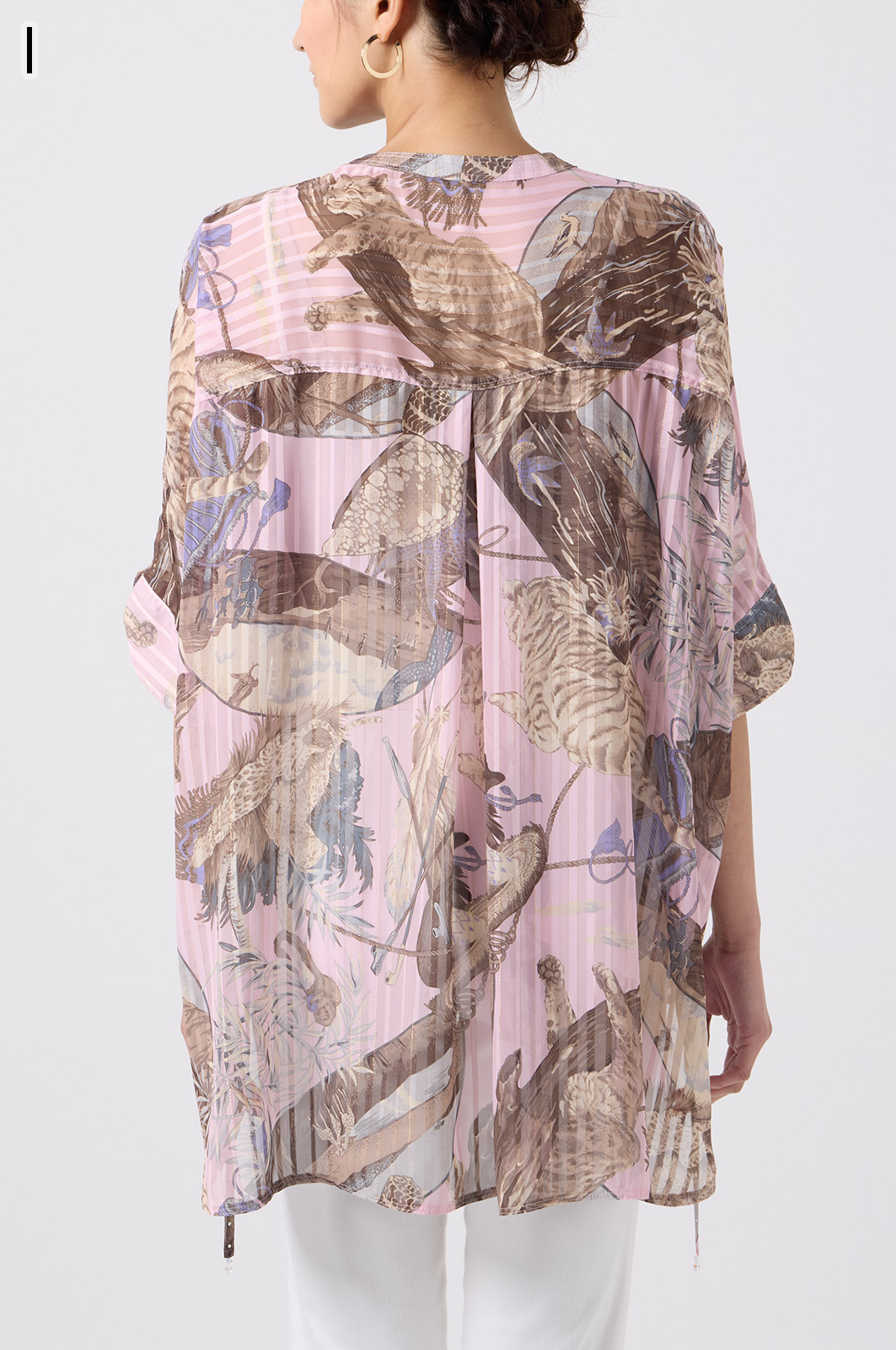 NO.624279BL ブラウス (Blouse) 華やかな動物柄と、光沢のある軽やかな生地が上品な印象を演出。涼しくてさっと羽織れるので、夏のおでかけや冷房対策にもぴったりのブラウスです。 モデル身長:171cm 【 価格 (PRICE) 】 ¥63,800 税込(W/ TAX) 【 カラー (COLOR) 】 9号着用。他カラーも展開予定。 【 品質 (QUALITY) 】 ポリエステル100%(スリット糸使用) 【 サイズ ( SIZE ) 】 9号:着丈79cm/バスト164cm/ゆき丈58cm 11号:着丈81cm/バスト170cm/ゆき丈59cm
