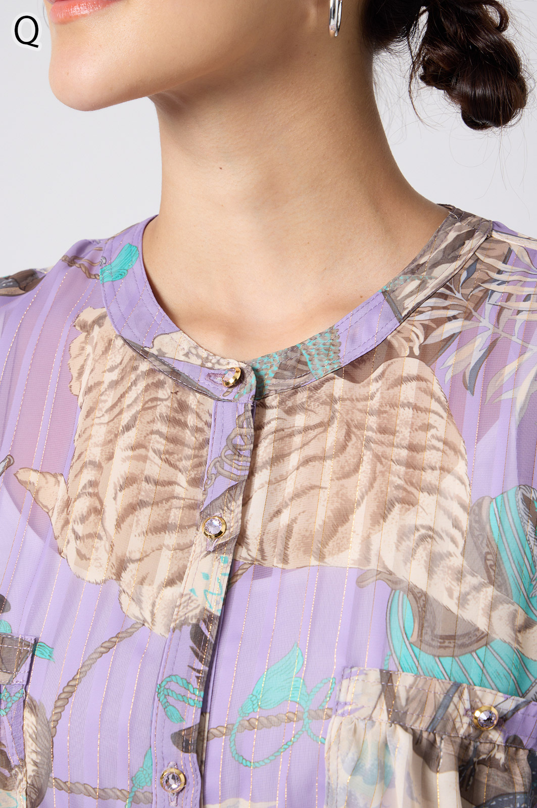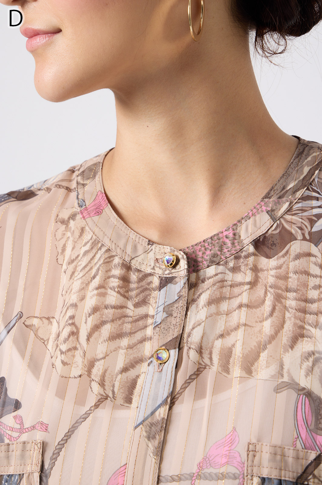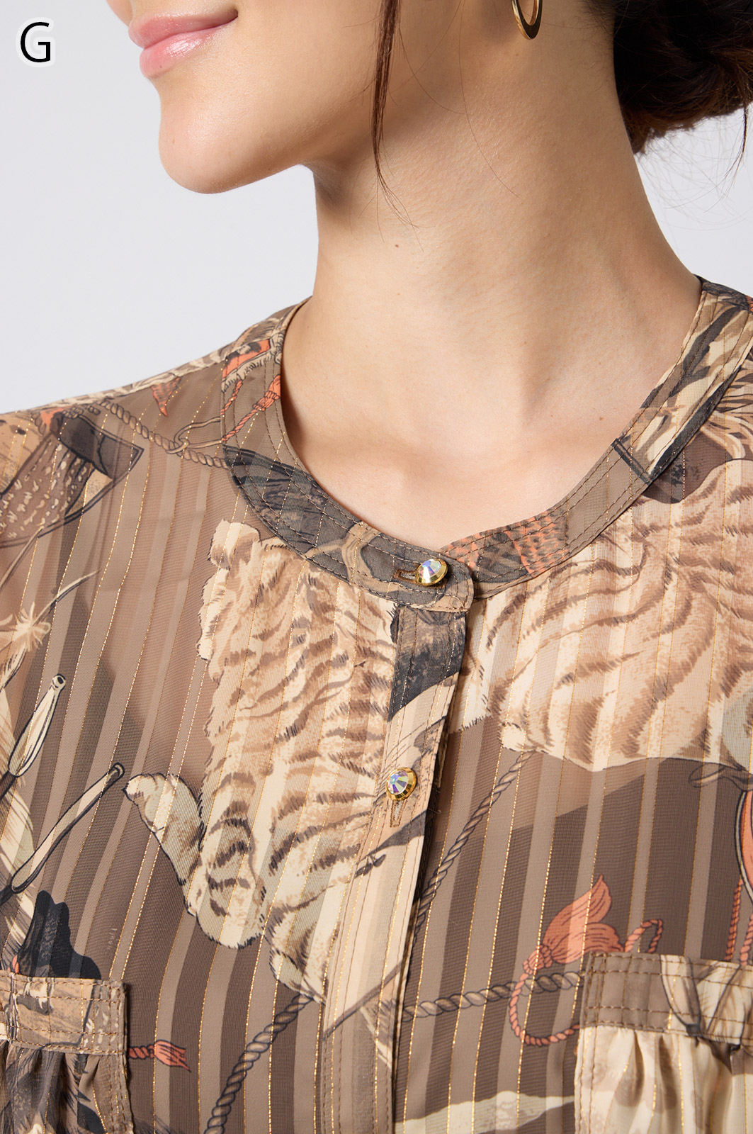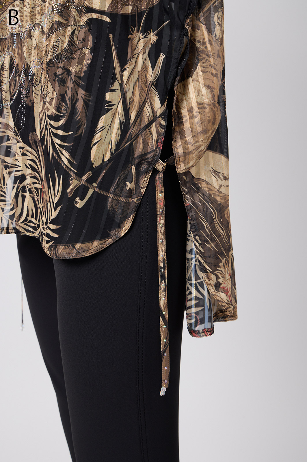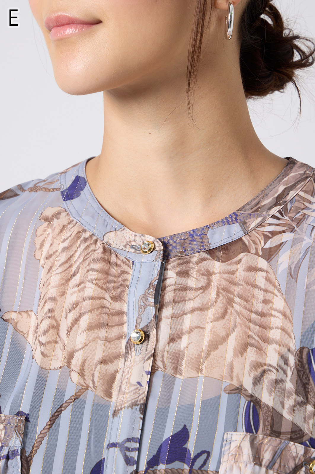 NO.624279BL ブラウス (Blouse) 華やかな動物柄と、光沢のある軽やかな生地が上品な印象を演出。涼しくてさっと羽織れるので、夏のおでかけや冷房対策にもぴったりのブラウスです。 モデル身長:171cm 【 価格 (PRICE) 】 ¥63,800 税込(W/ TAX) 【 カラー (COLOR) 】 9号着用。他カラーも展開予定。 【 品質 (QUALITY) 】 ポリエステル100%(スリット糸使用) 【 サイズ ( SIZE ) 】 9号:着丈79cm/バスト164cm/ゆき丈58cm 11号:着丈81cm/バスト170cm/ゆき丈59cm