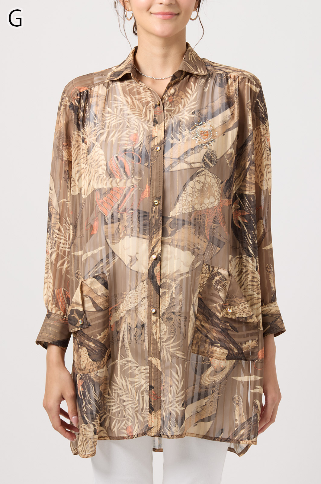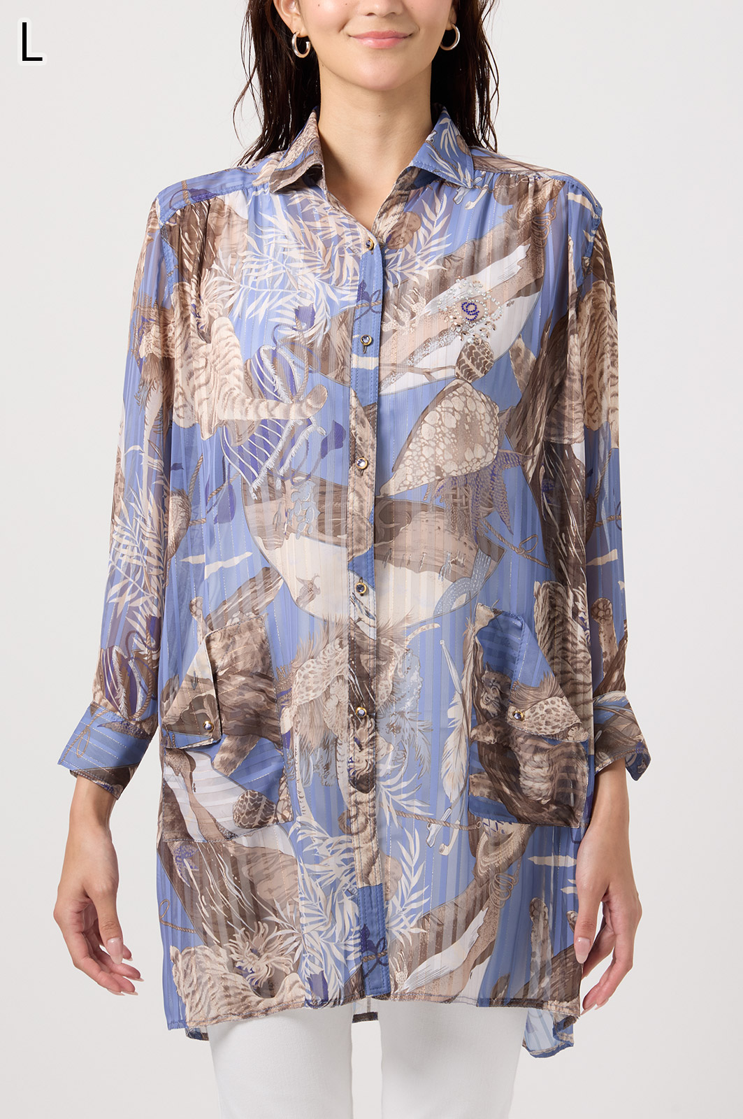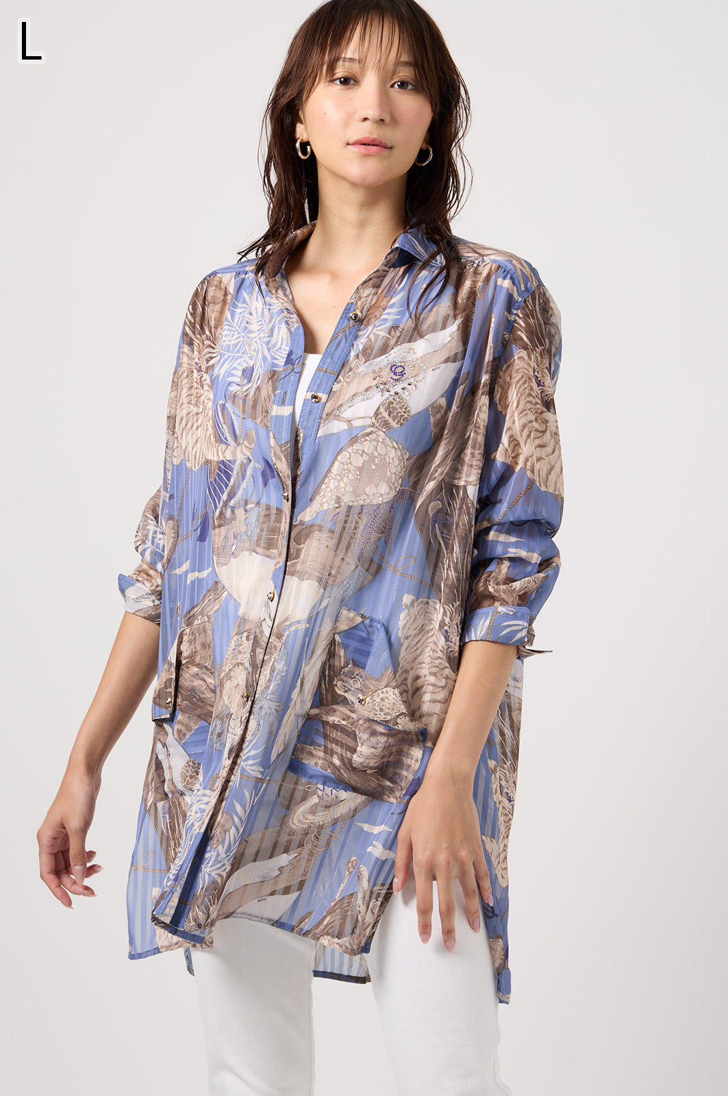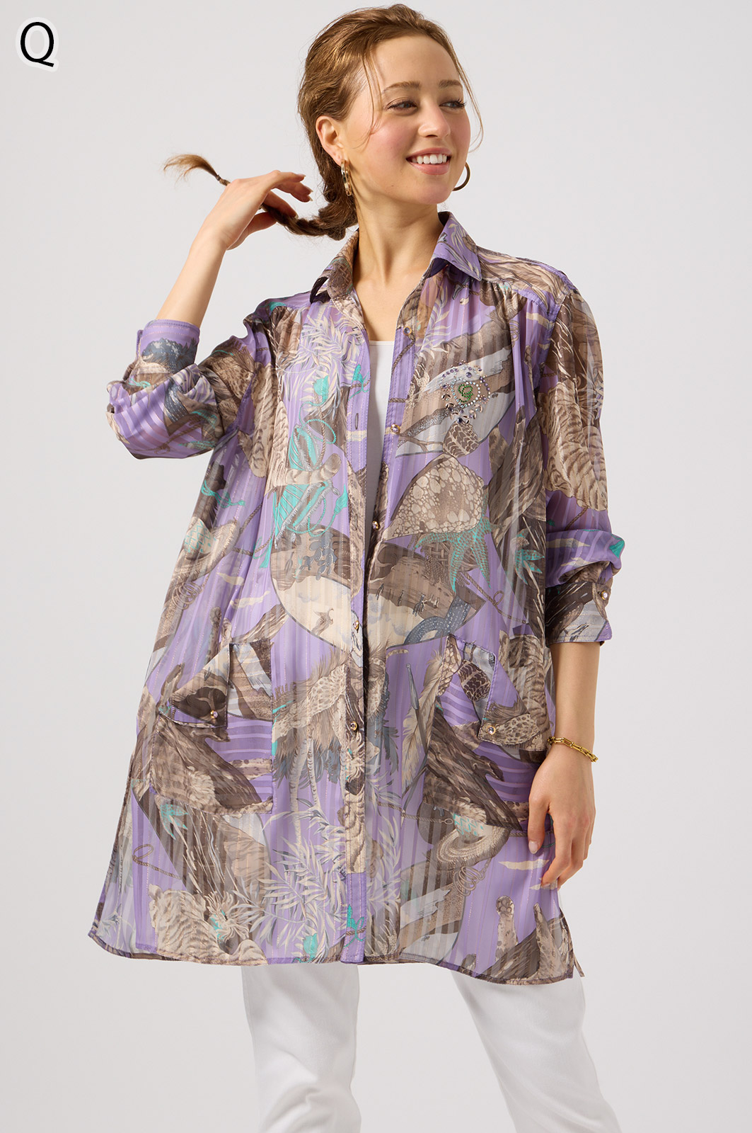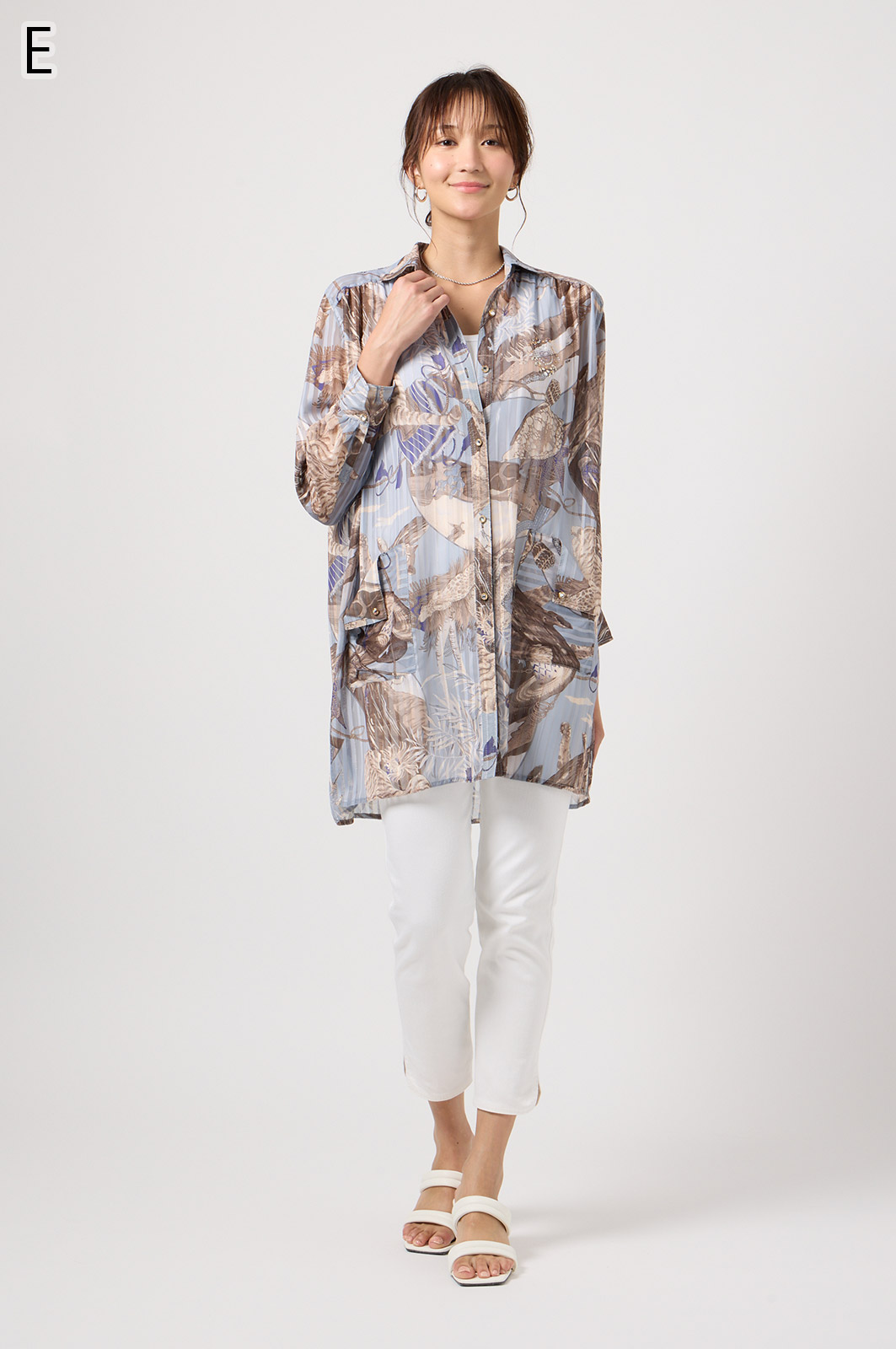 ここでしか手に入らない動物柄が楽しい、羽織りとしても使える軽やかブラウス。Tシャツの上にサッと重ねるだけで、コーデがぐっとおしゃれに仕上がります♪