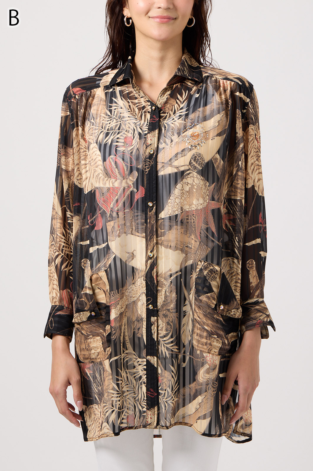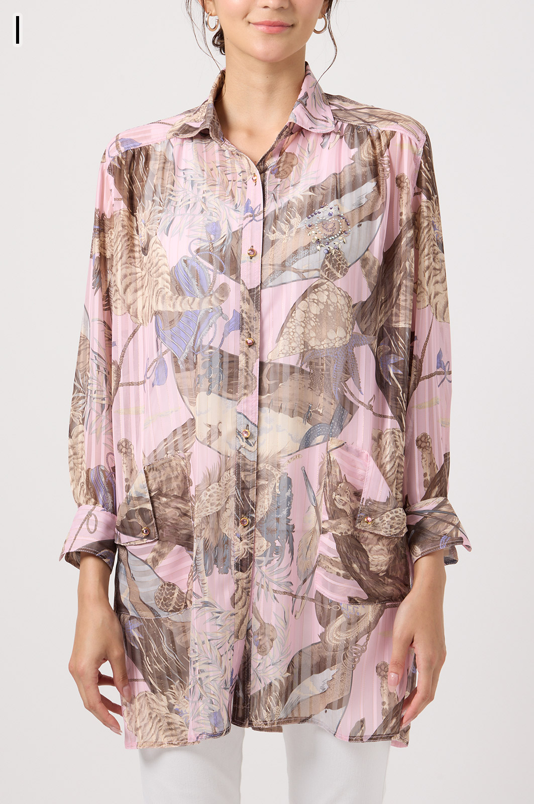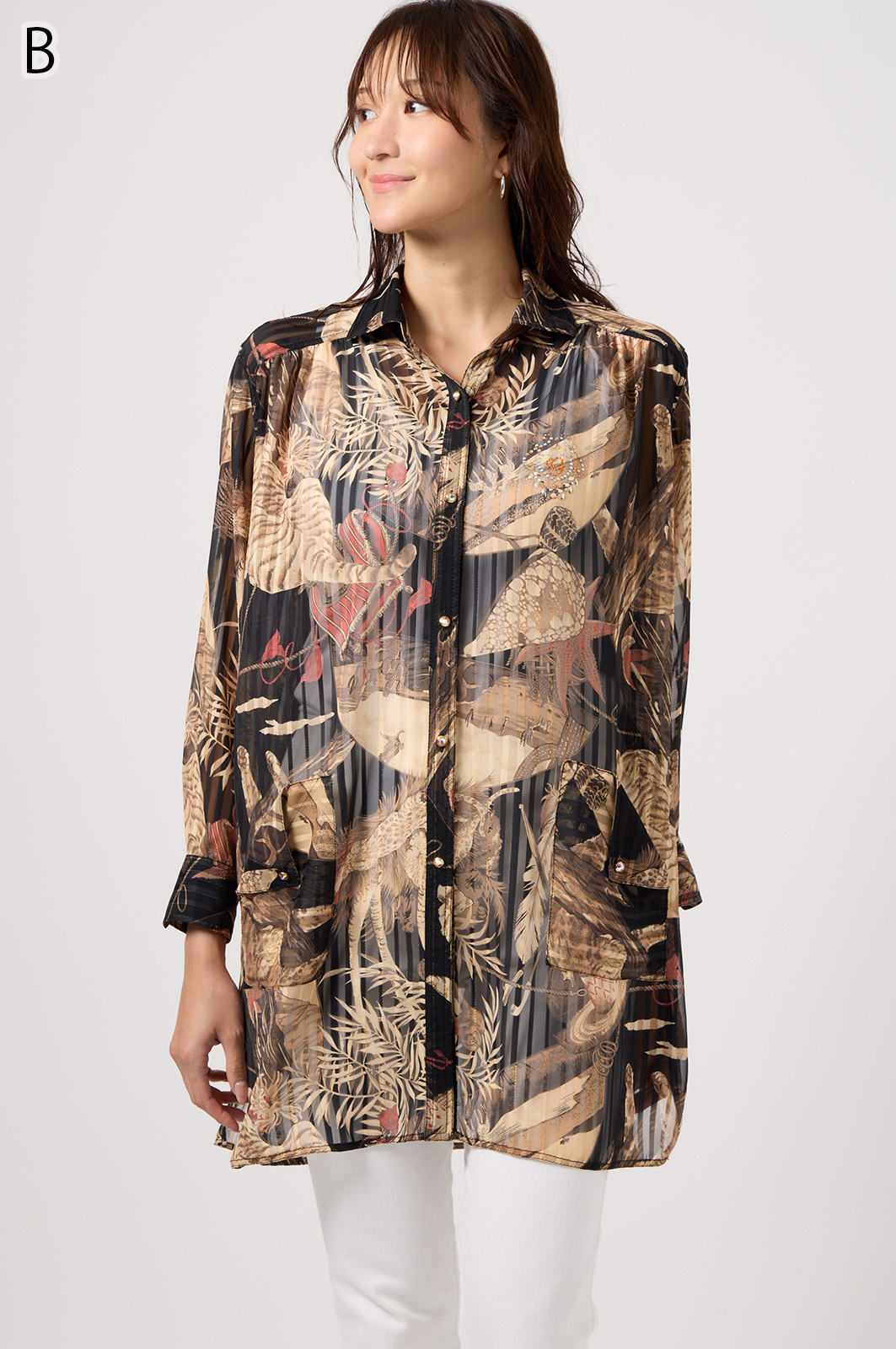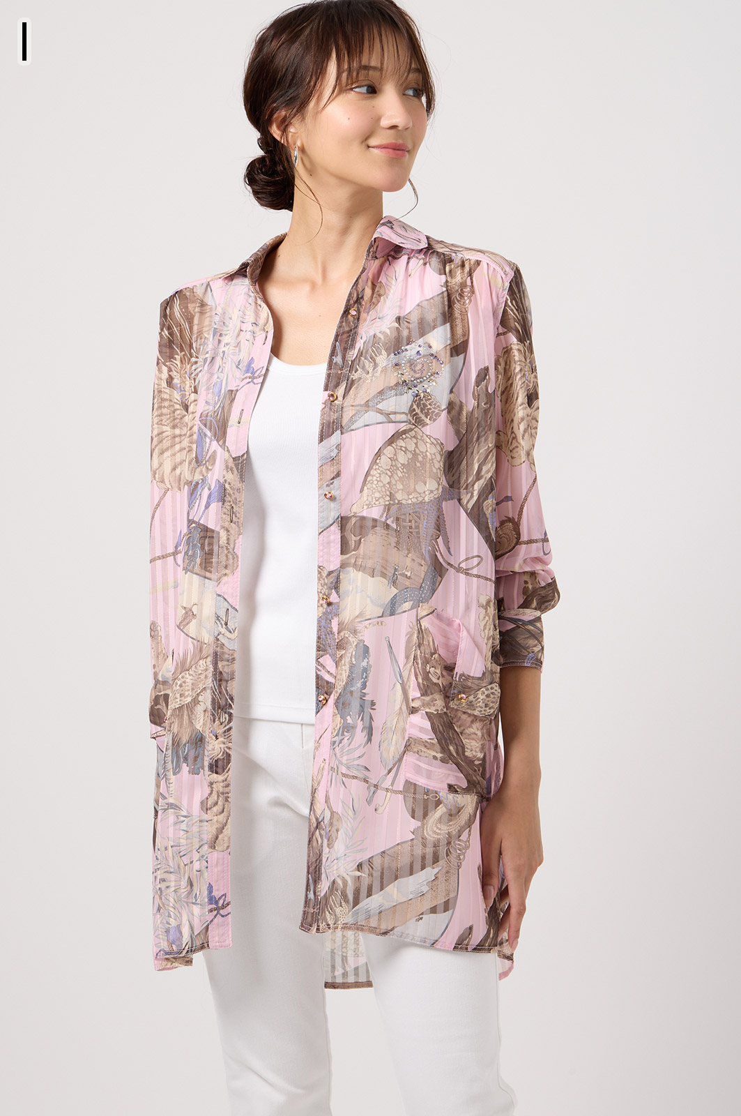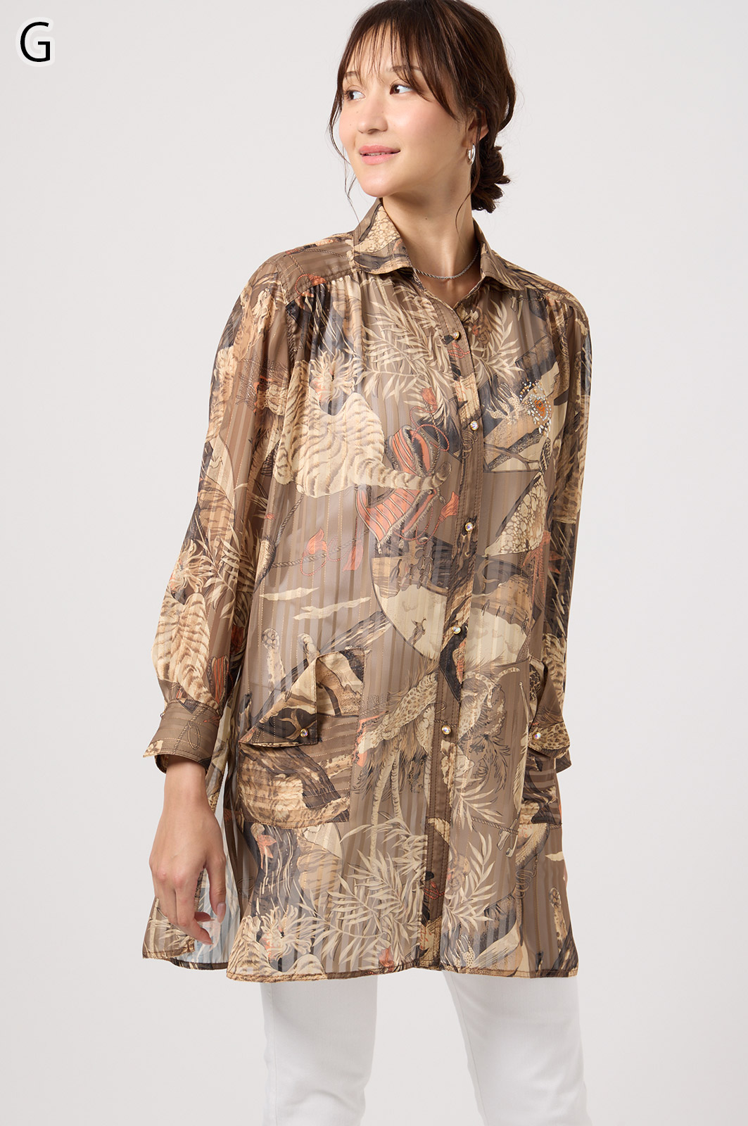 ここでしか手に入らない動物柄が楽しい、羽織りとしても使える軽やかブラウス。Tシャツの上にサッと重ねるだけで、コーデがぐっとおしゃれに仕上がります♪