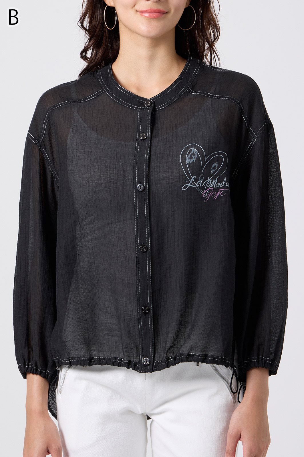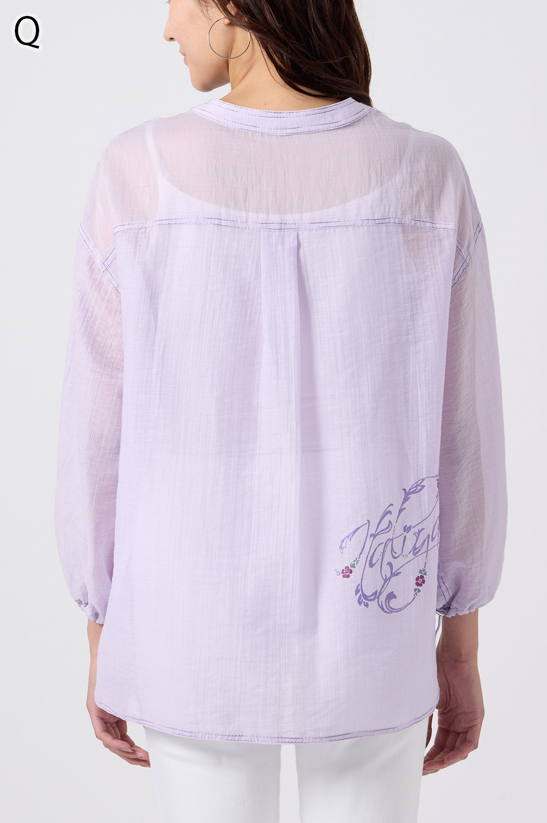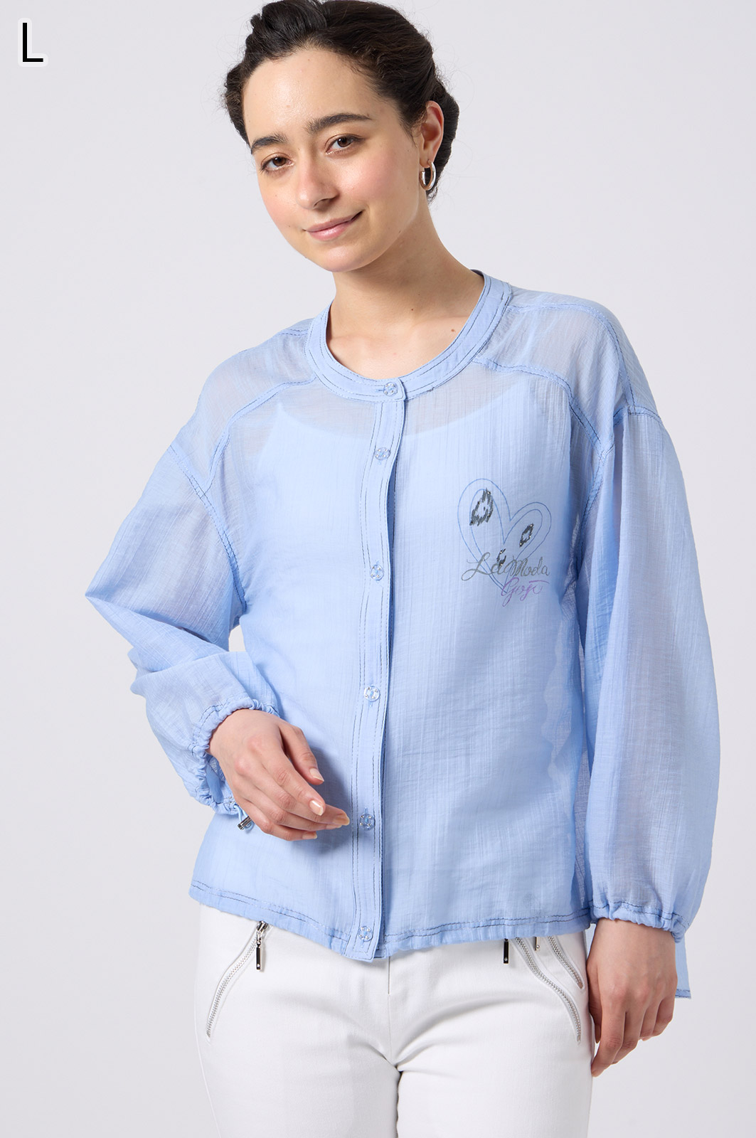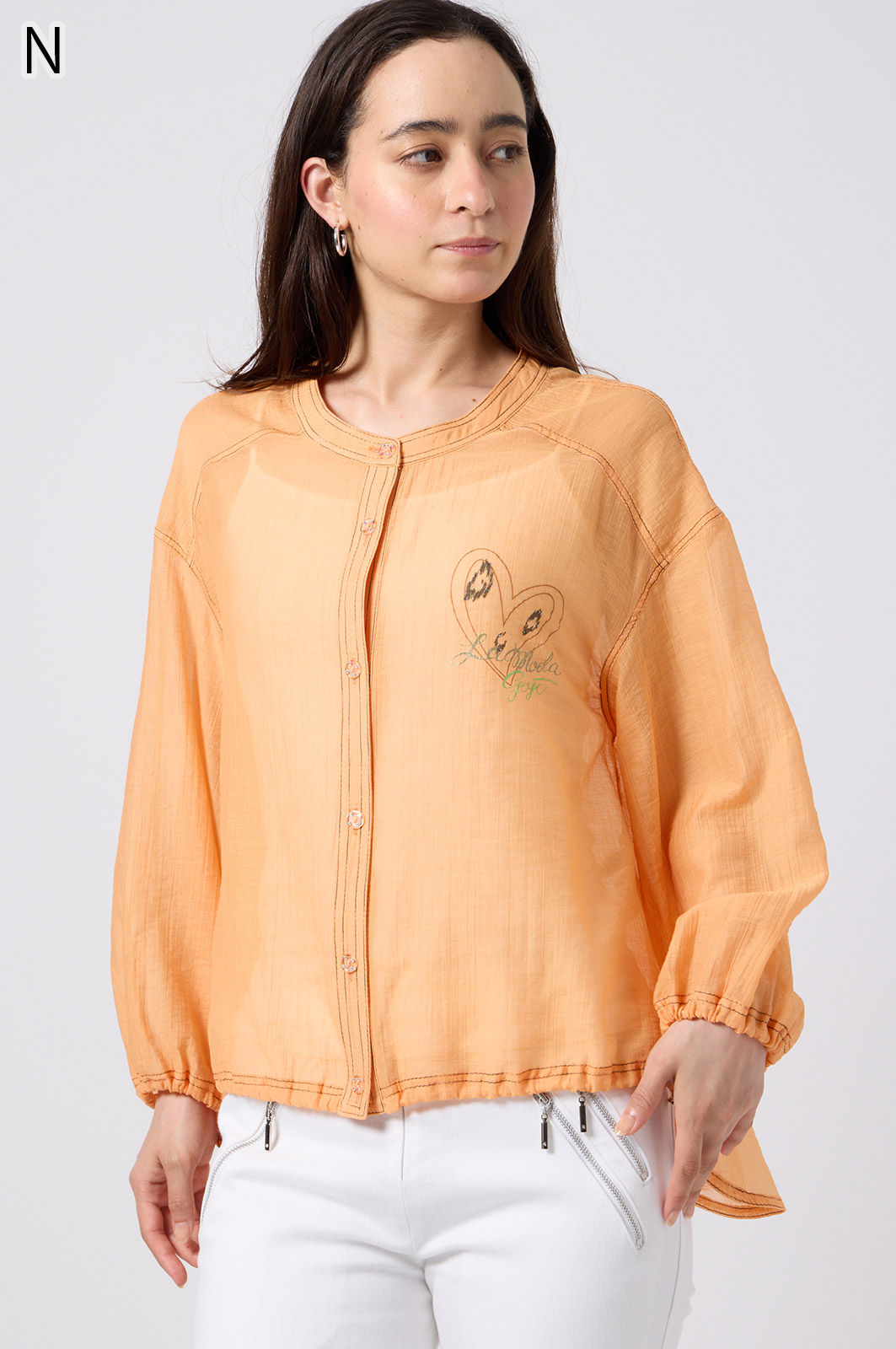 軽くて涼しい綿混のしぼ感素材を使った、ブルゾン風のブラウス。さっと羽織れて、お出かけにも日よけにも大活躍!着まわししやすく、毎日使いたくなる一枚です♪