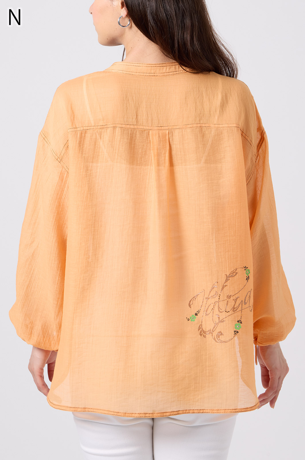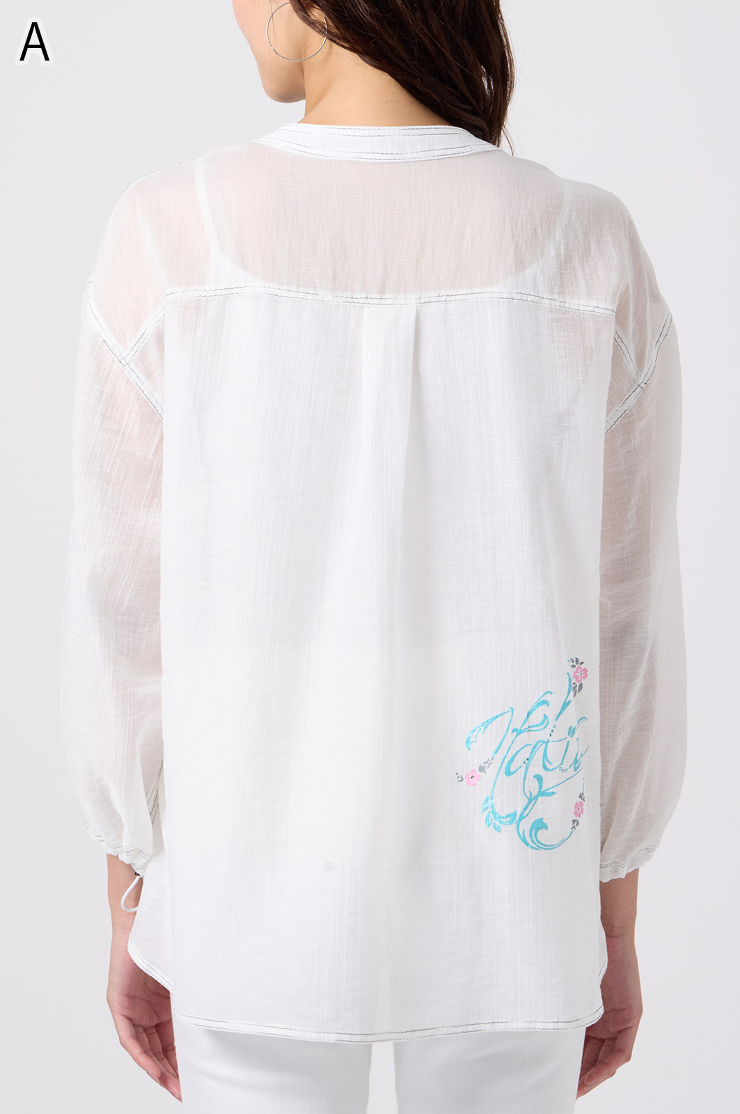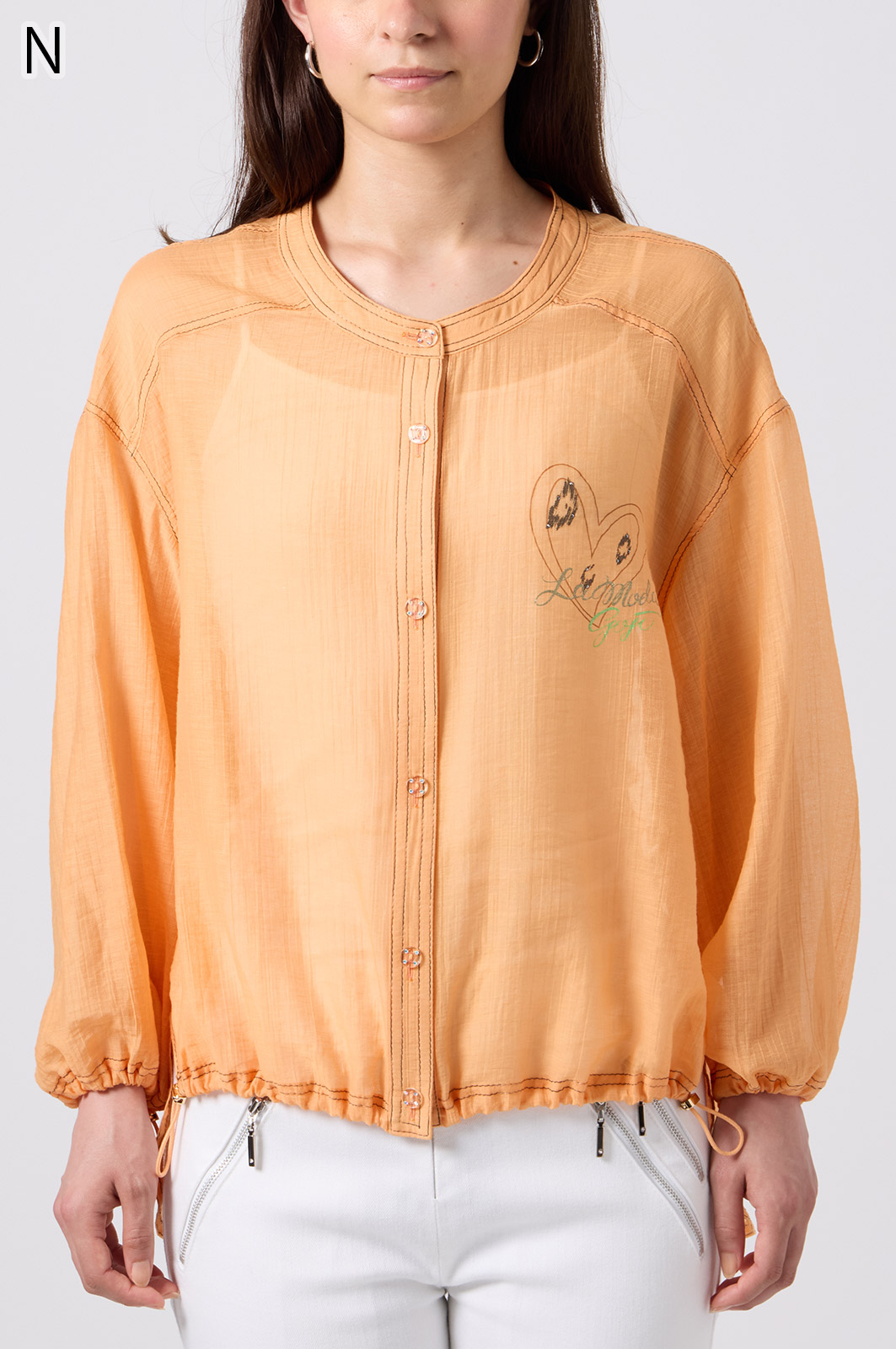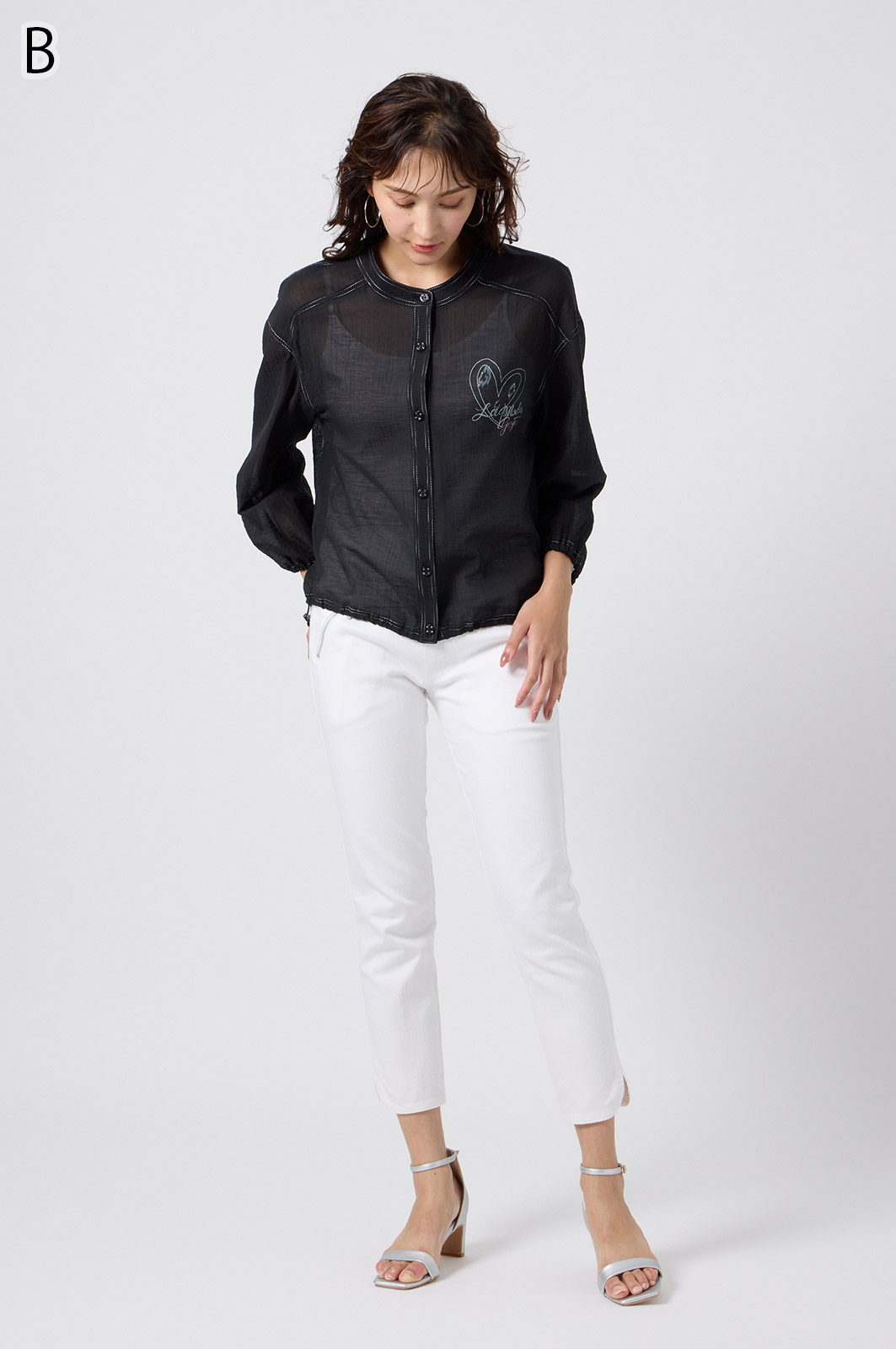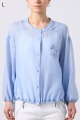 軽くて涼しい綿混のしぼ感素材を使った、ブルゾン風のブラウス。さっと羽織れて、お出かけにも日よけにも大活躍!着まわししやすく、毎日使いたくなる一枚です♪