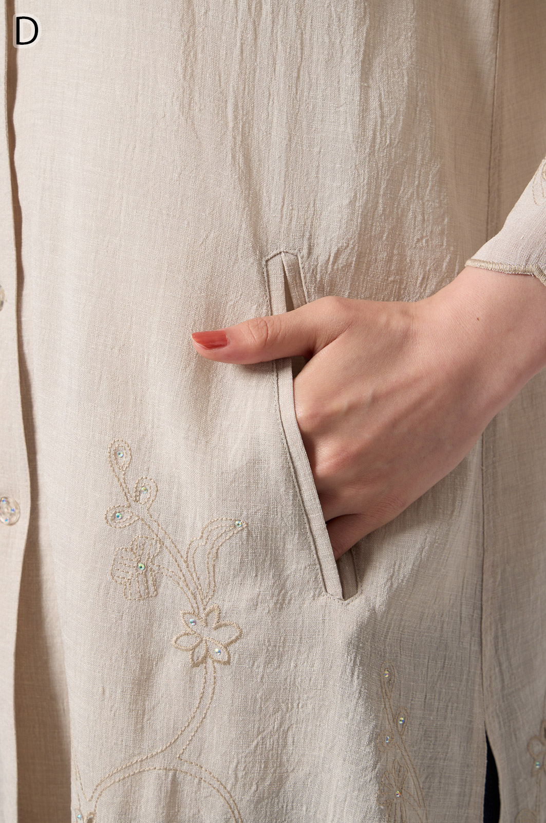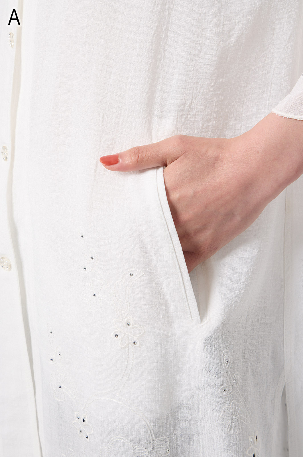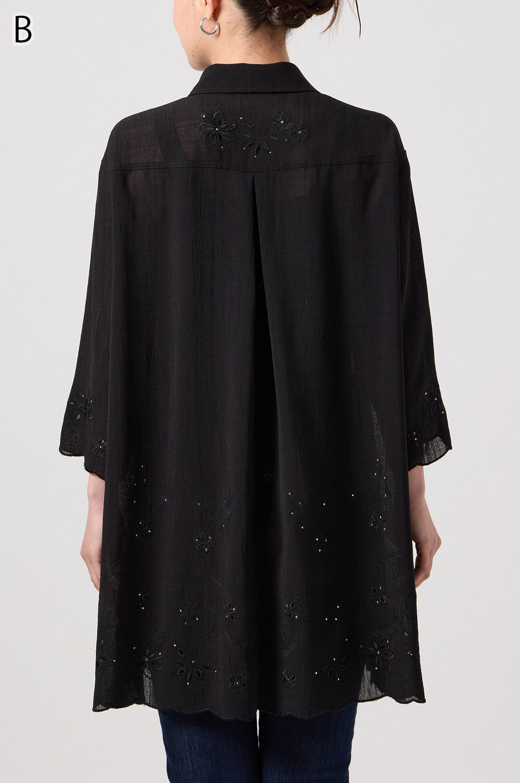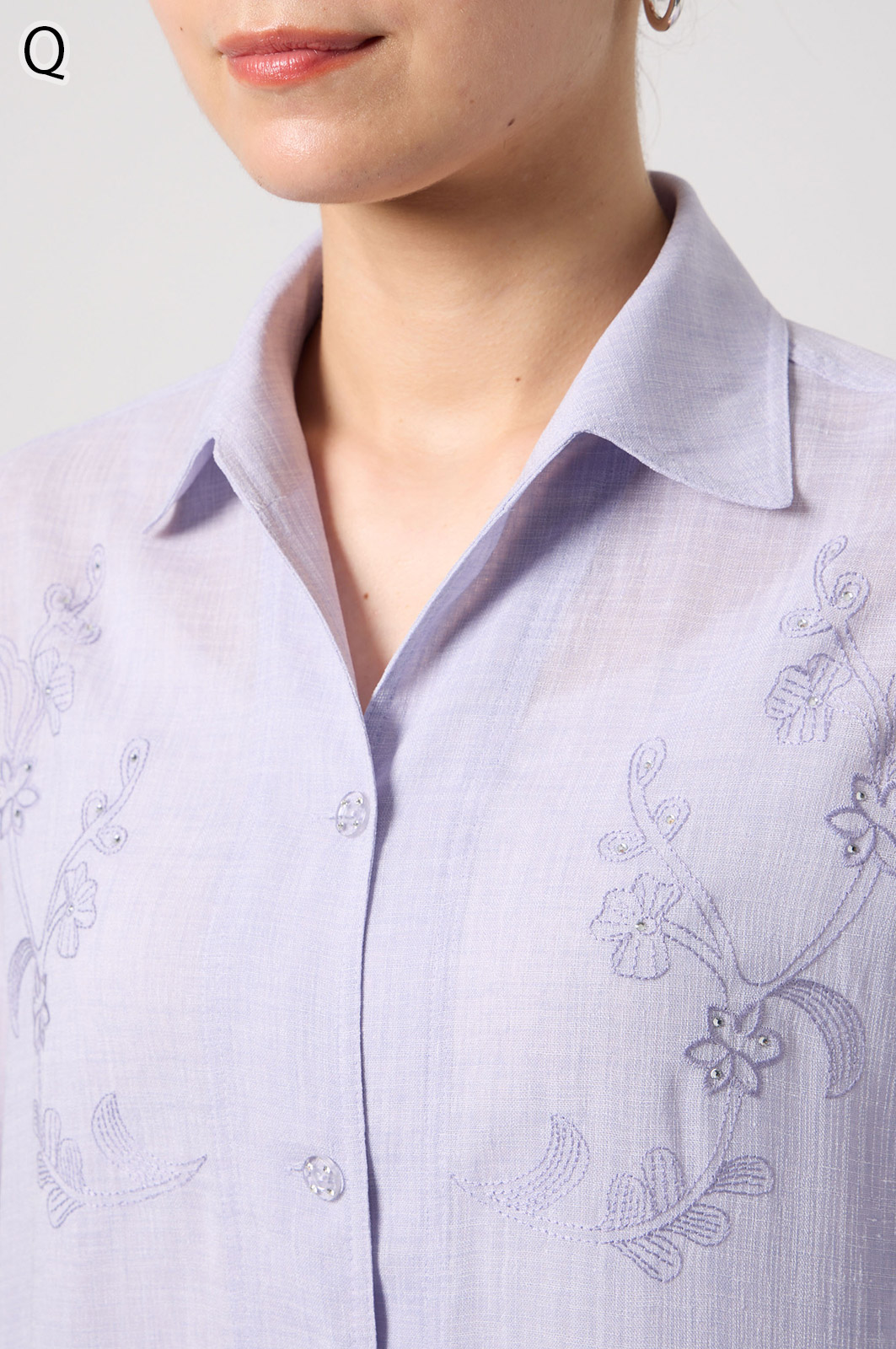 涼しげな風合いの生地に、上品な透かし刺しゅうをプラスした夏にぴったりの軽やか羽織りアイテムです。