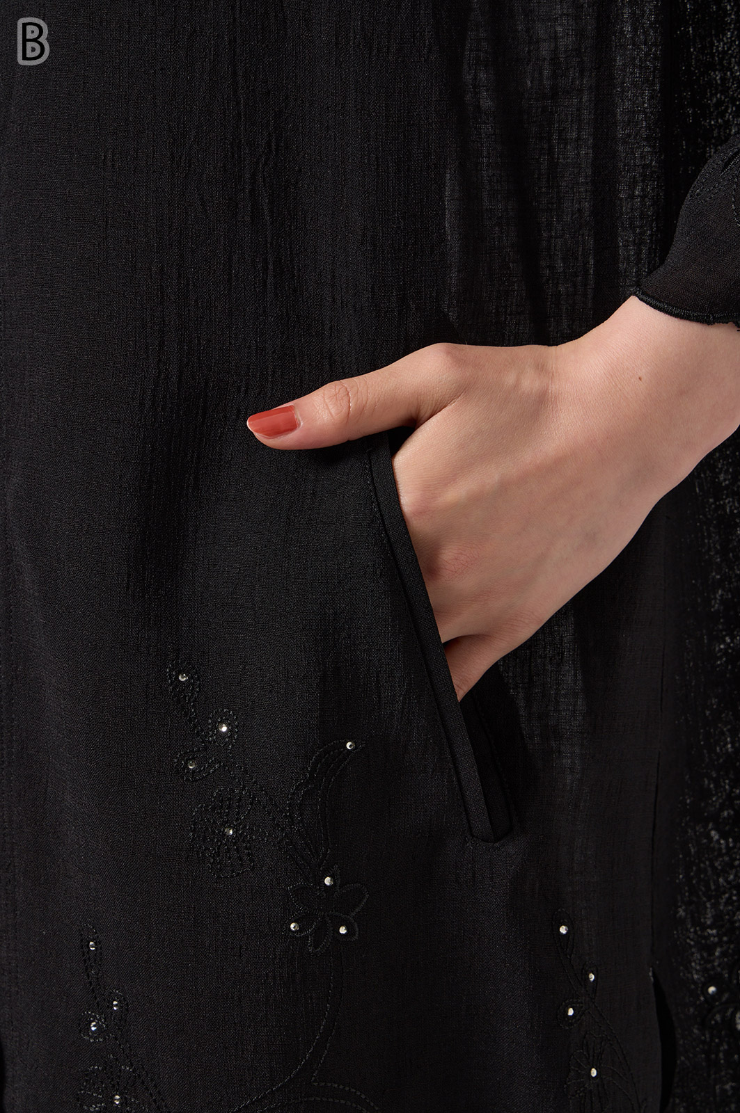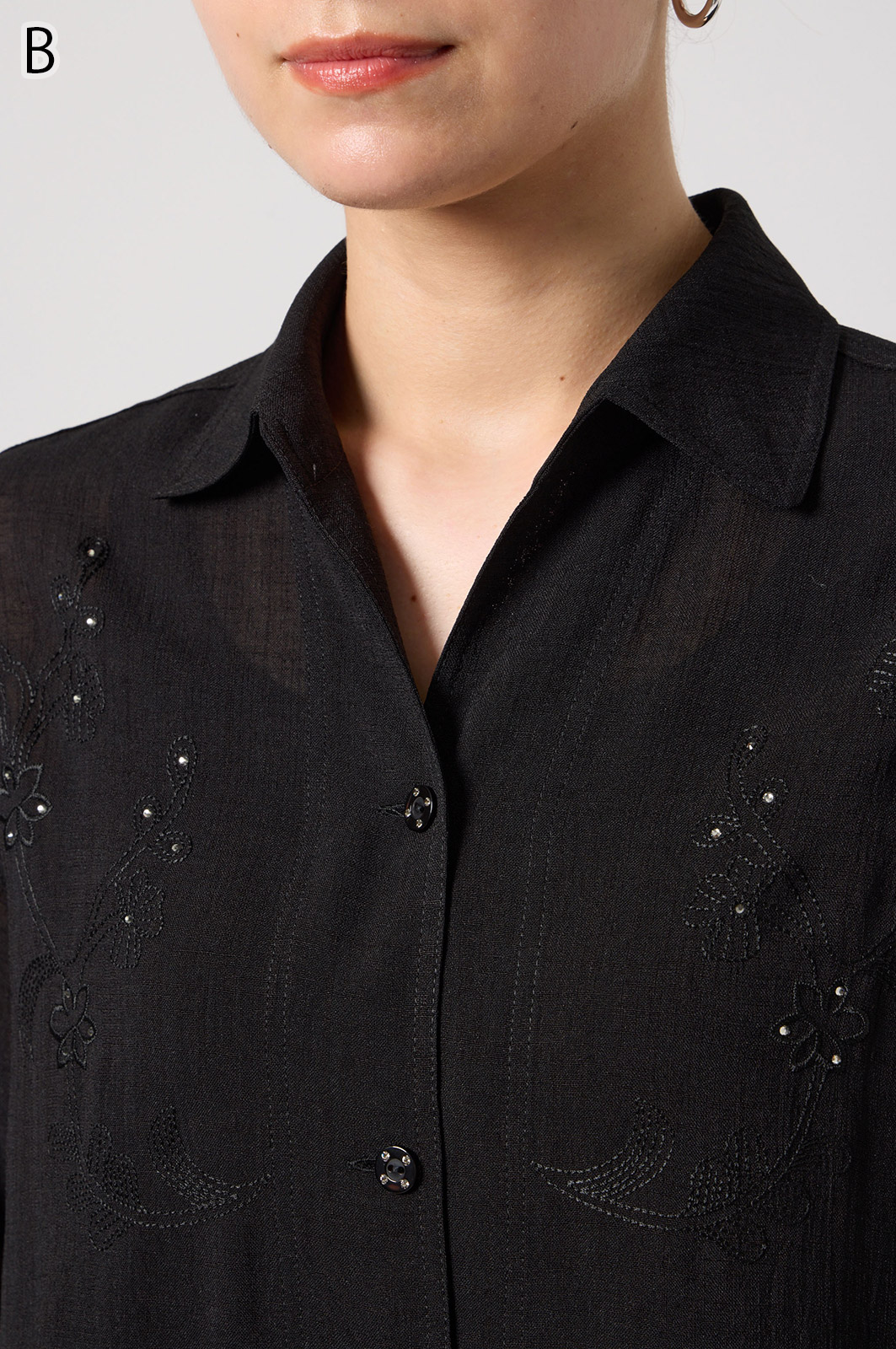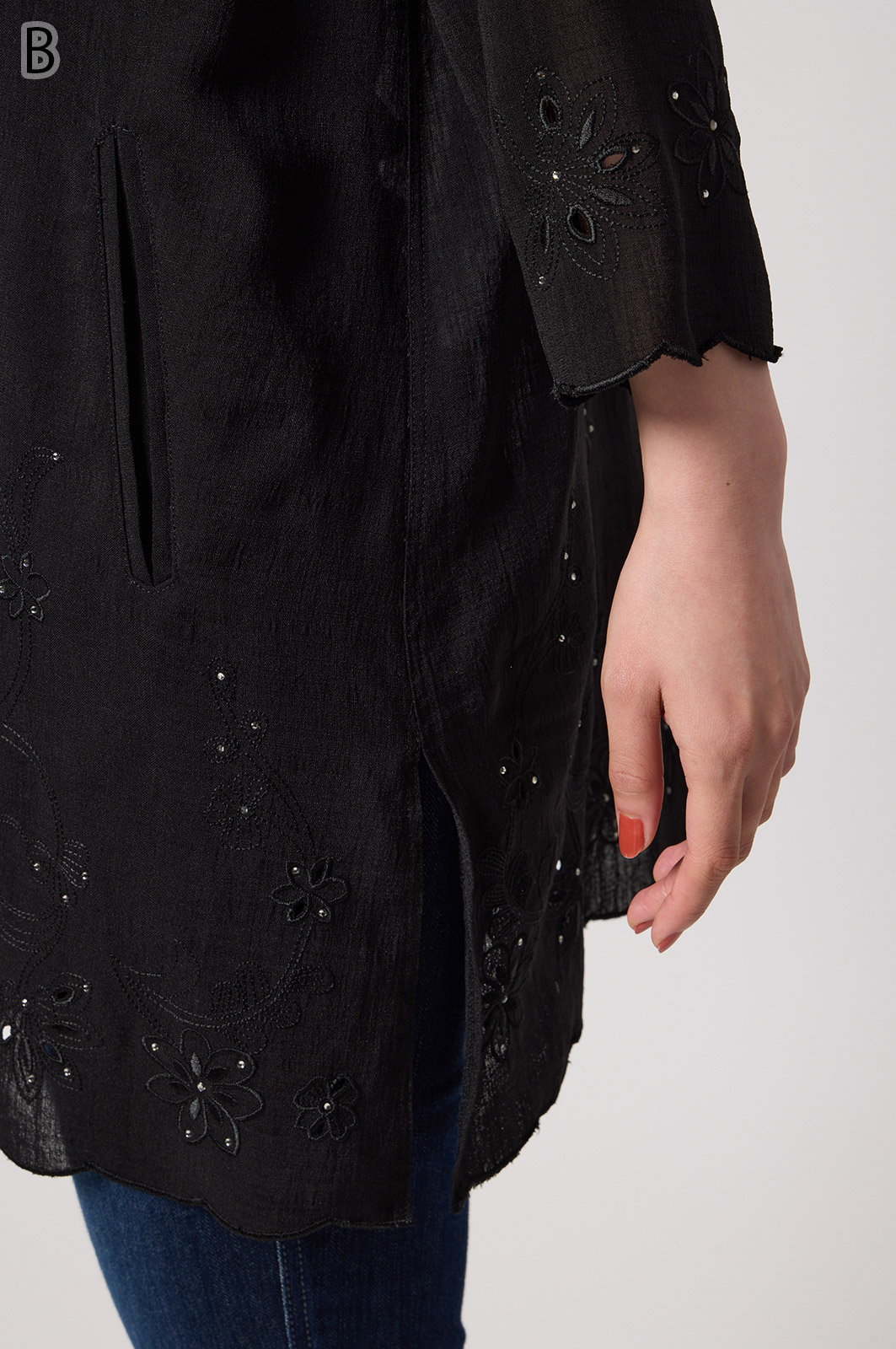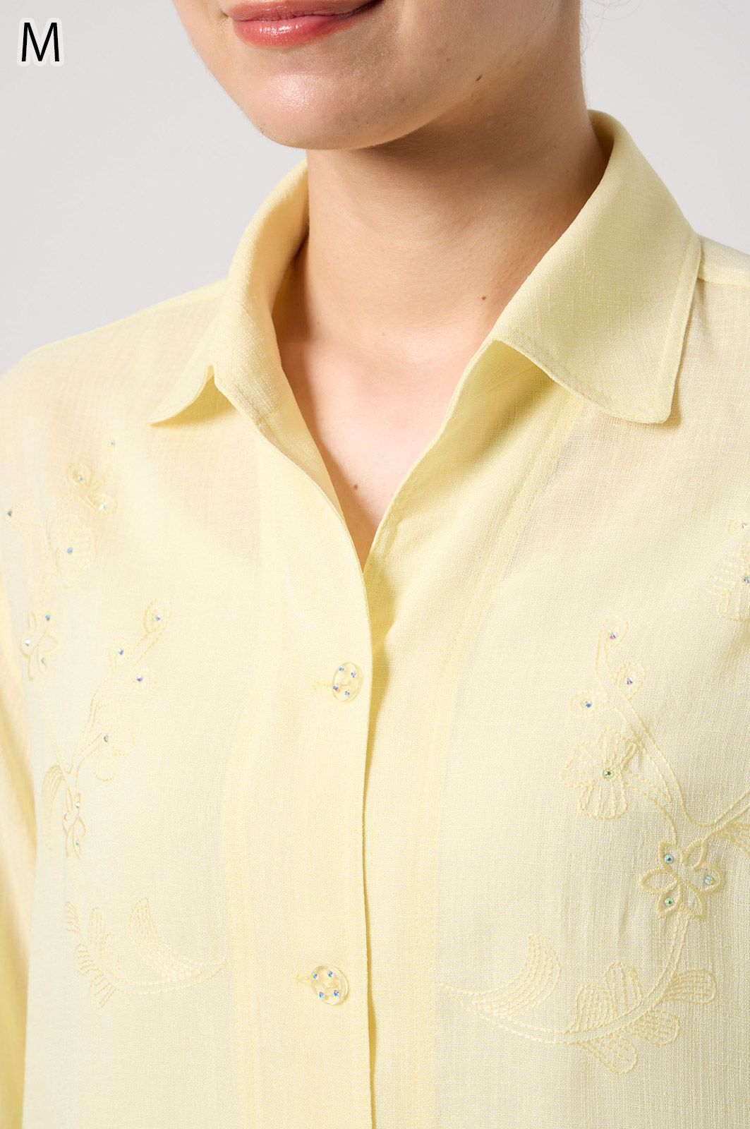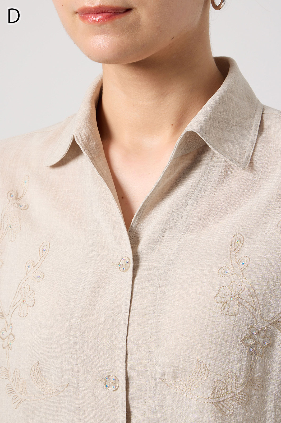 涼しげな風合いの生地に、上品な透かし刺しゅうをプラスした夏にぴったりの軽やか羽織りアイテムです。