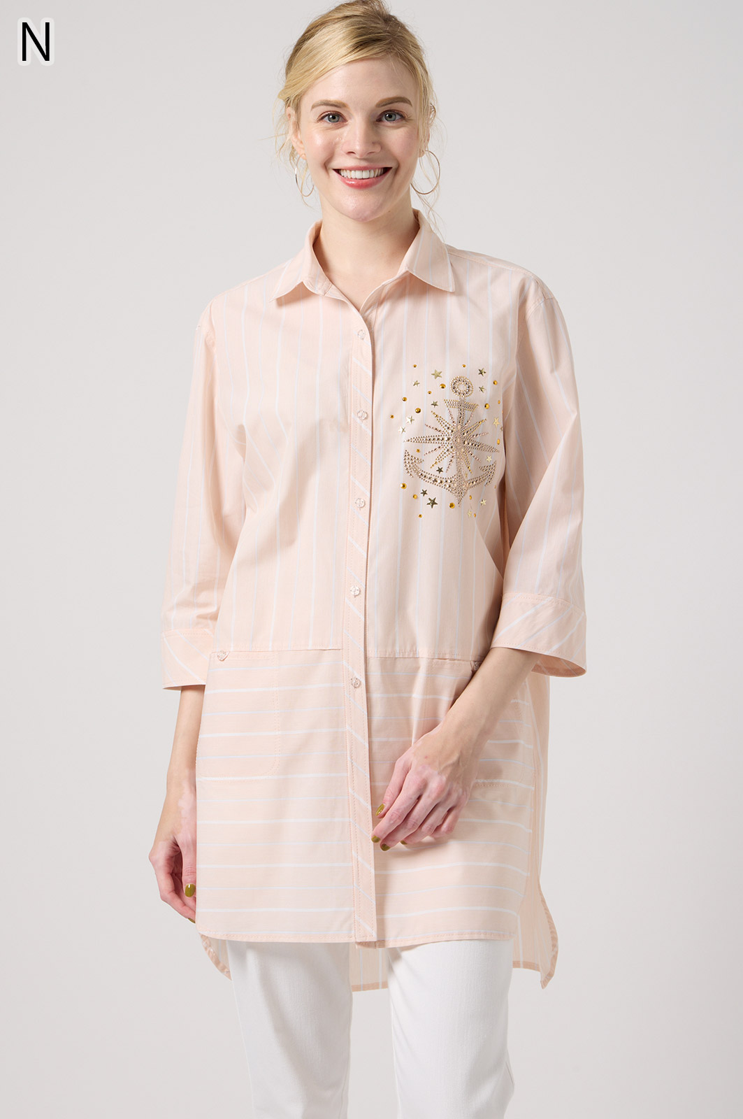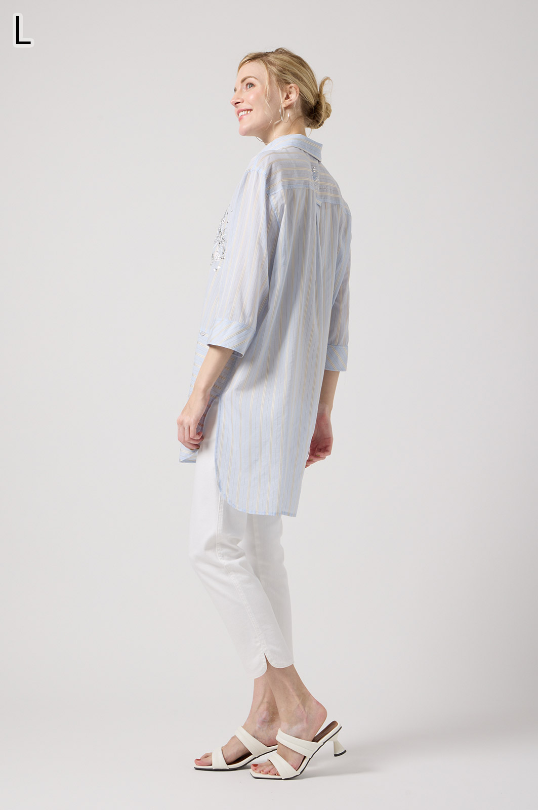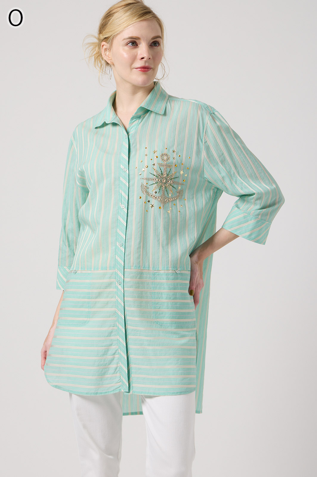 軽くて通気性のいい綿混素材で、夏に羽織れるシャツタイプのアイテム。ジャケット代わりにも使えて、ちょっとした外出にも便利。ポケット付きで実用性もバッチリ!