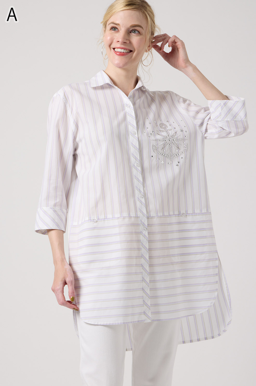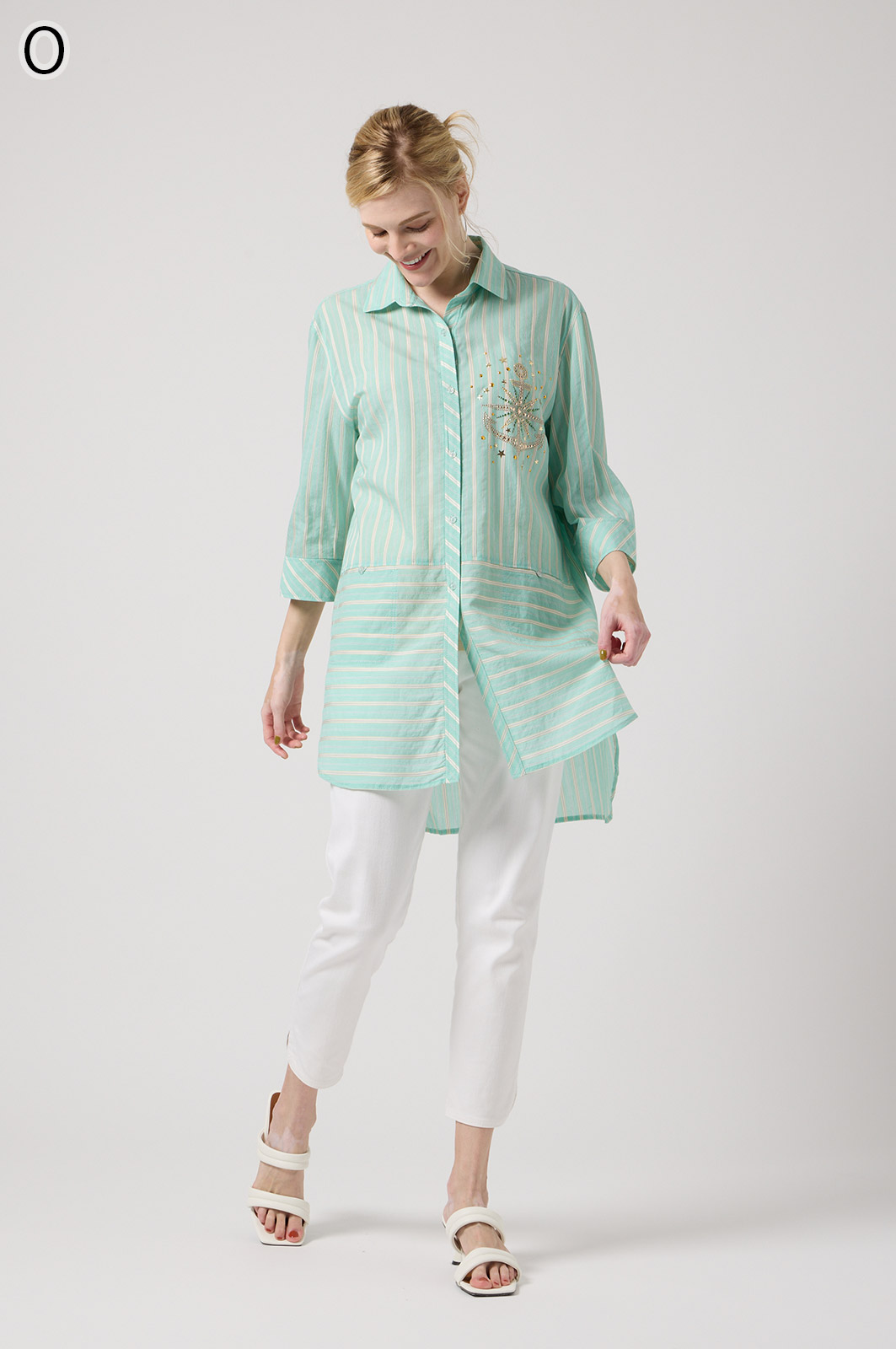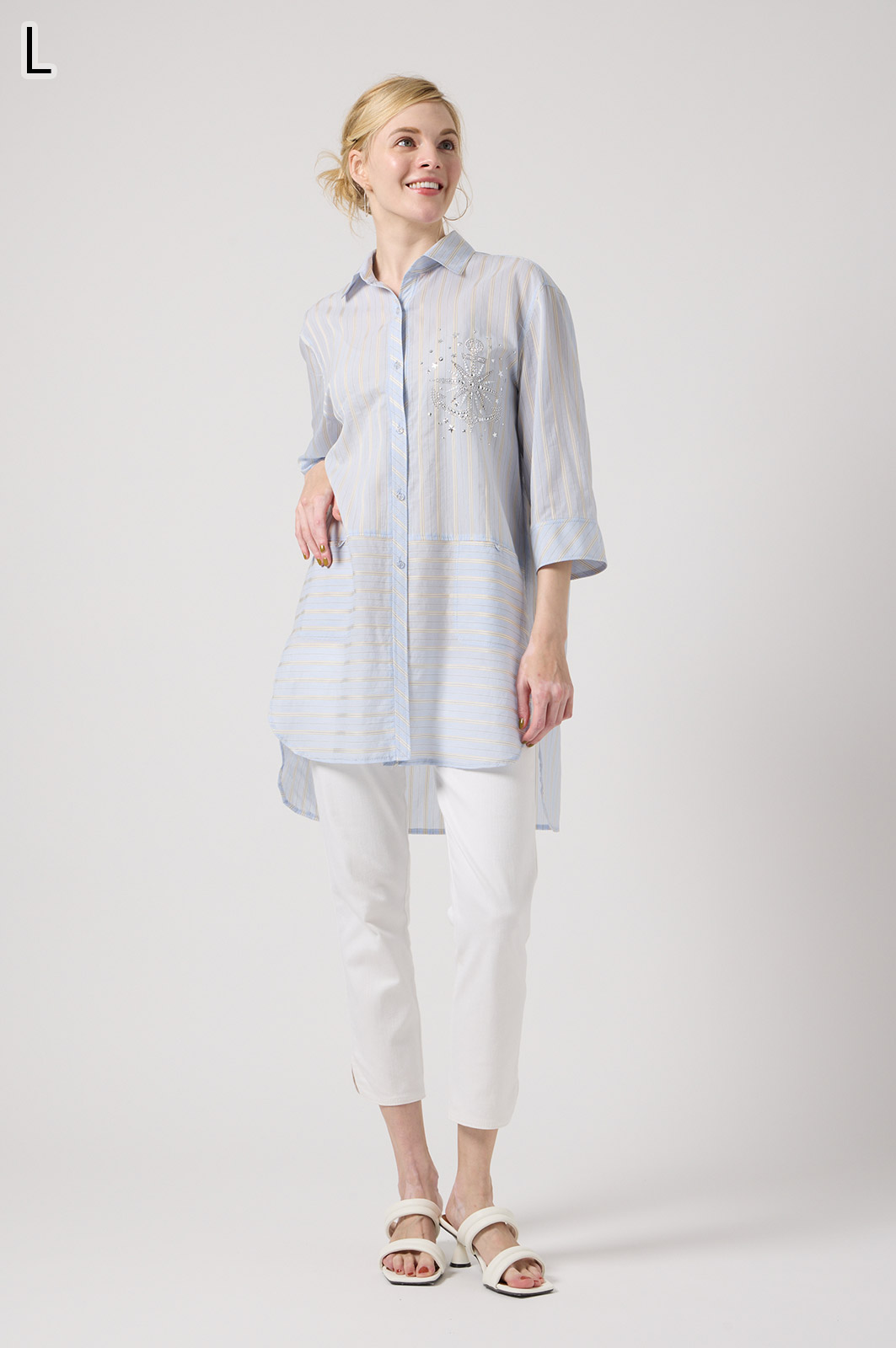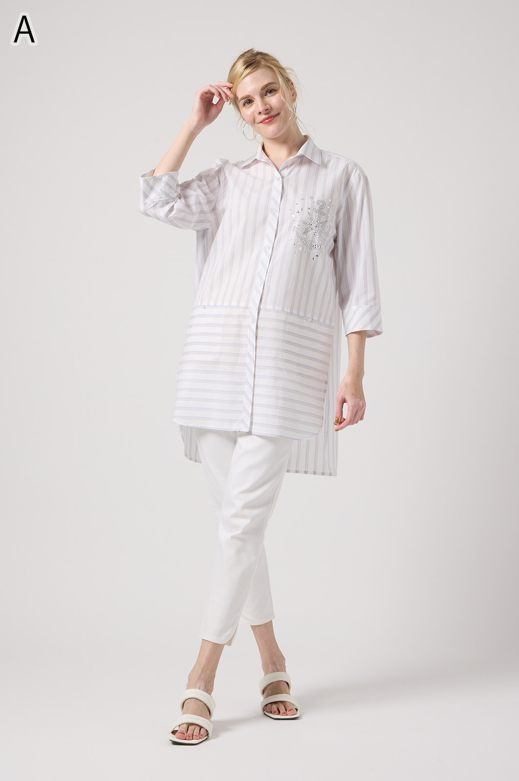 軽くて通気性のいい綿混素材で、夏に羽織れるシャツタイプのアイテム。ジャケット代わりにも使えて、ちょっとした外出にも便利。ポケット付きで実用性もバッチリ!