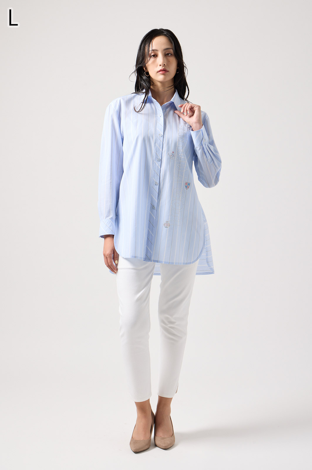 やわらかく肌なじみの良い綿とキュプラの混合素材を使用したシャツ。軽く羽織れるデザインで、季節を問わずコーデに取り入れやすい万能アイテムです。