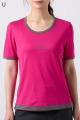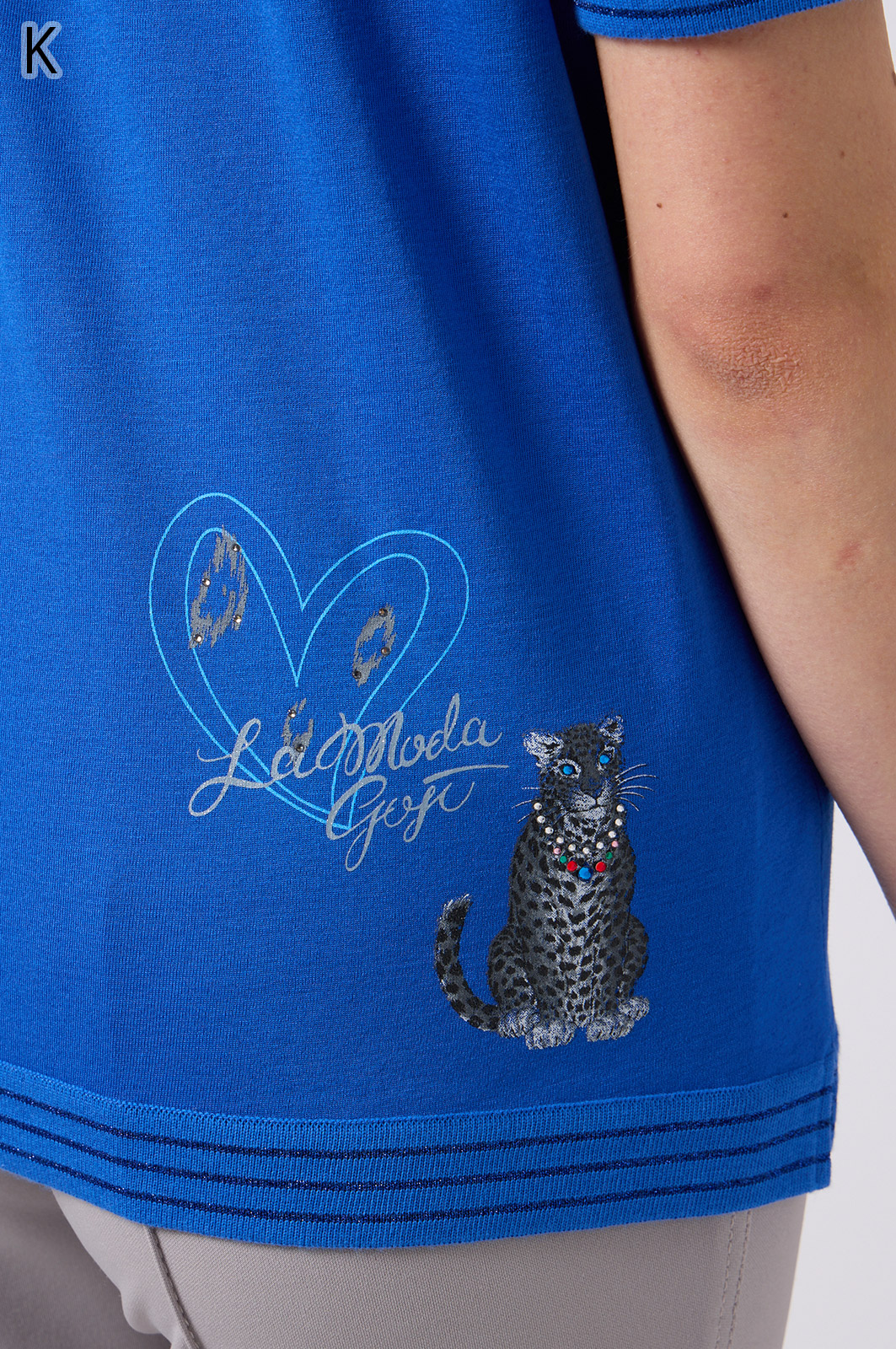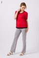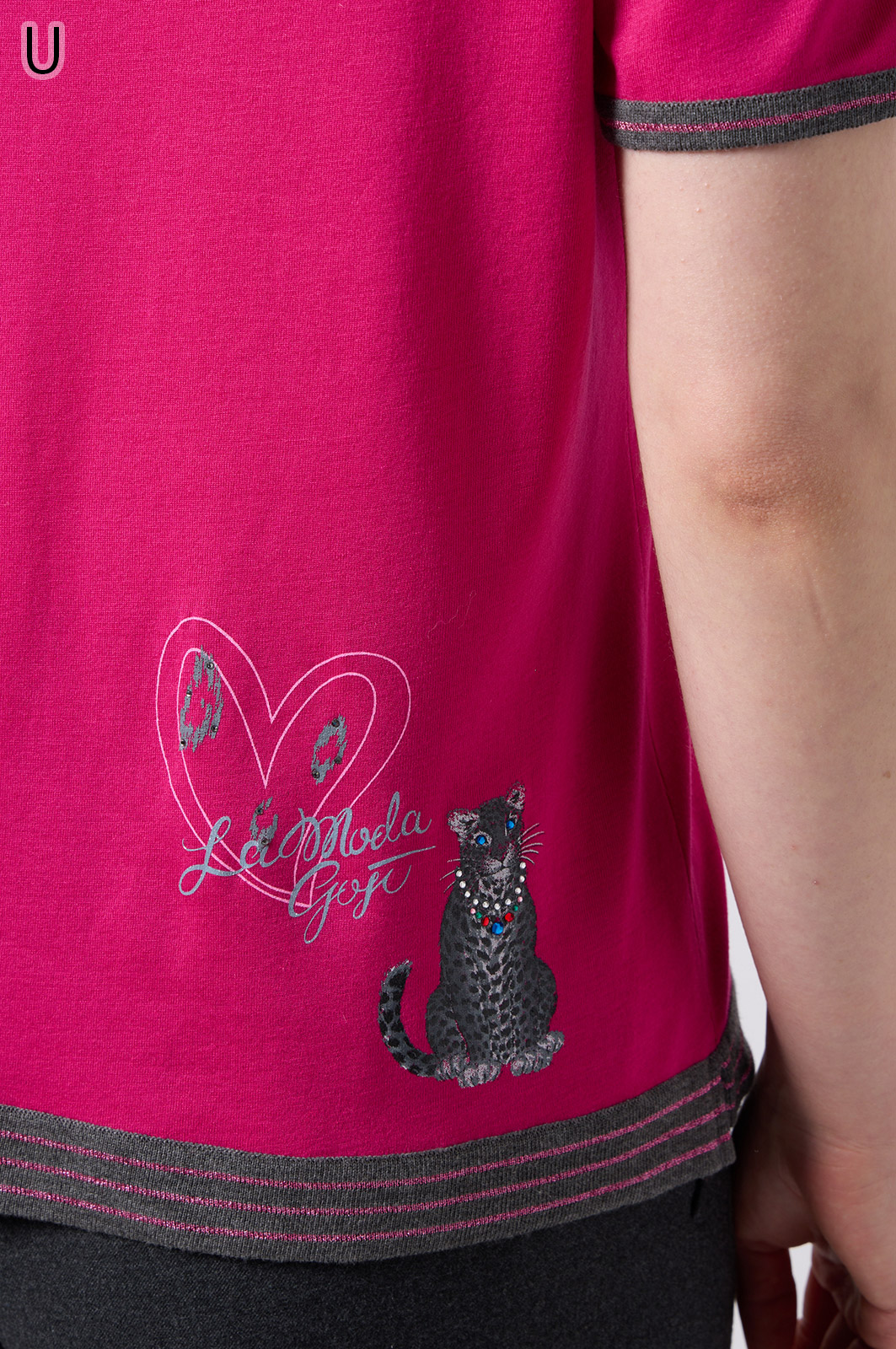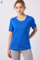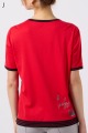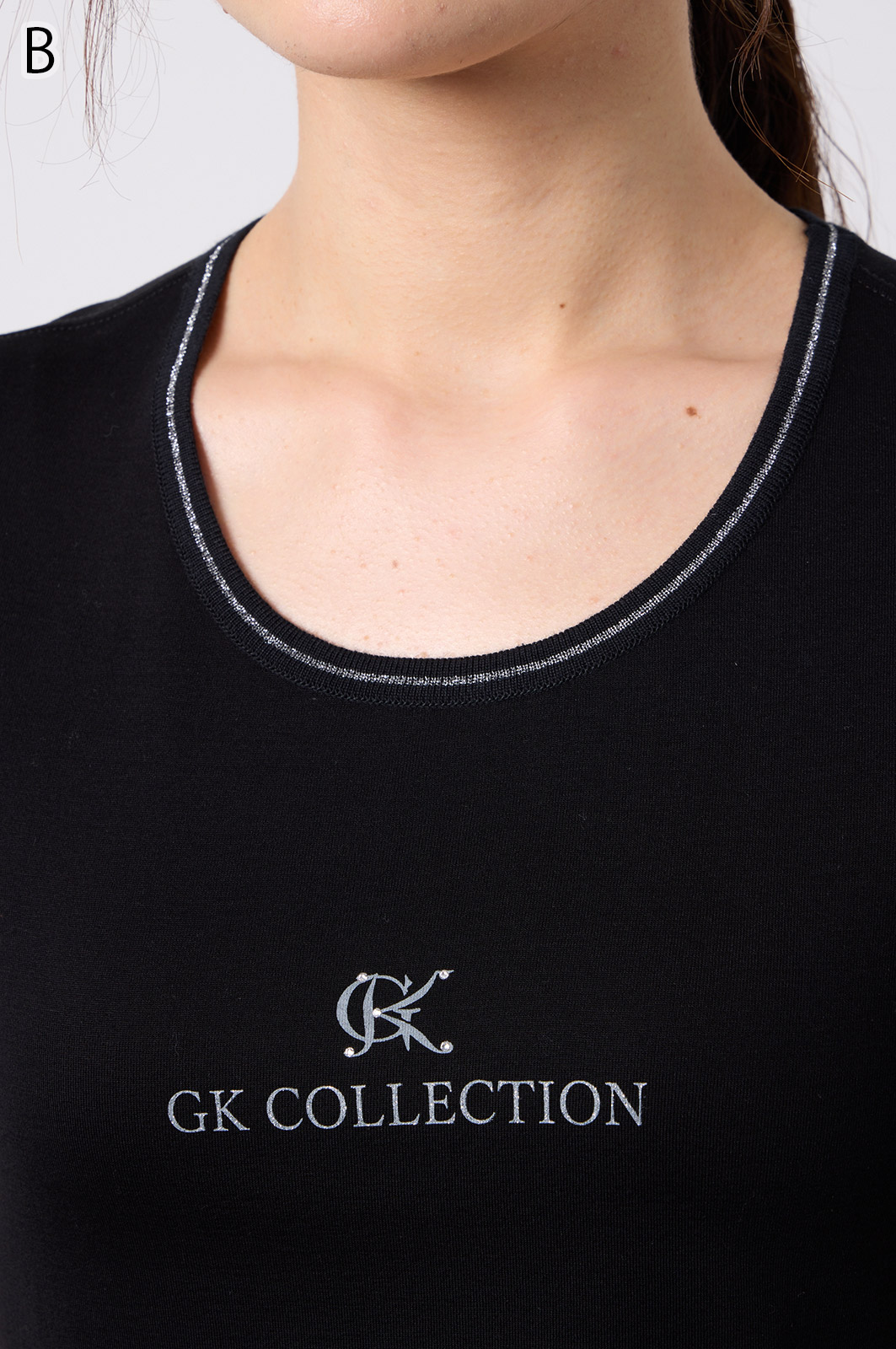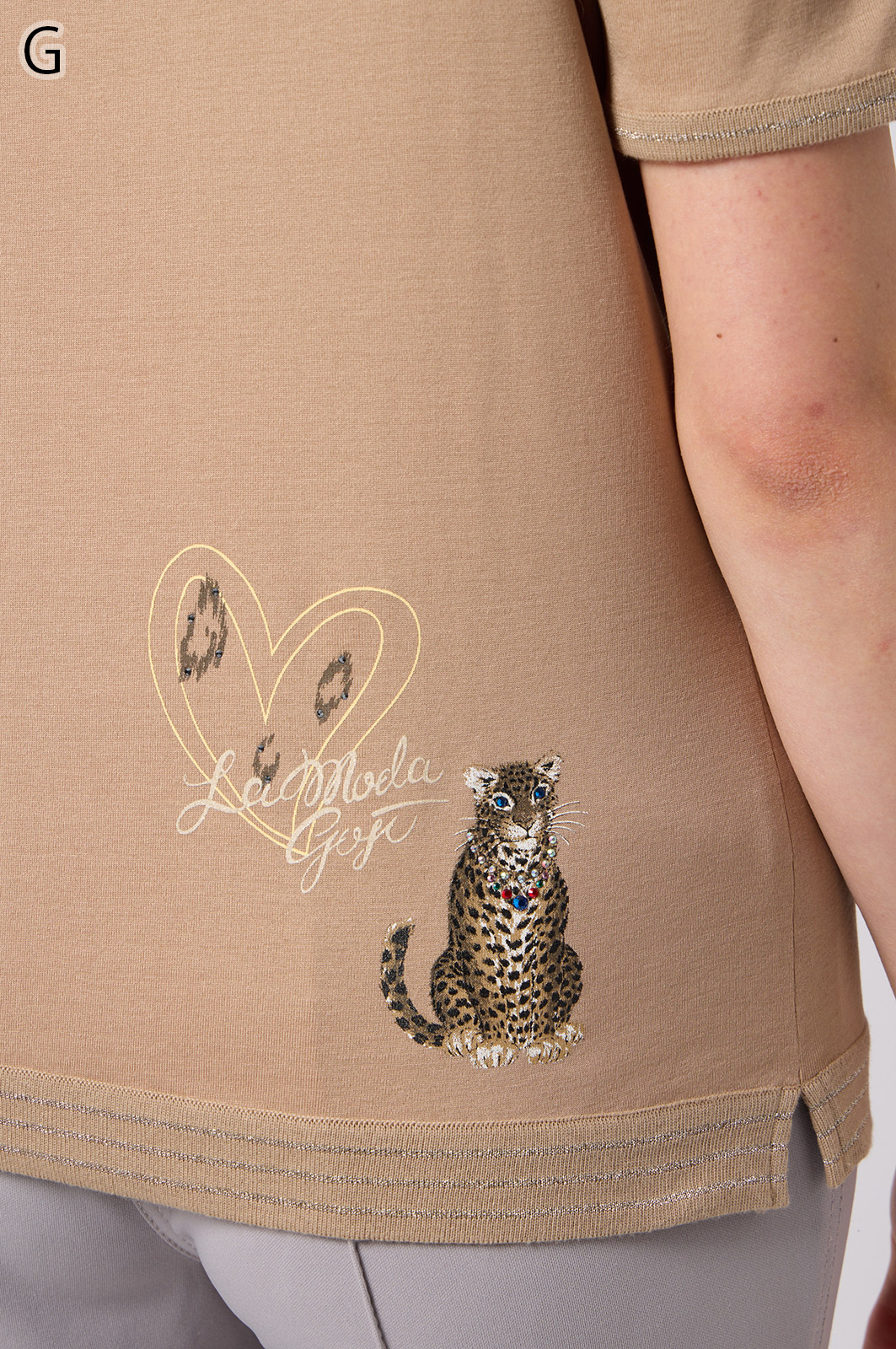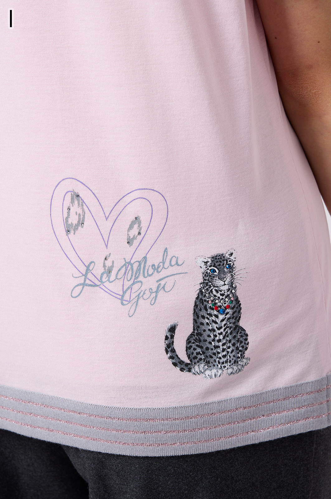 すっきり着られるストレートな形の半袖Tシャツ。首元や袖、すそには綿素材にラメをプラスした縁取り付きで、きらっと上品な仕上がり。