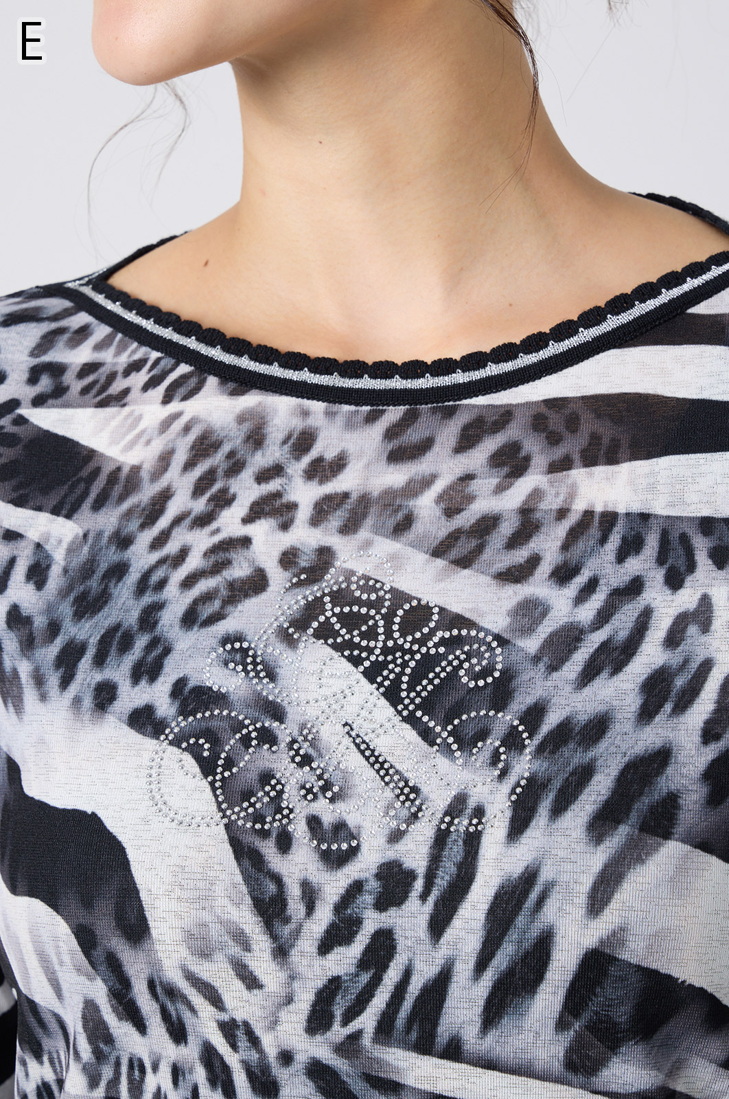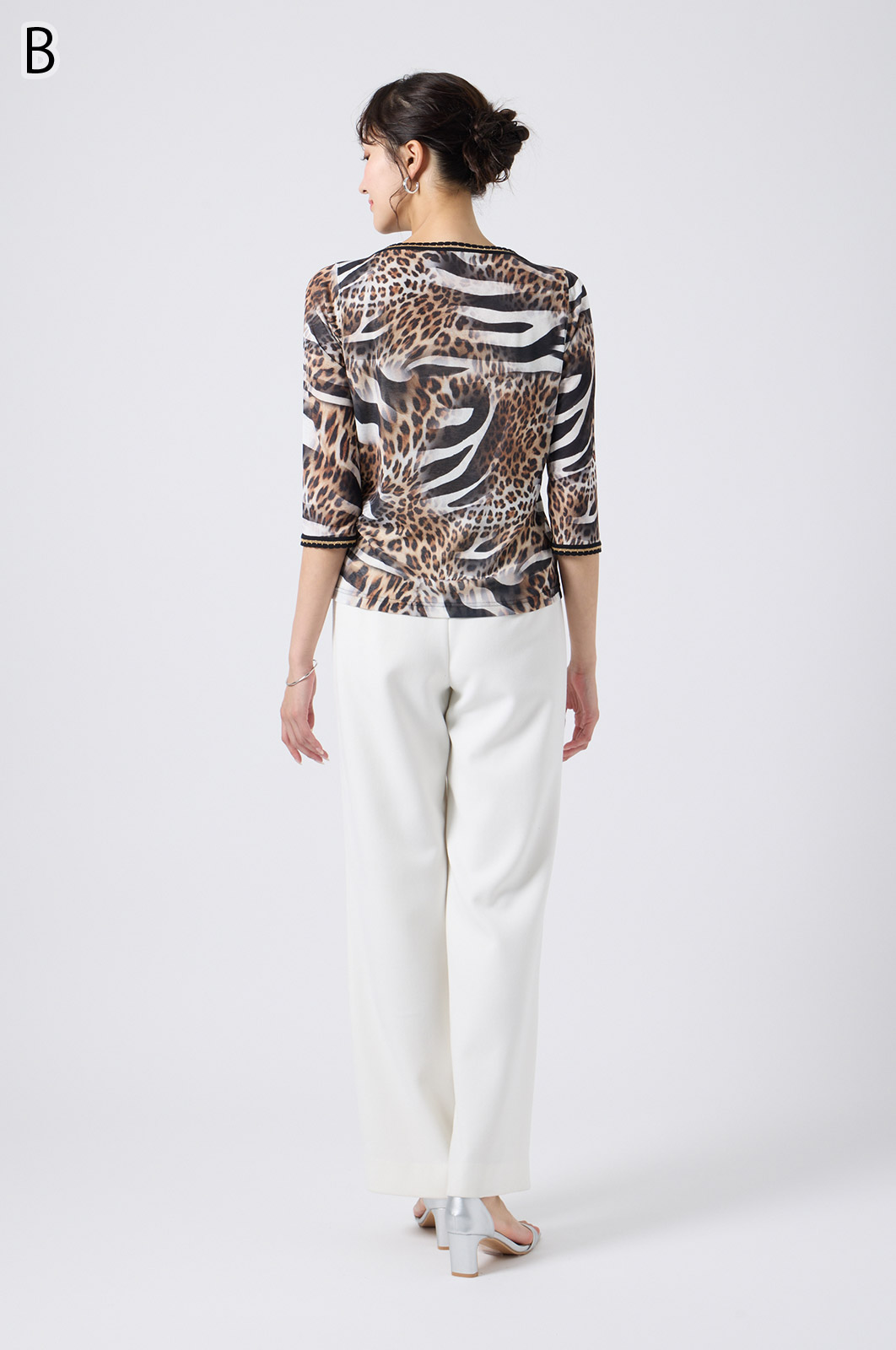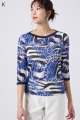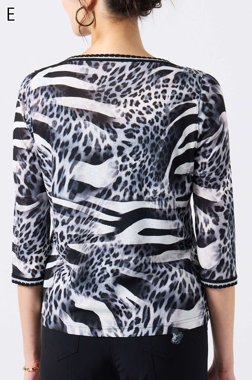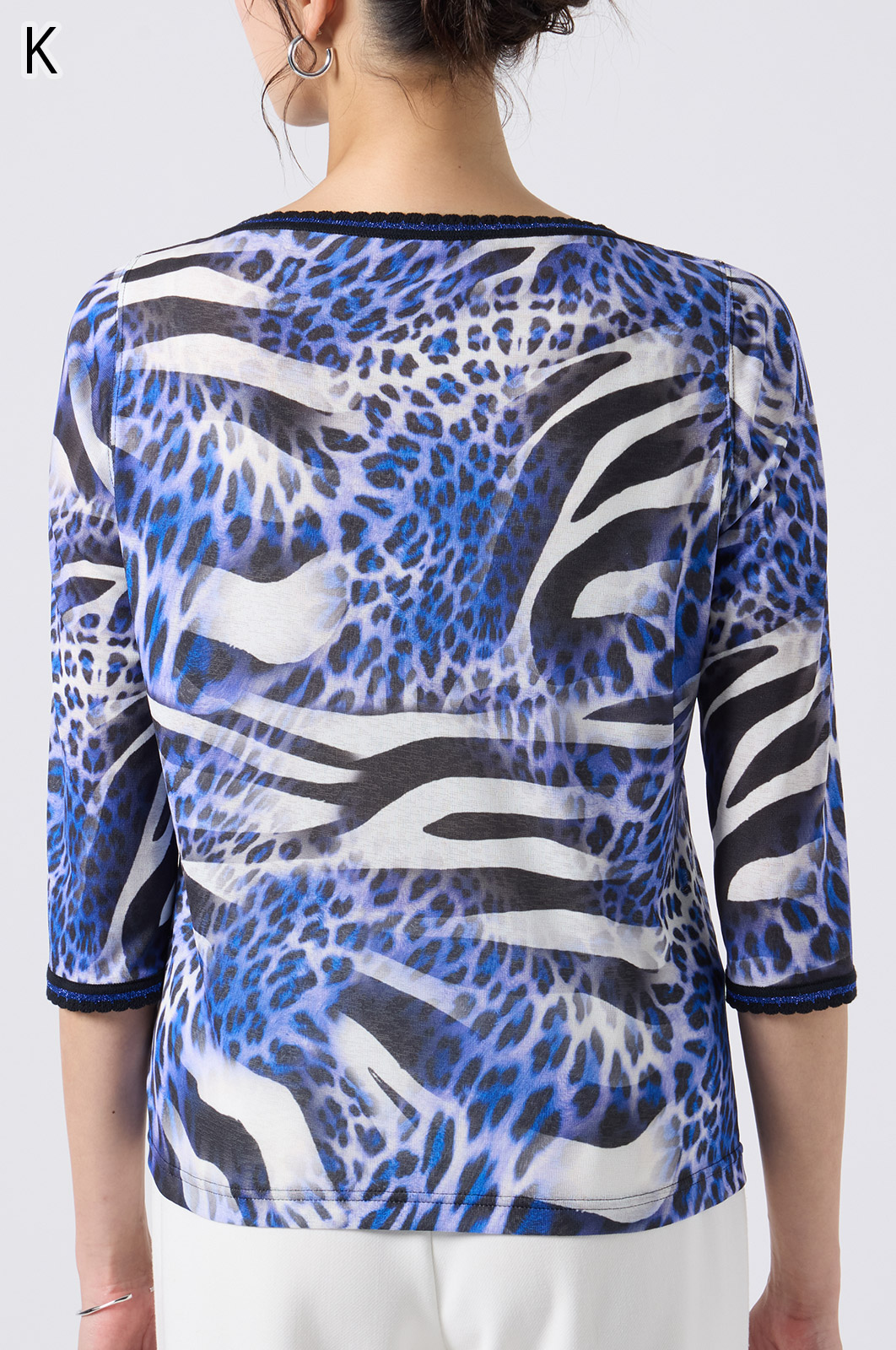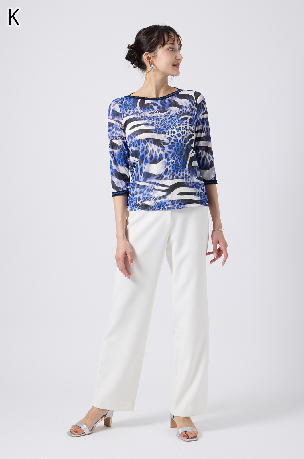 爽やかな着心地と遊び心あるアニマル柄が魅力♪首元がきれいに見えるボートネックと、すっきり見せる七分袖で大人カジュアルにぴったりのTシャツです。