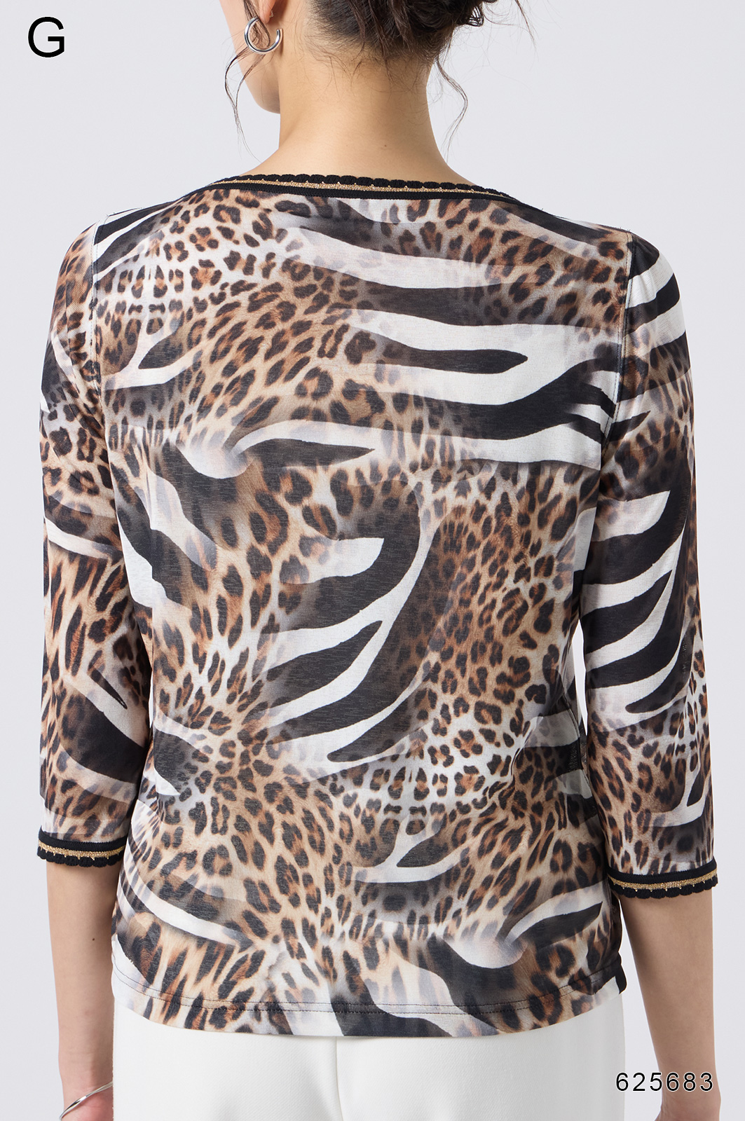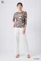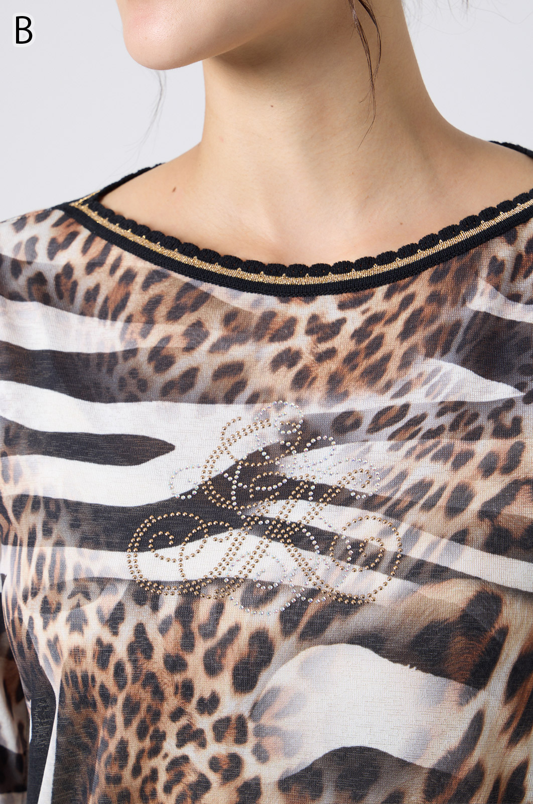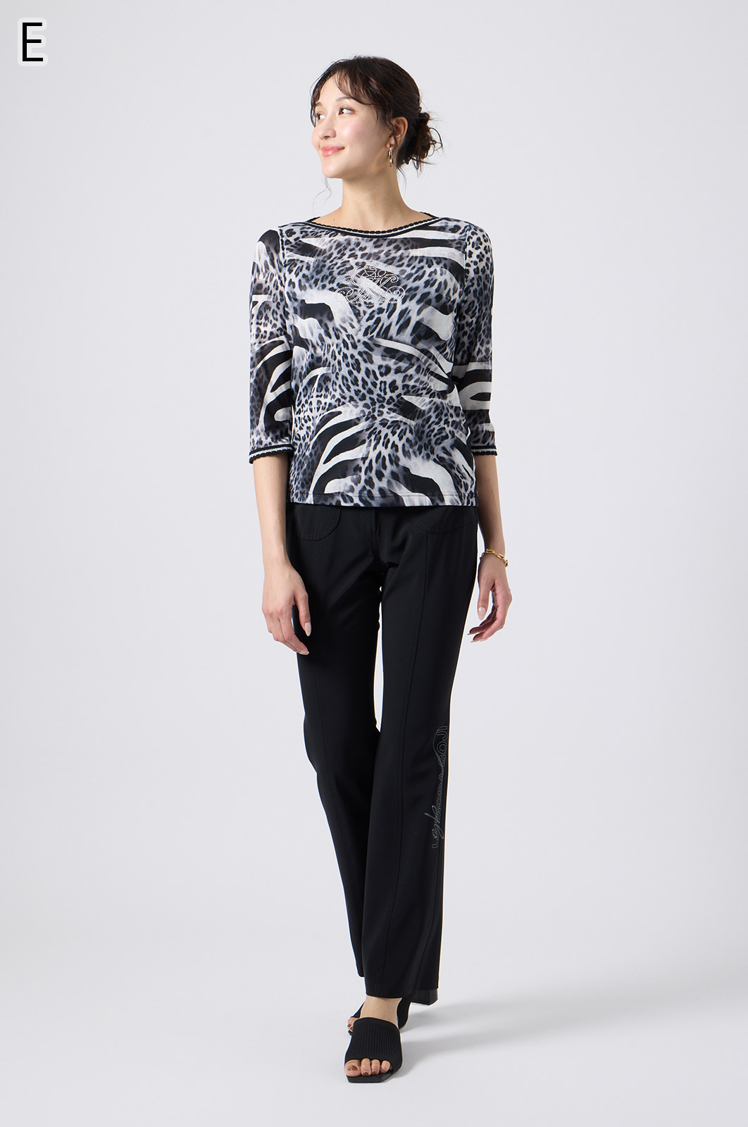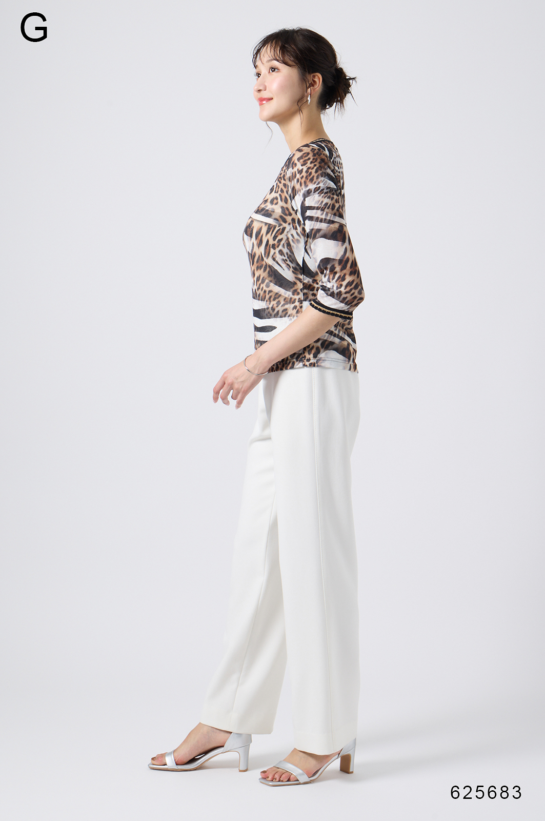 爽やかな着心地と遊び心あるアニマル柄が魅力♪首元がきれいに見えるボートネックと、すっきり見せる七分袖で大人カジュアルにぴったりのTシャツです。