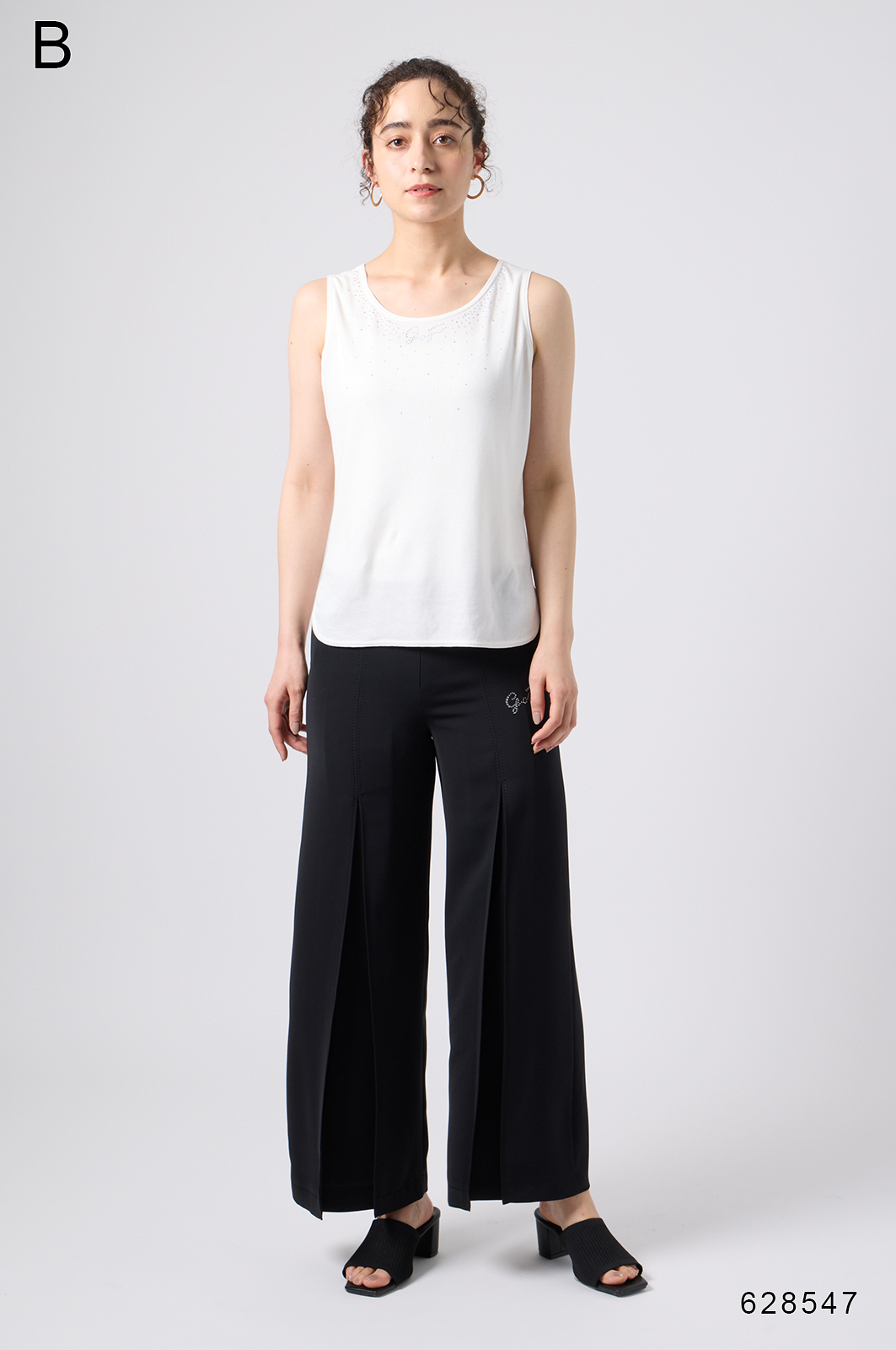 歩くたびにふんわり広がる、軽やかな動きが魅力のパンツ。前に入った立体的な折り目が、上品で洗練された印象を引き立てます。