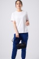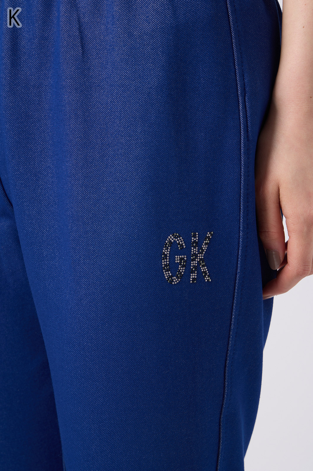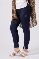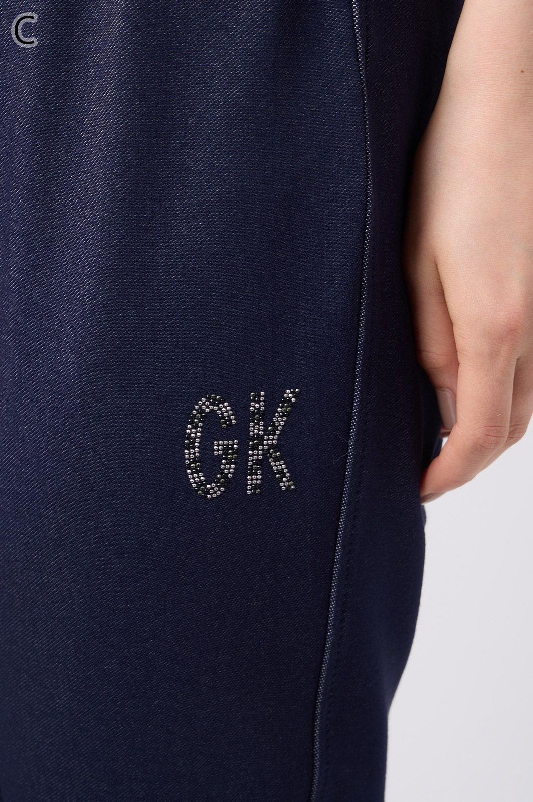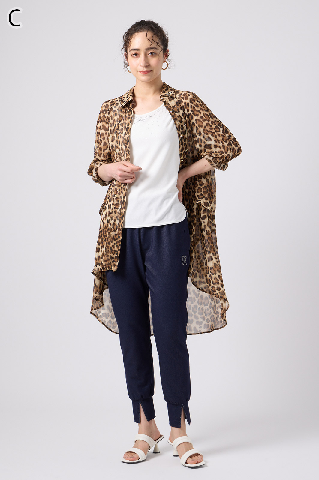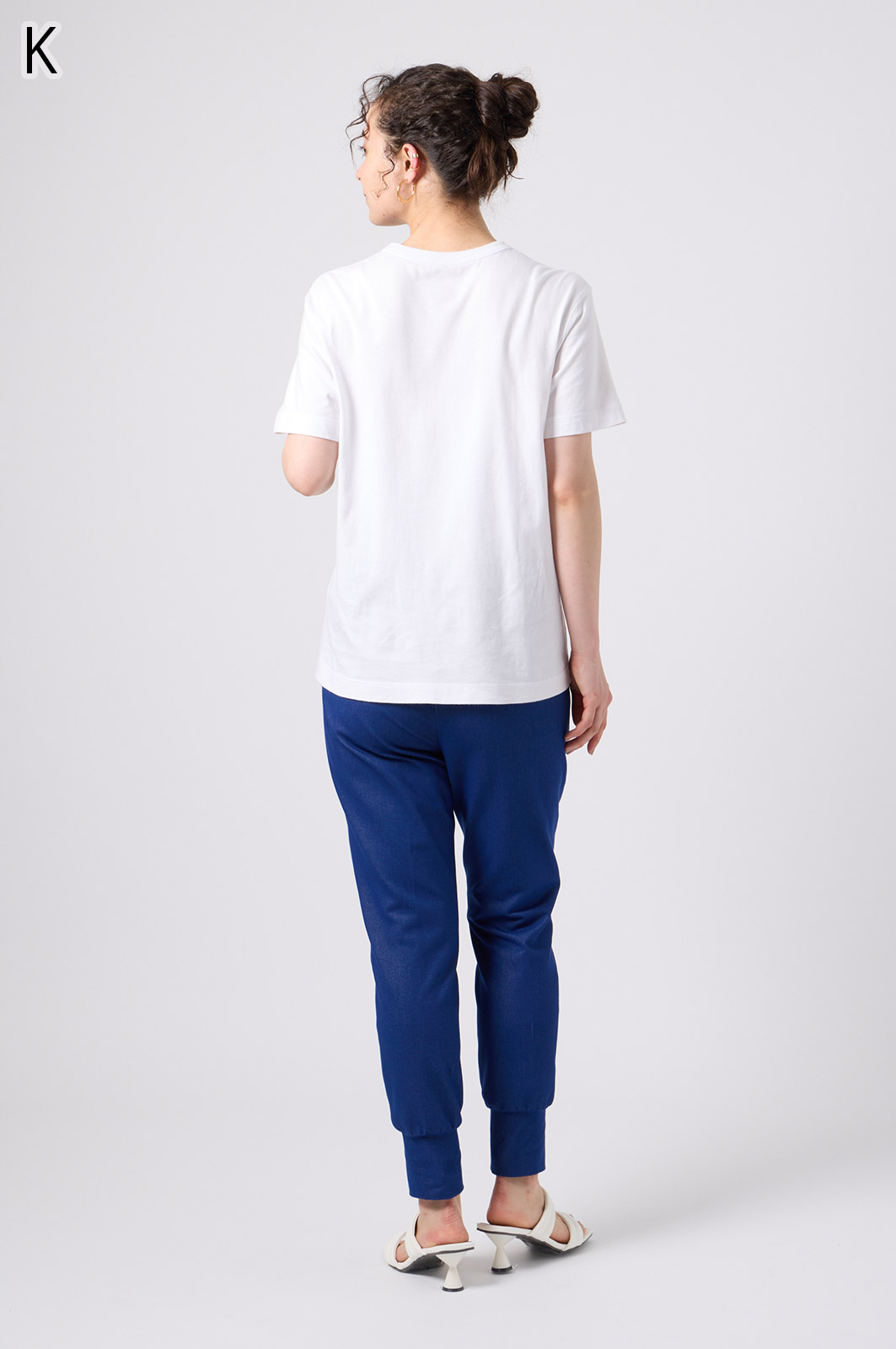 デニム風のやわらかストレッチ素材ではき心地ラクちん。ウエストはゴム仕様で着脱も簡単。裾のスリット入りデザインが足首をきれいに見せて、軽やかな印象をプラスします。