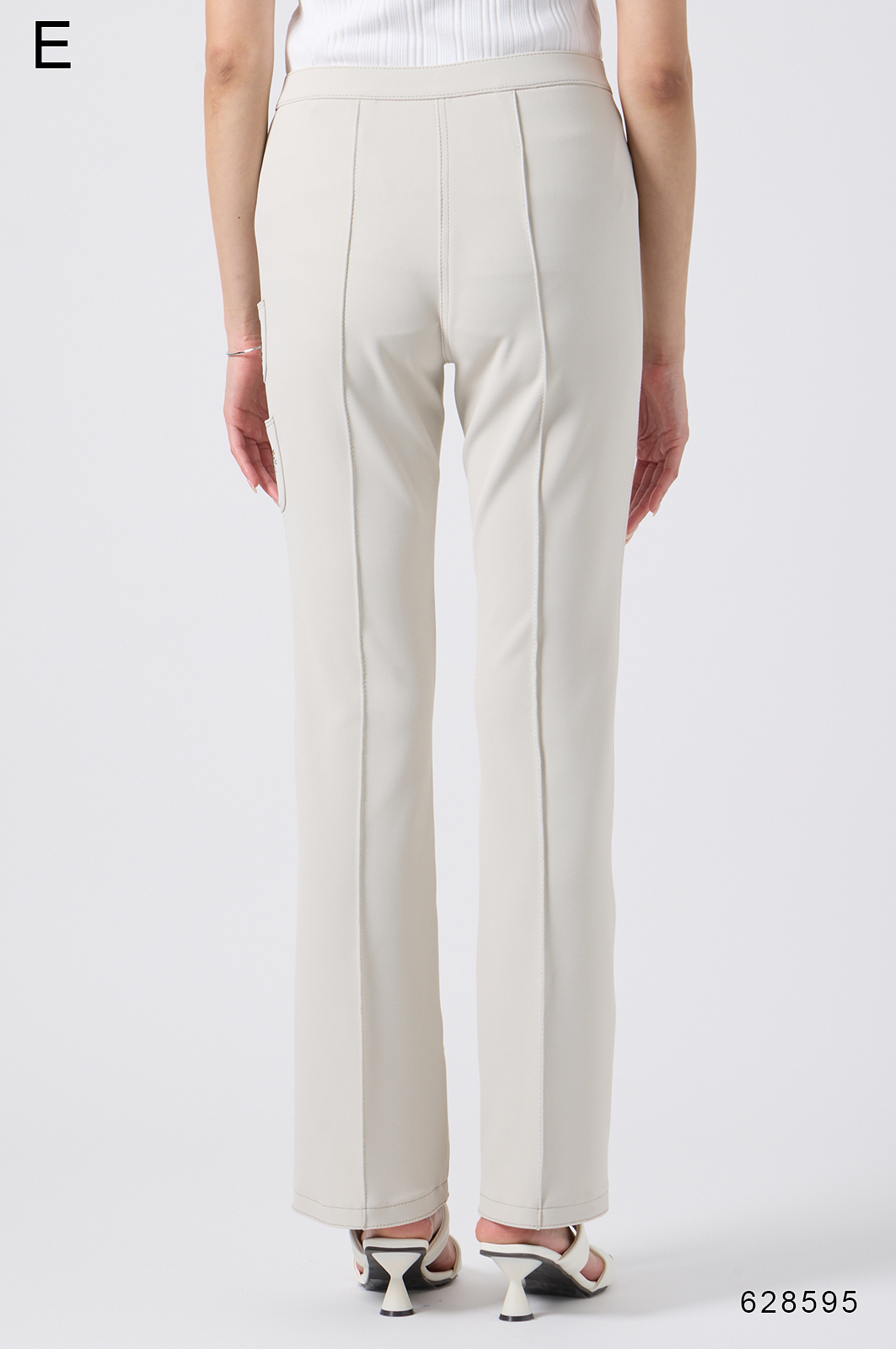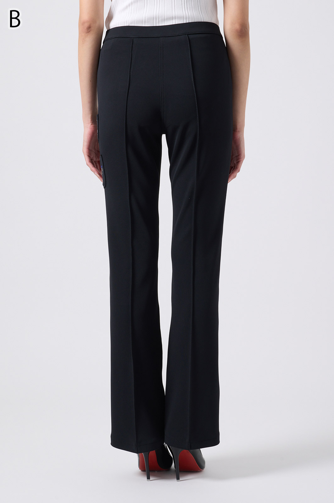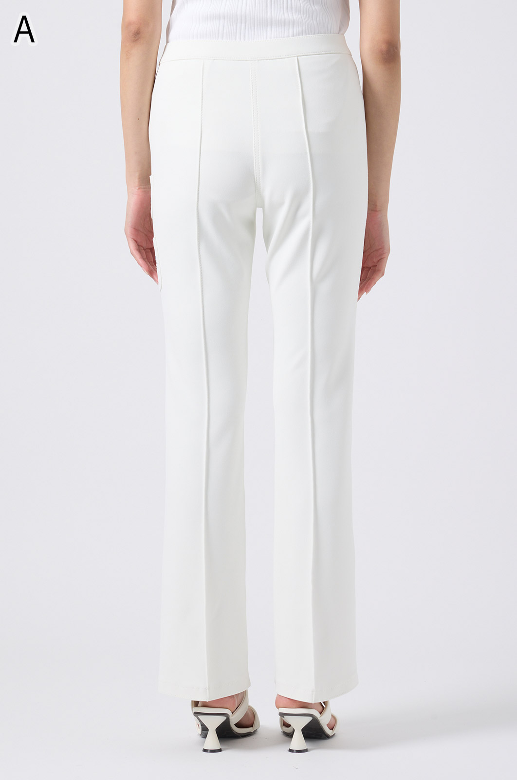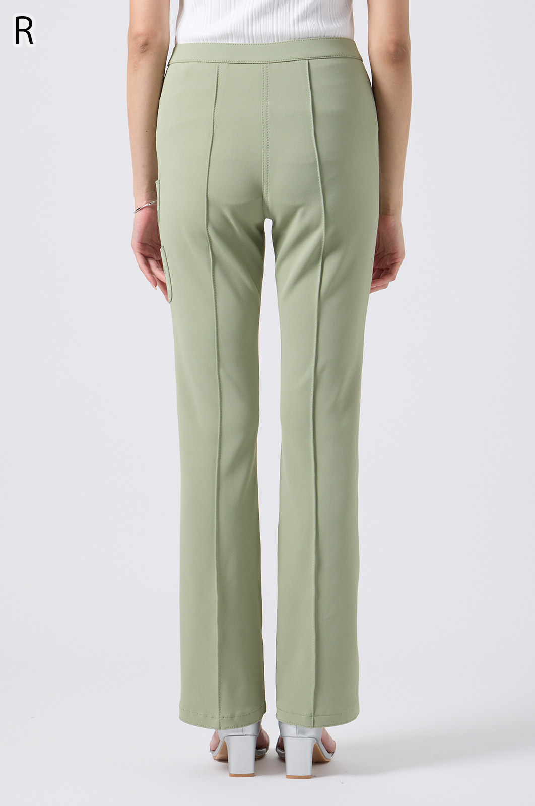 軽くて透けにくい生地でUV対策もOK。よく伸びてウエストゴムではき心地ラクラク♪前後のラインで脚長見えする美シルエットのブーツカットパンツです。