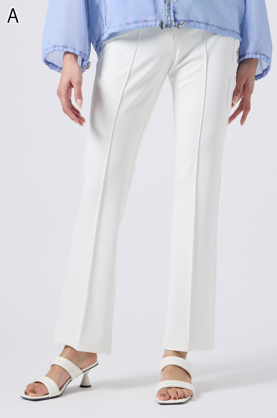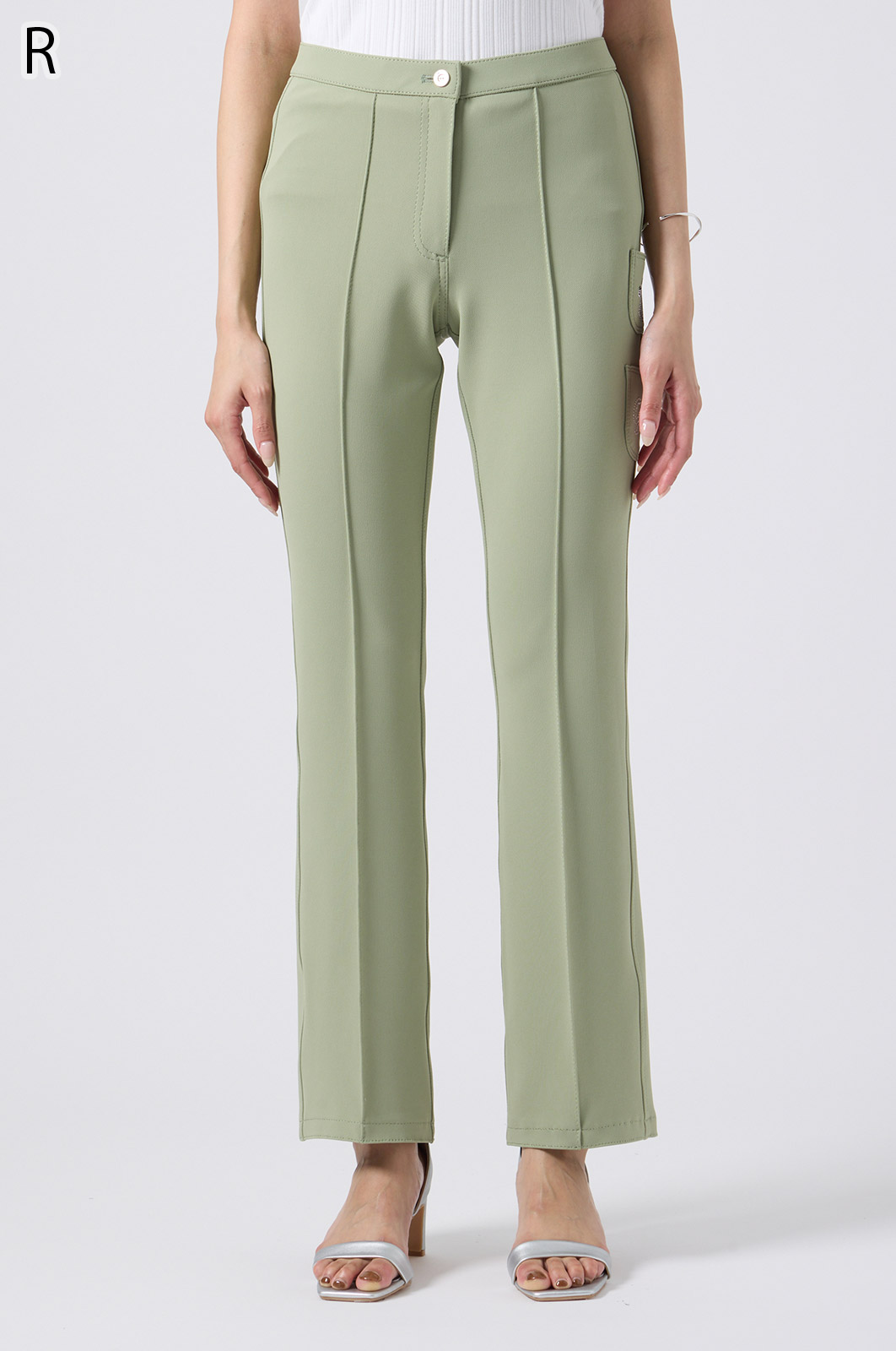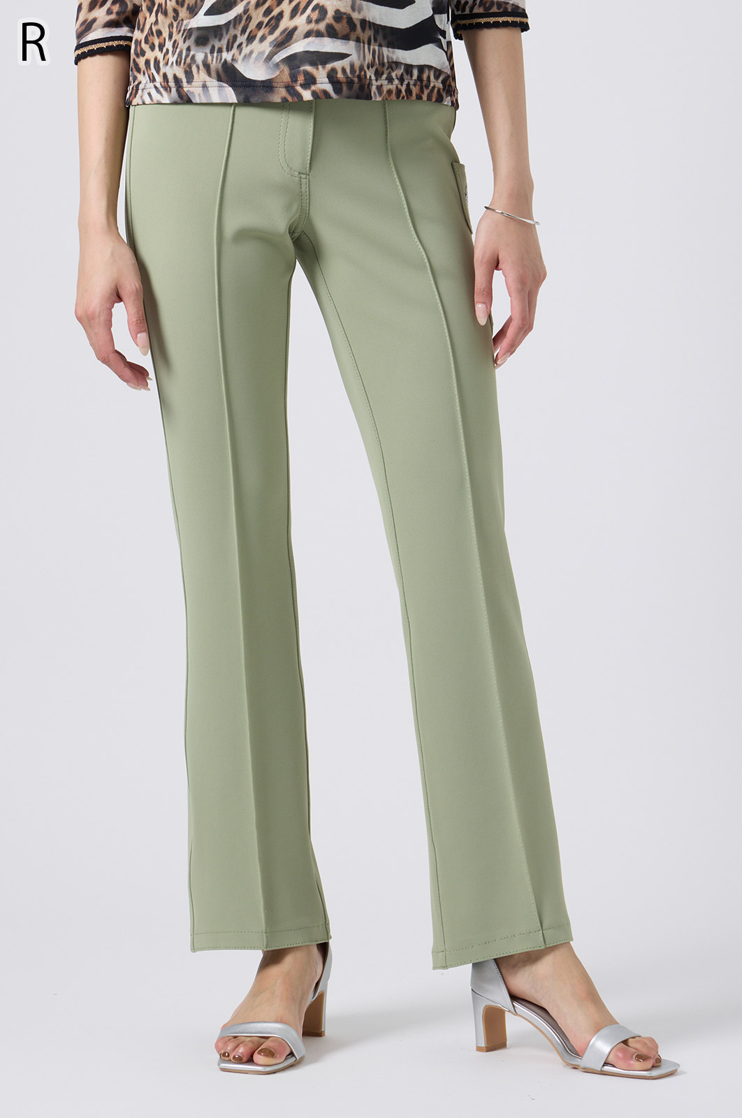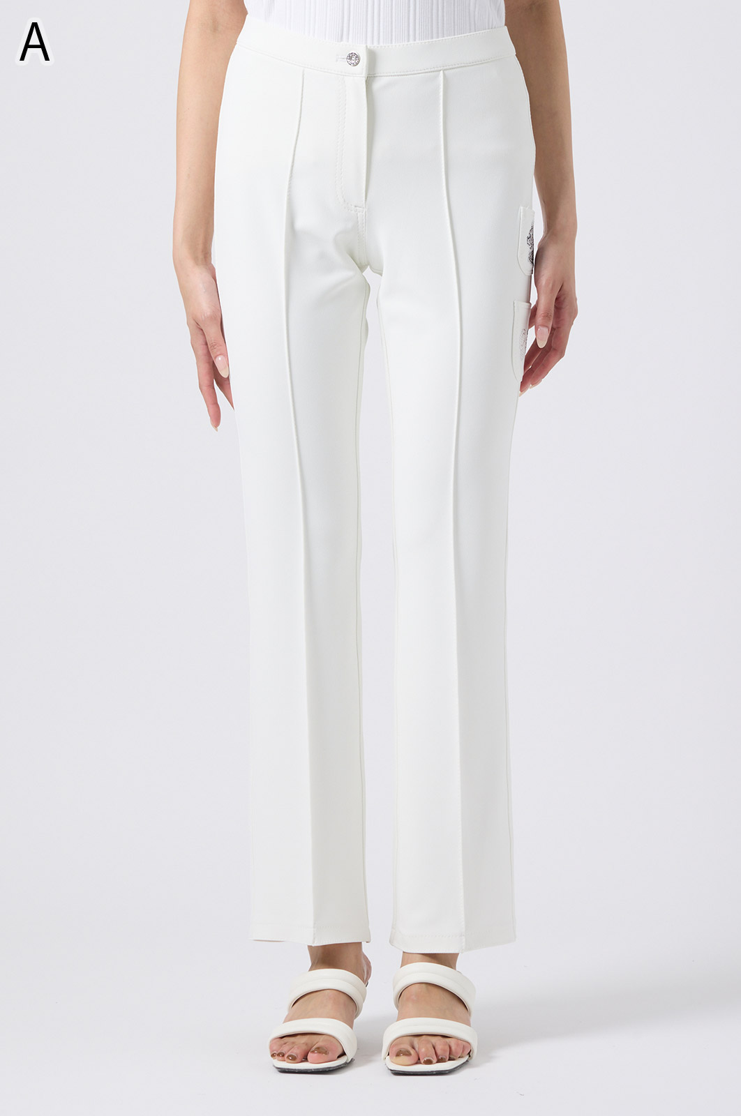 軽くて透けにくい生地でUV対策もOK。よく伸びてウエストゴムではき心地ラクラク♪前後のラインで脚長見えする美シルエットのブーツカットパンツです。