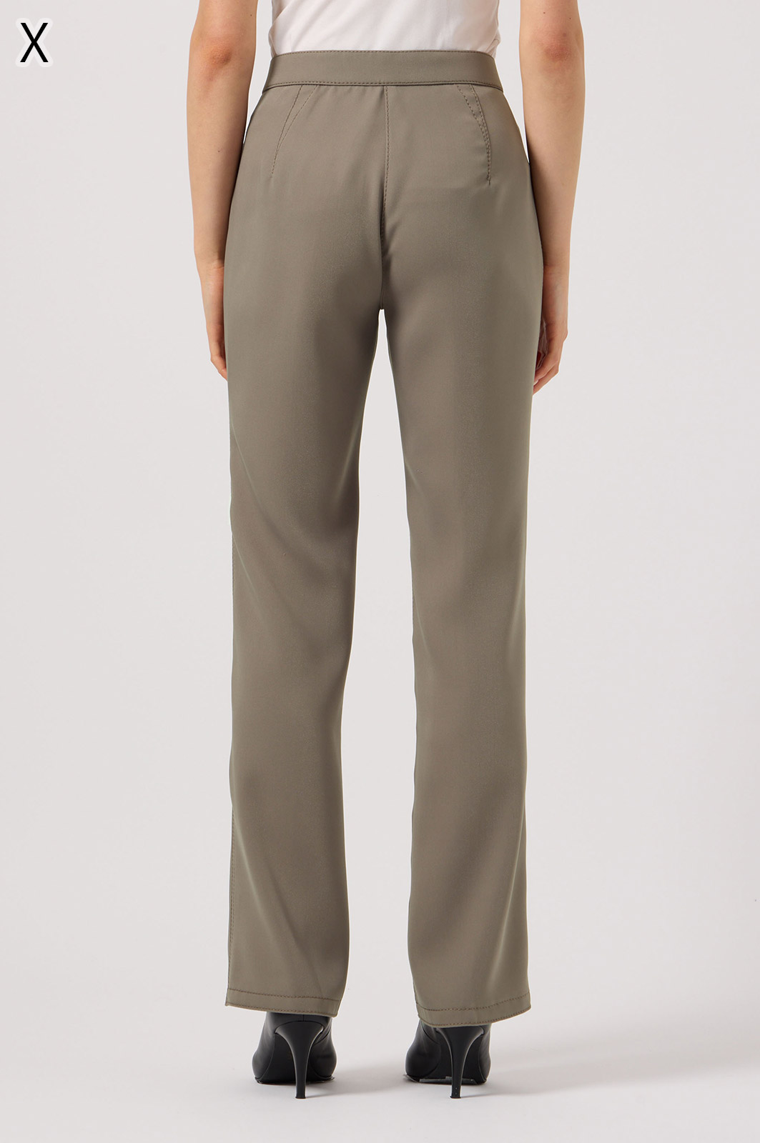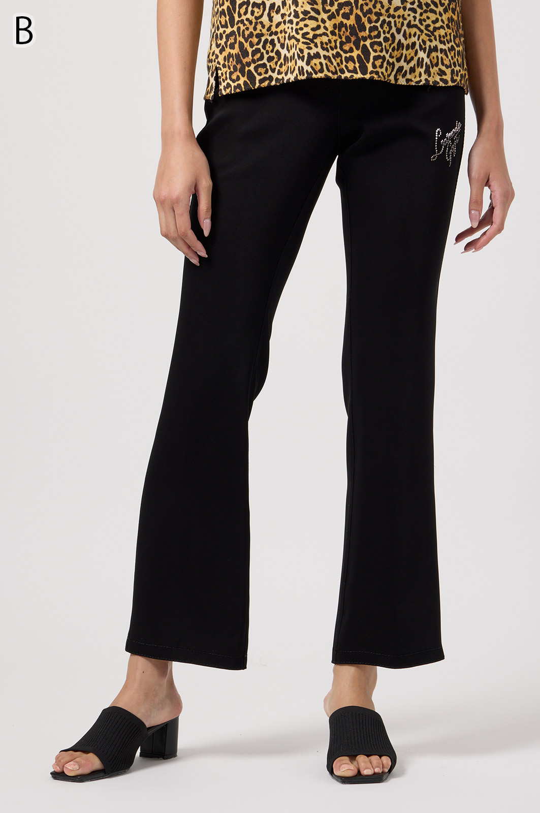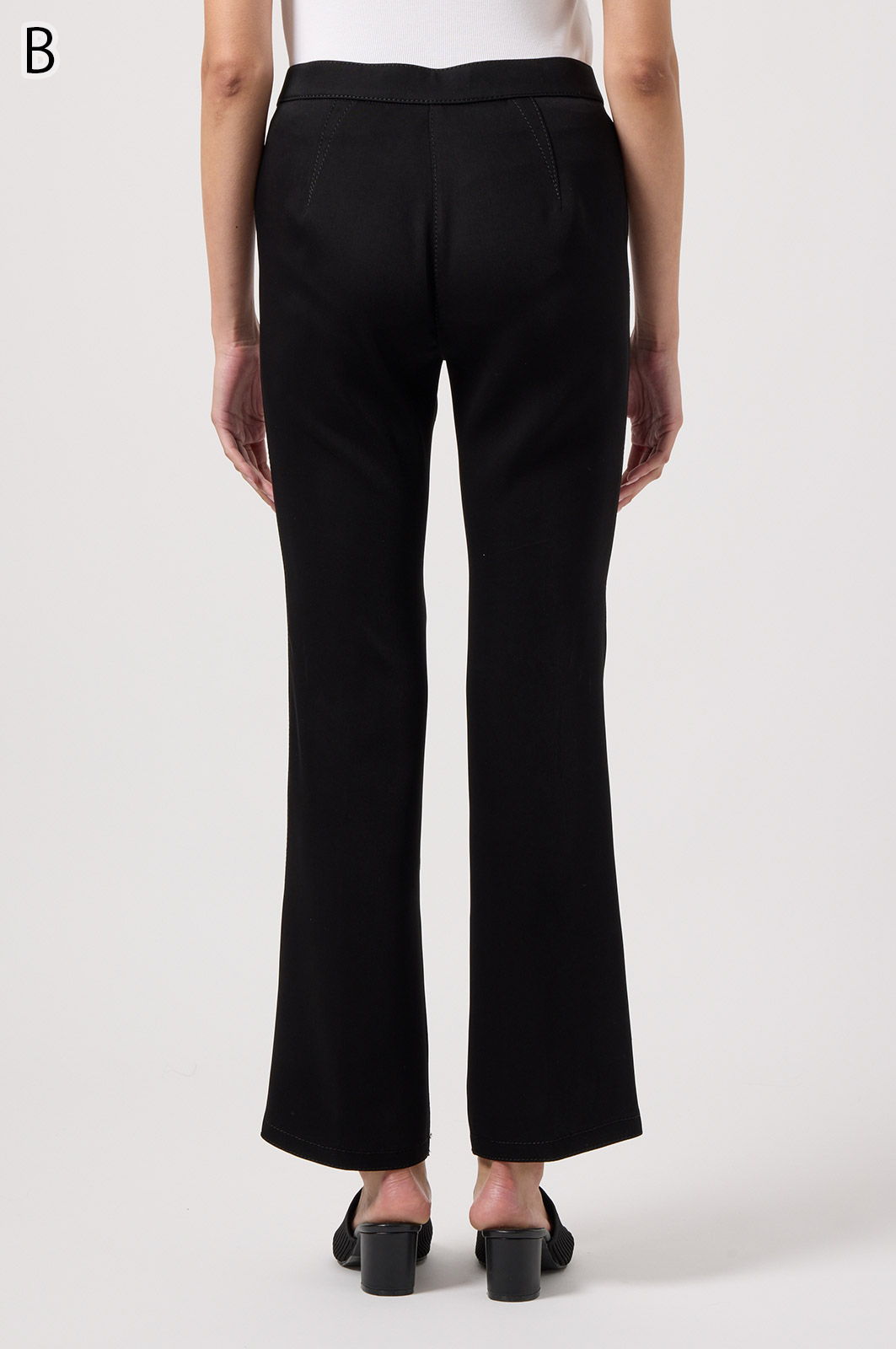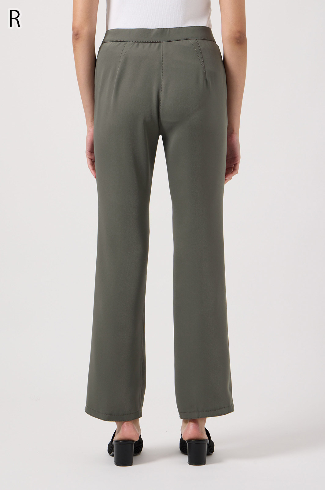 さらっとした肌ざわりでよく伸びる素材が心地よいパンツ。すとんと落ちるシルエットで脚をすっきり見せてくれるブーツカット。ウエストはゴム仕様でラクにはけるのも嬉しいポイント♪