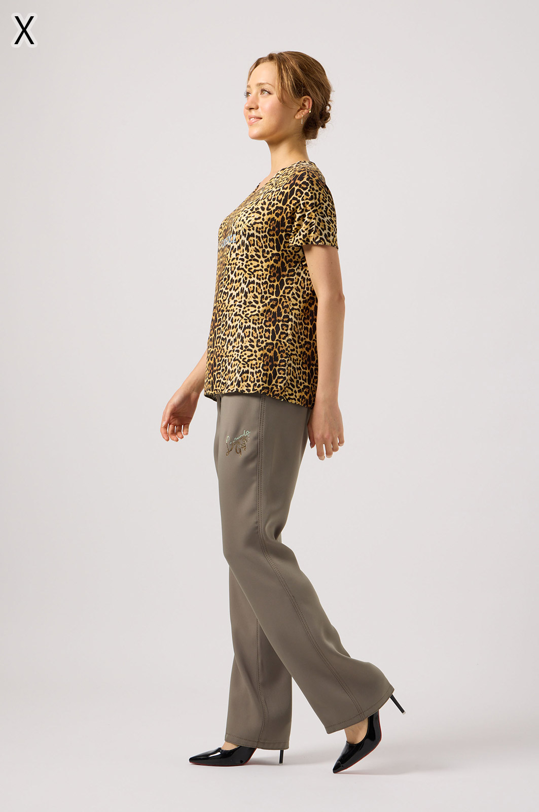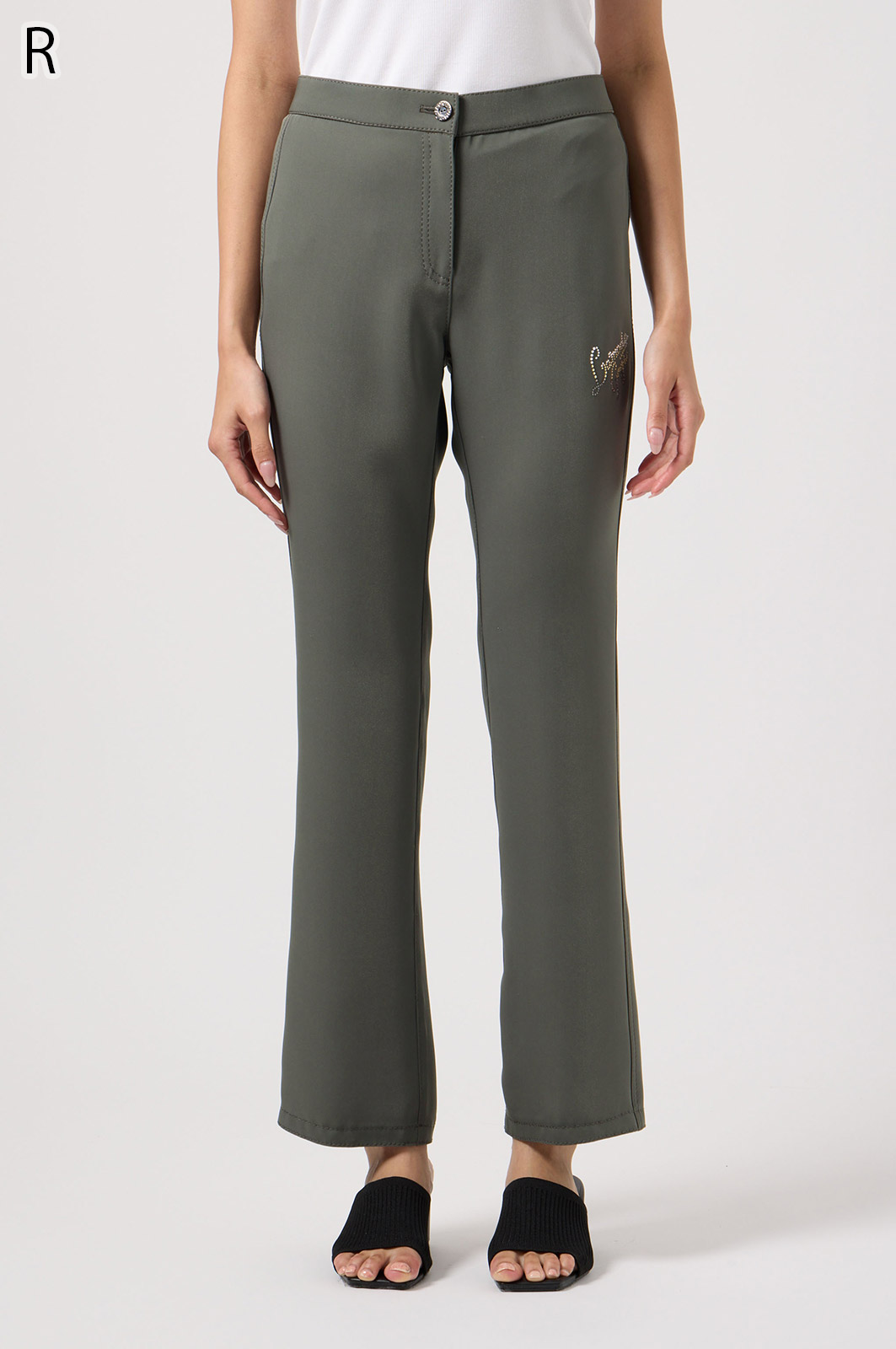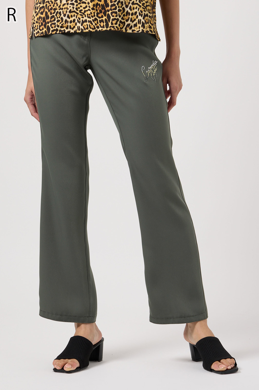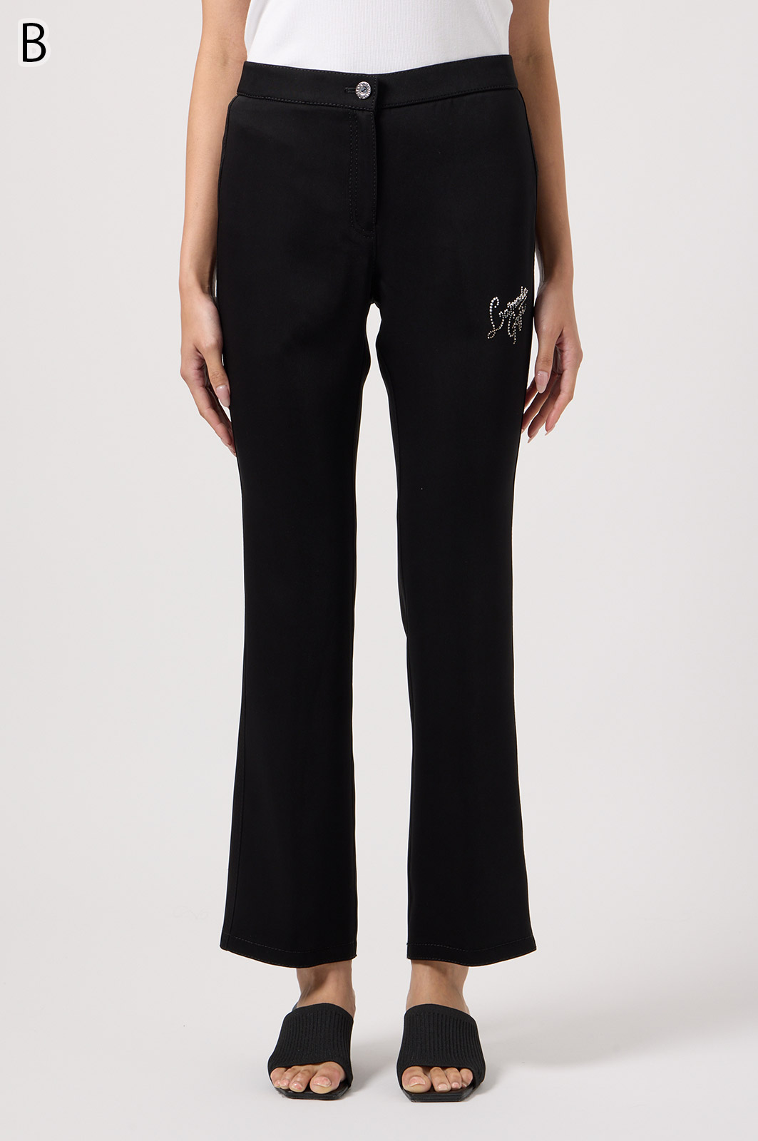 さらっとした肌ざわりでよく伸びる素材が心地よいパンツ。すとんと落ちるシルエットで脚をすっきり見せてくれるブーツカット。ウエストはゴム仕様でラクにはけるのも嬉しいポイント♪
