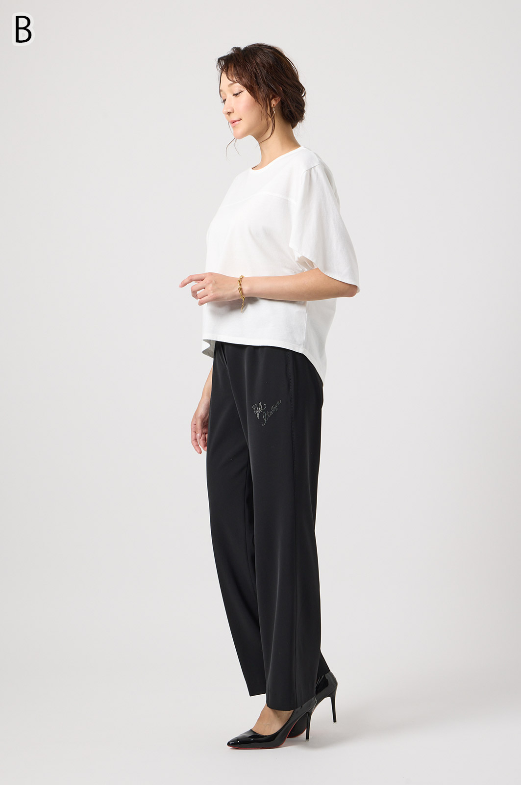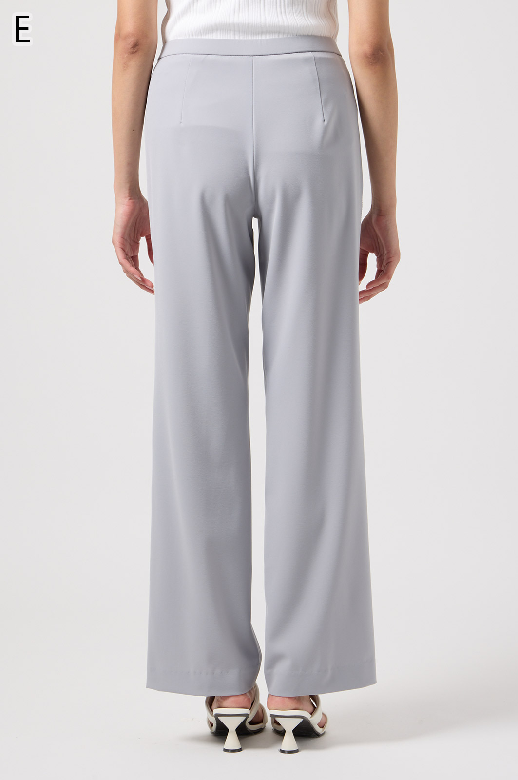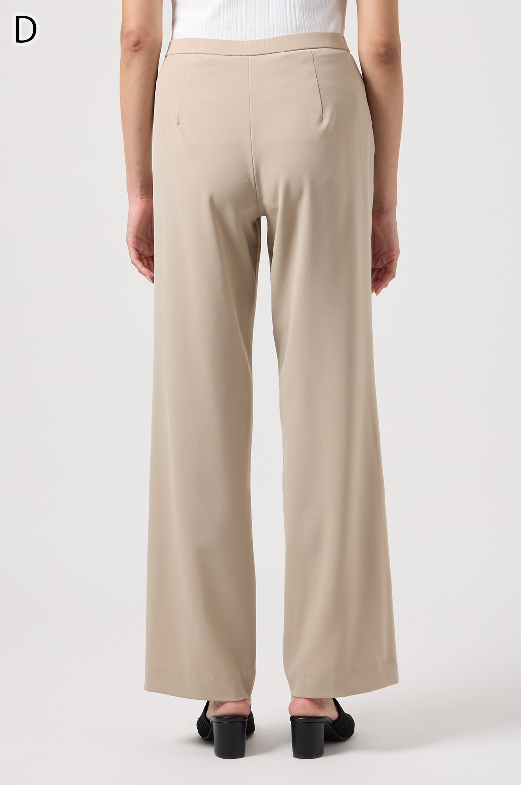 ほどよく伸びて動きやすい、落ち着いた質感のパンツ。ウエストはゴムでらくちん&すっきりしたストレートの形で、毎日のコーデに大活躍♪