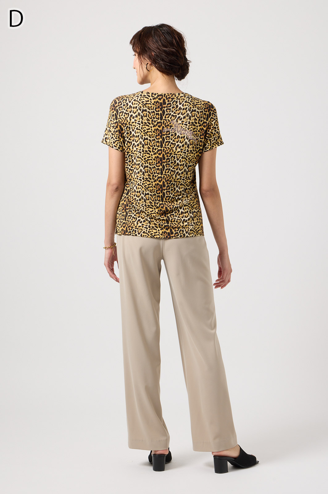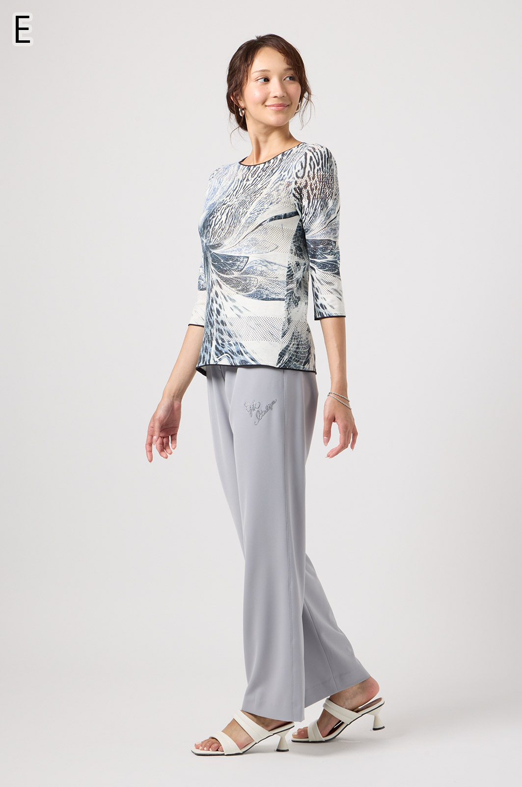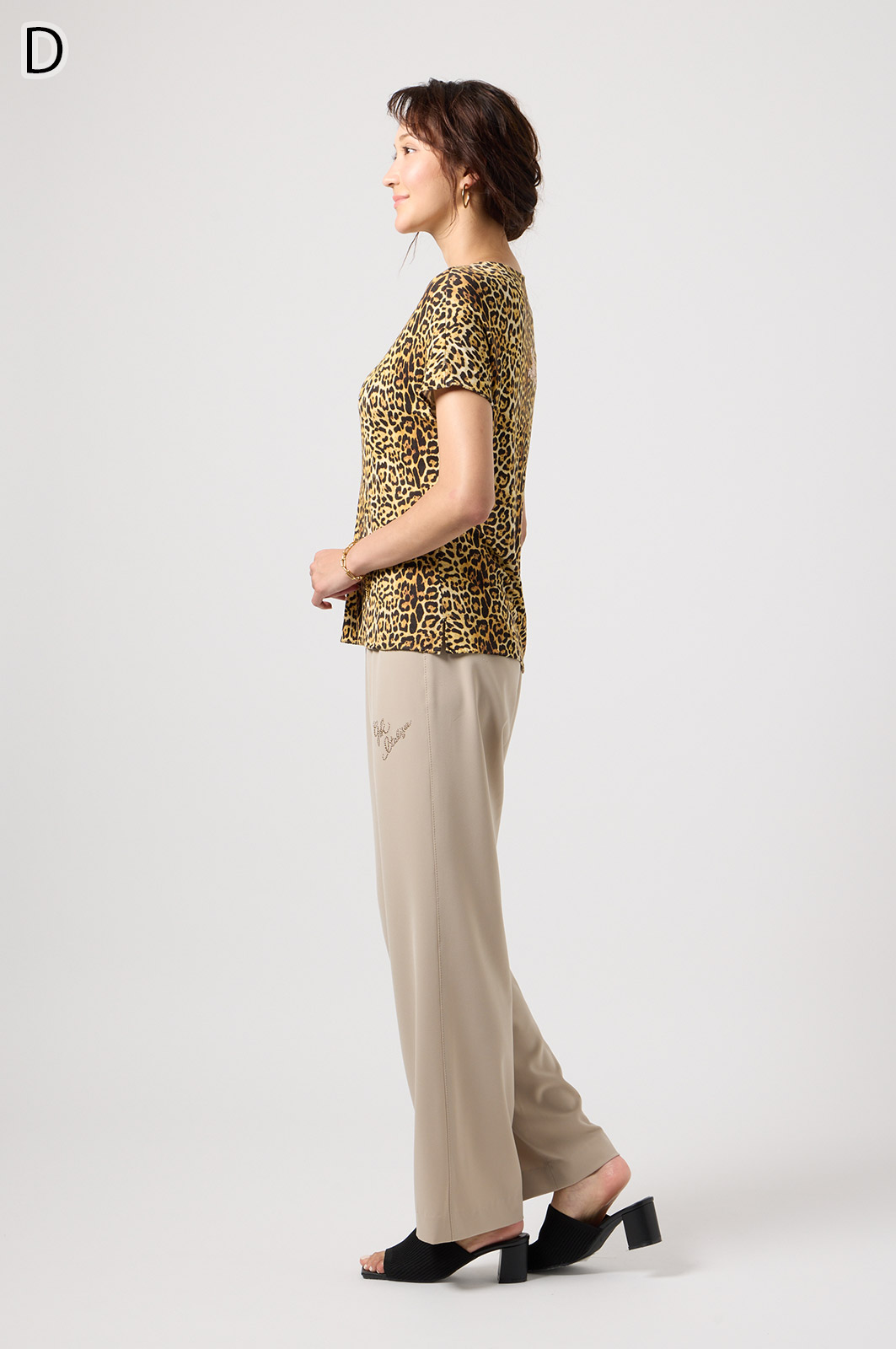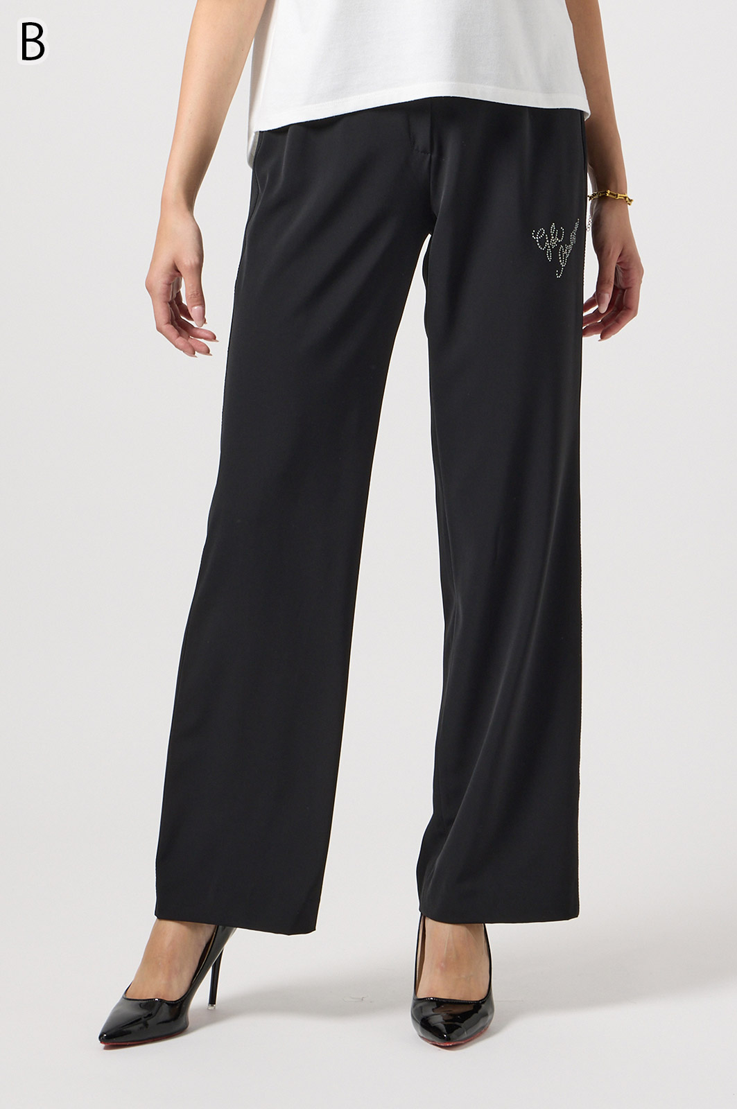 ほどよく伸びて動きやすい、落ち着いた質感のパンツ。ウエストはゴムでらくちん&すっきりしたストレートの形で、毎日のコーデに大活躍♪