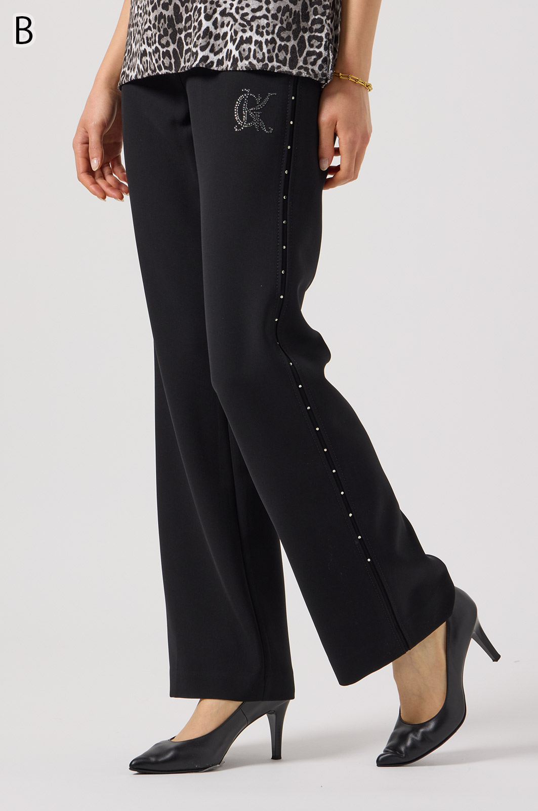 ほどよい厚みの生地で安心感のあるはき心地。すらっと見えるブーツカットの形と、両サイドの切り替えラインで、脚が長く見えるのも嬉しいポイント♪