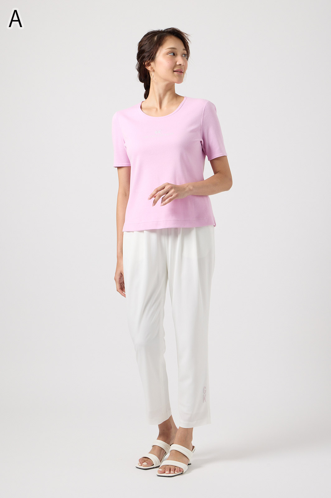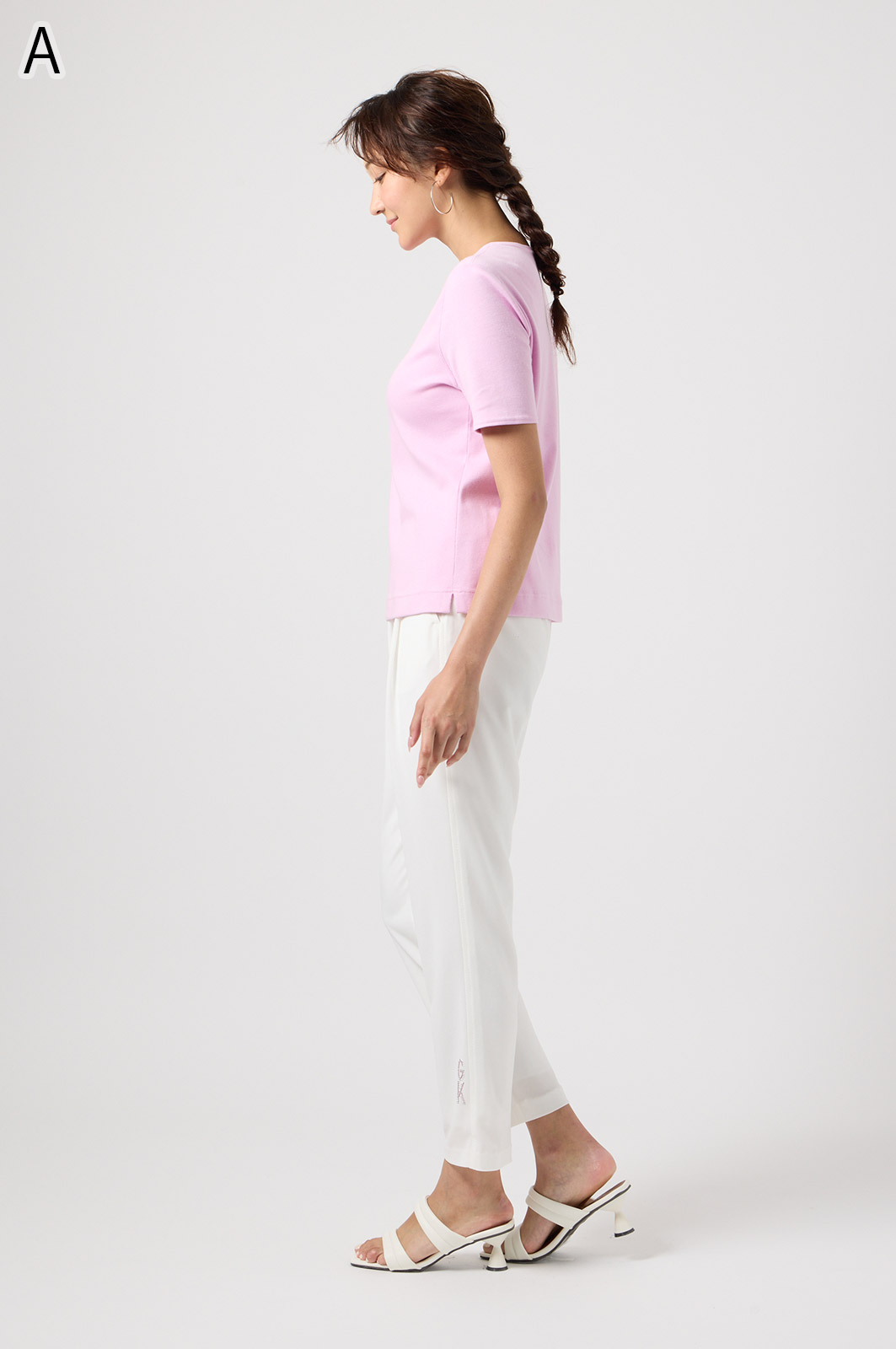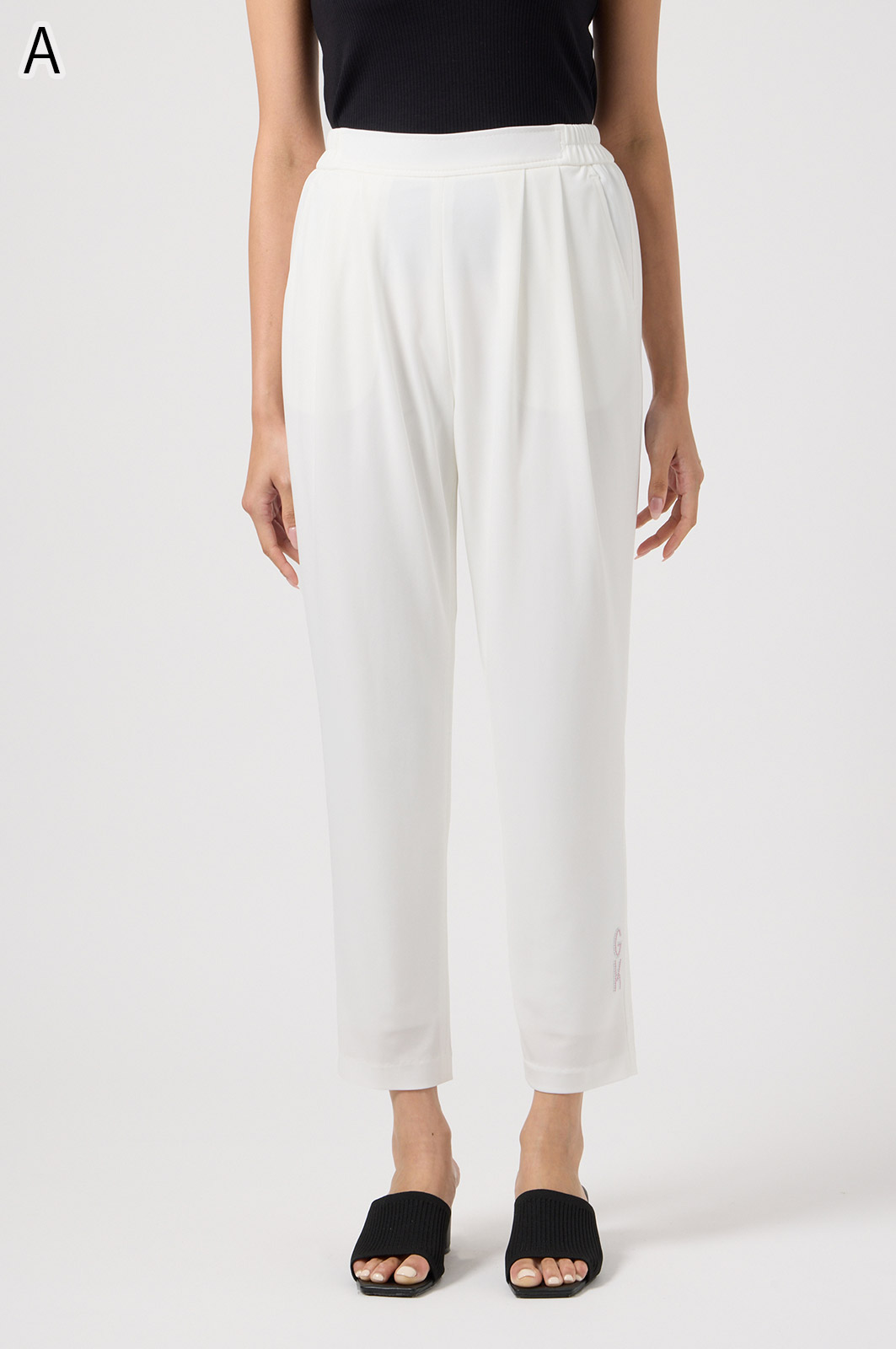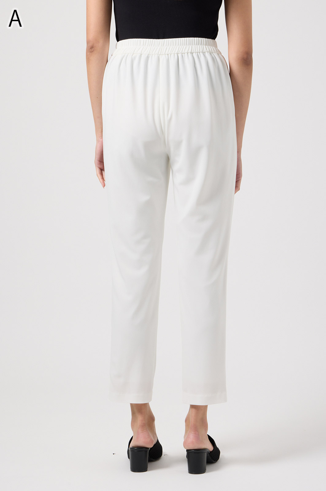 さらっと涼しく、きれいな落ち感が魅力のニット素材パンツ。ウエストはゴムで楽ちん、裾に向かってすっきり見える2タックデザインが上品です。