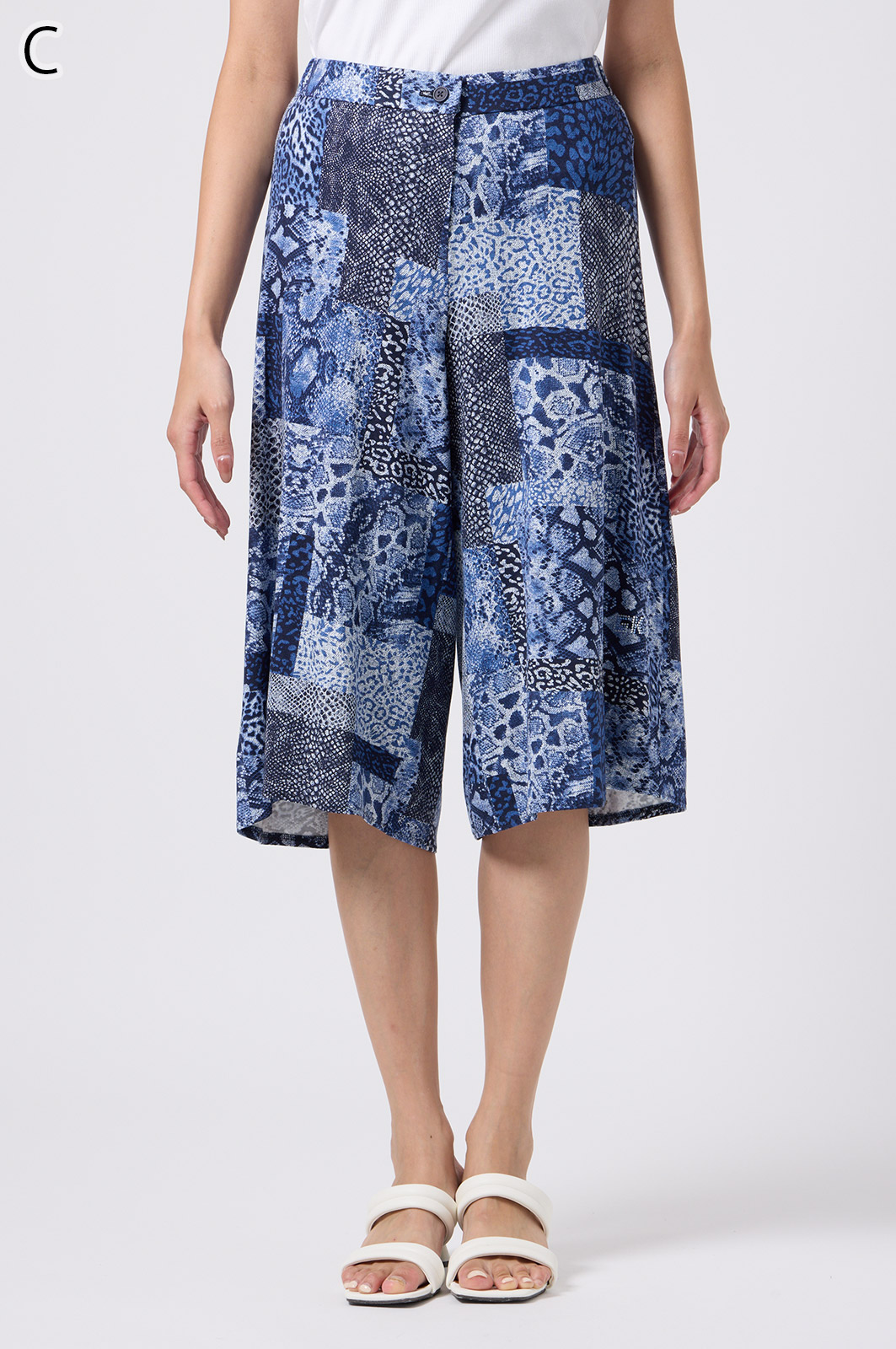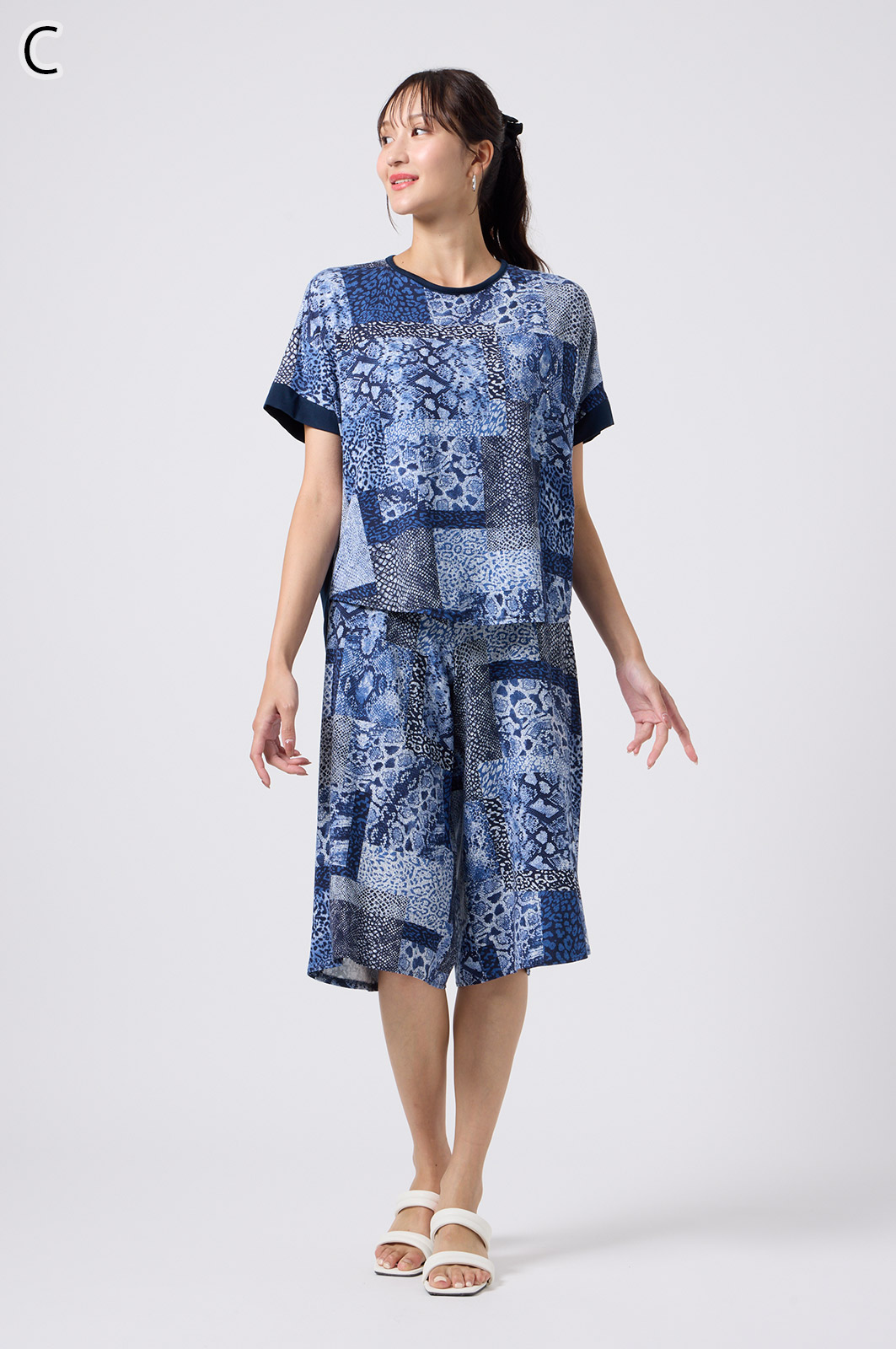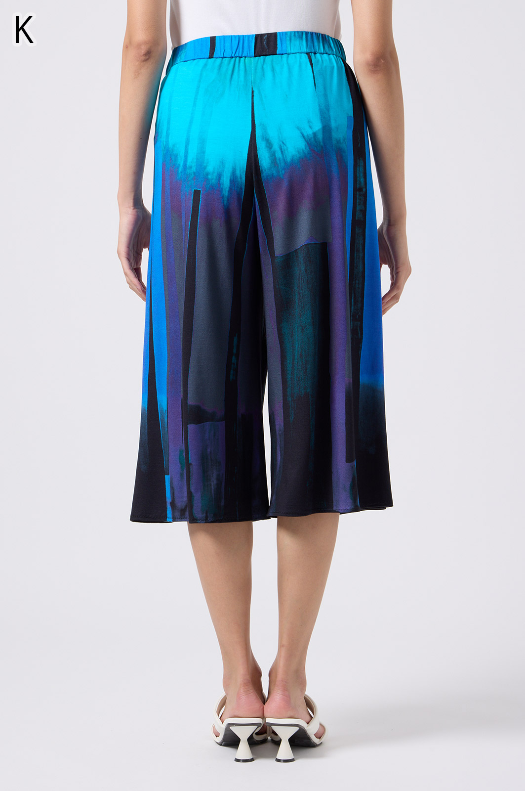 さらっとした肌ざわりのレーヨン素材で、動きに合わせてきれいに揺れる七分丈パンツ。ウエストはゴム仕様でラクに履けて、裾はゆったり広がり、夏らしい軽やかさも◎
