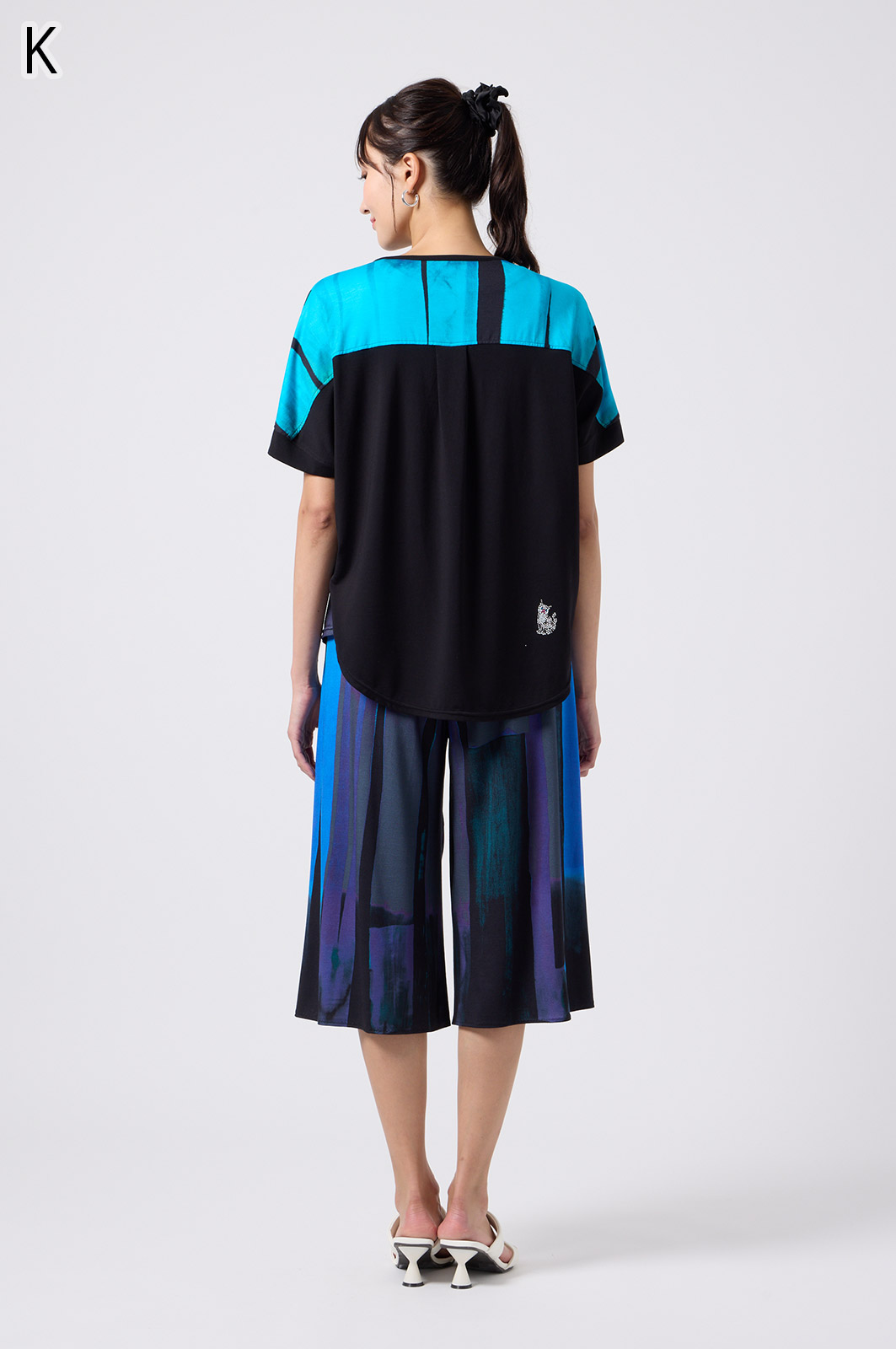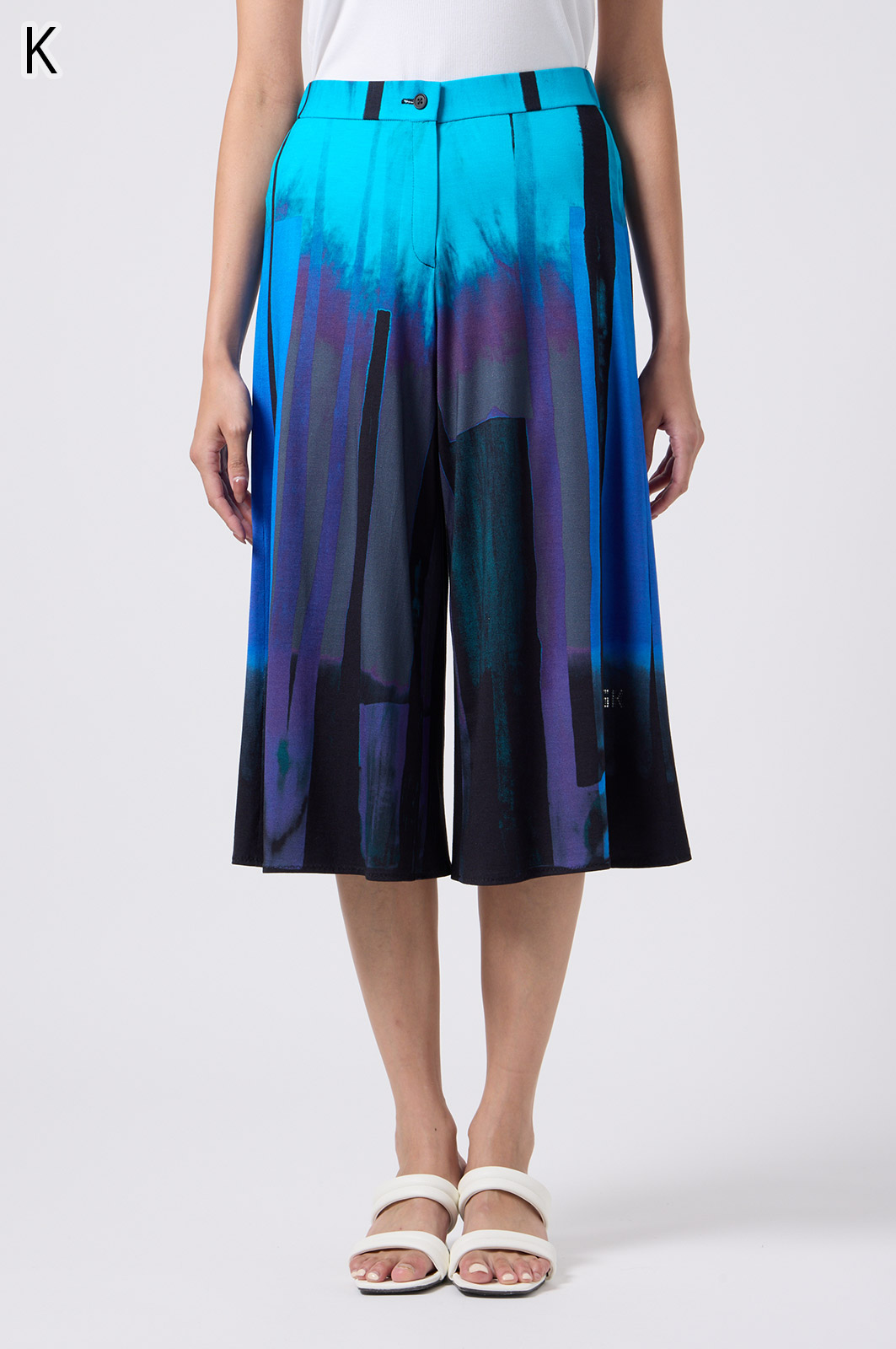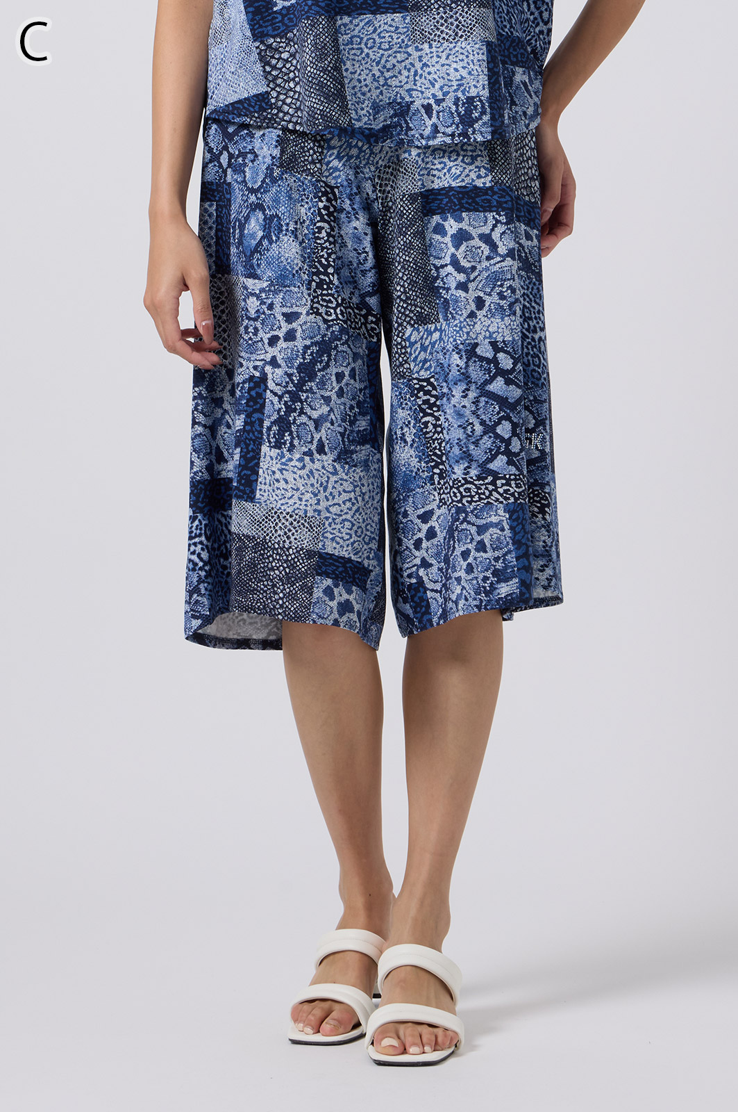さらっとした肌ざわりのレーヨン素材で、動きに合わせてきれいに揺れる七分丈パンツ。ウエストはゴム仕様でラクに履けて、裾はゆったり広がり、夏らしい軽やかさも◎