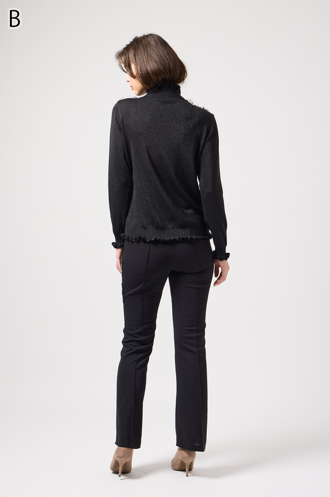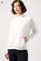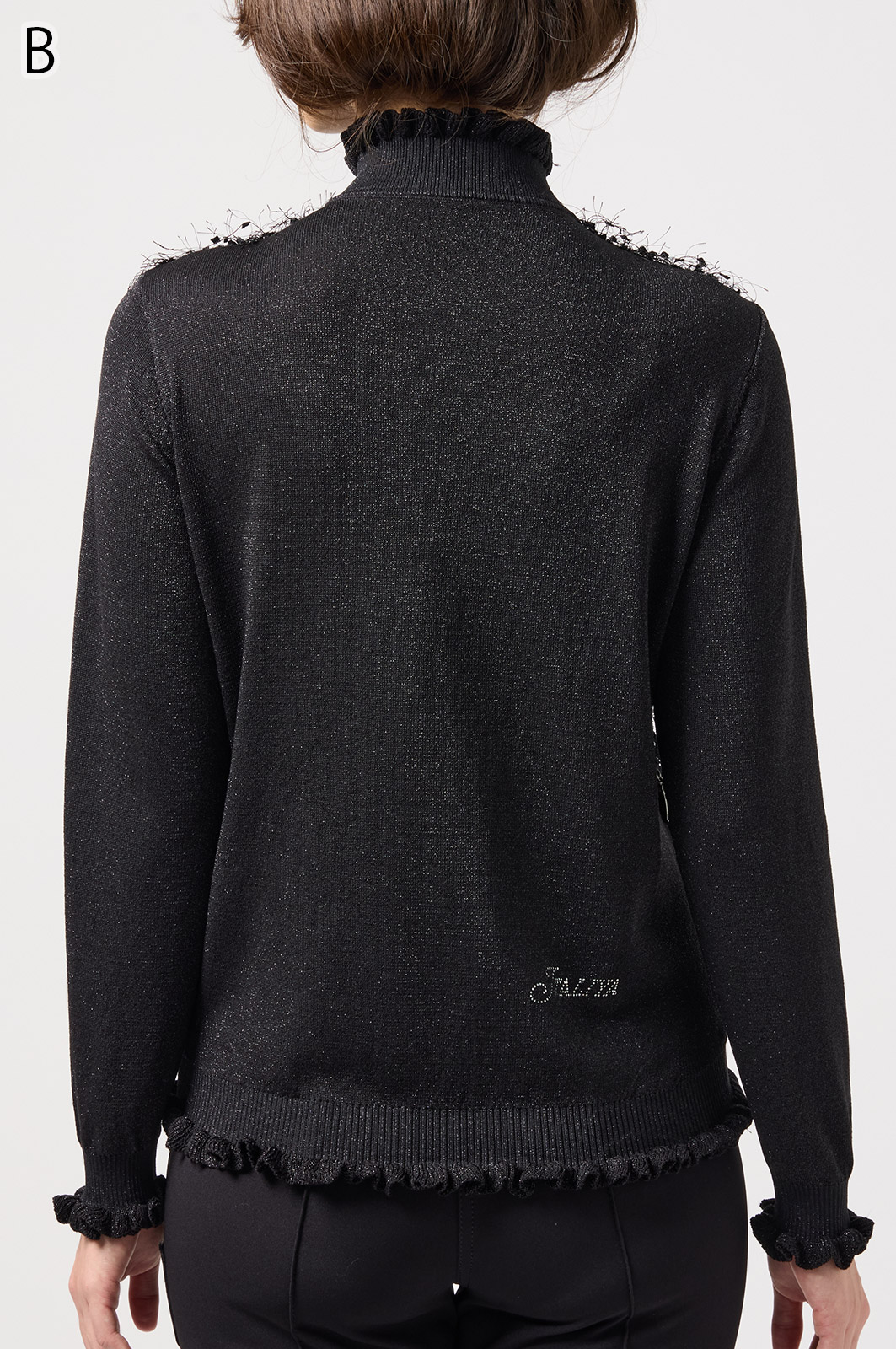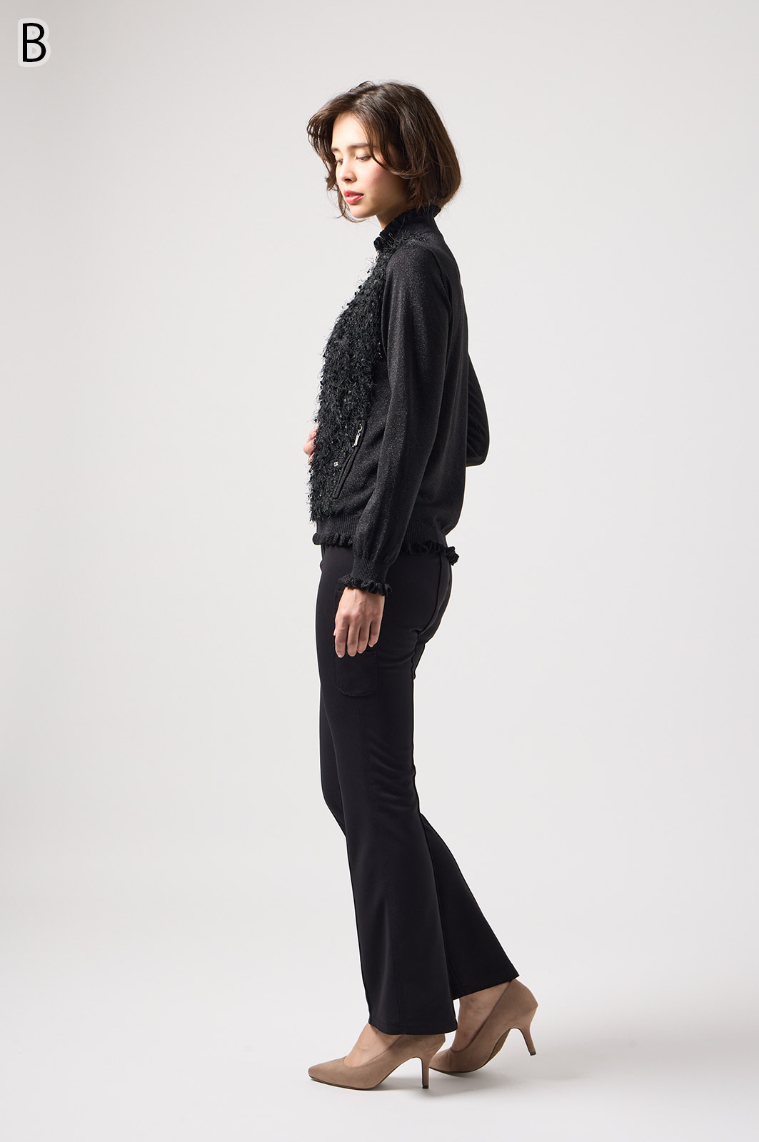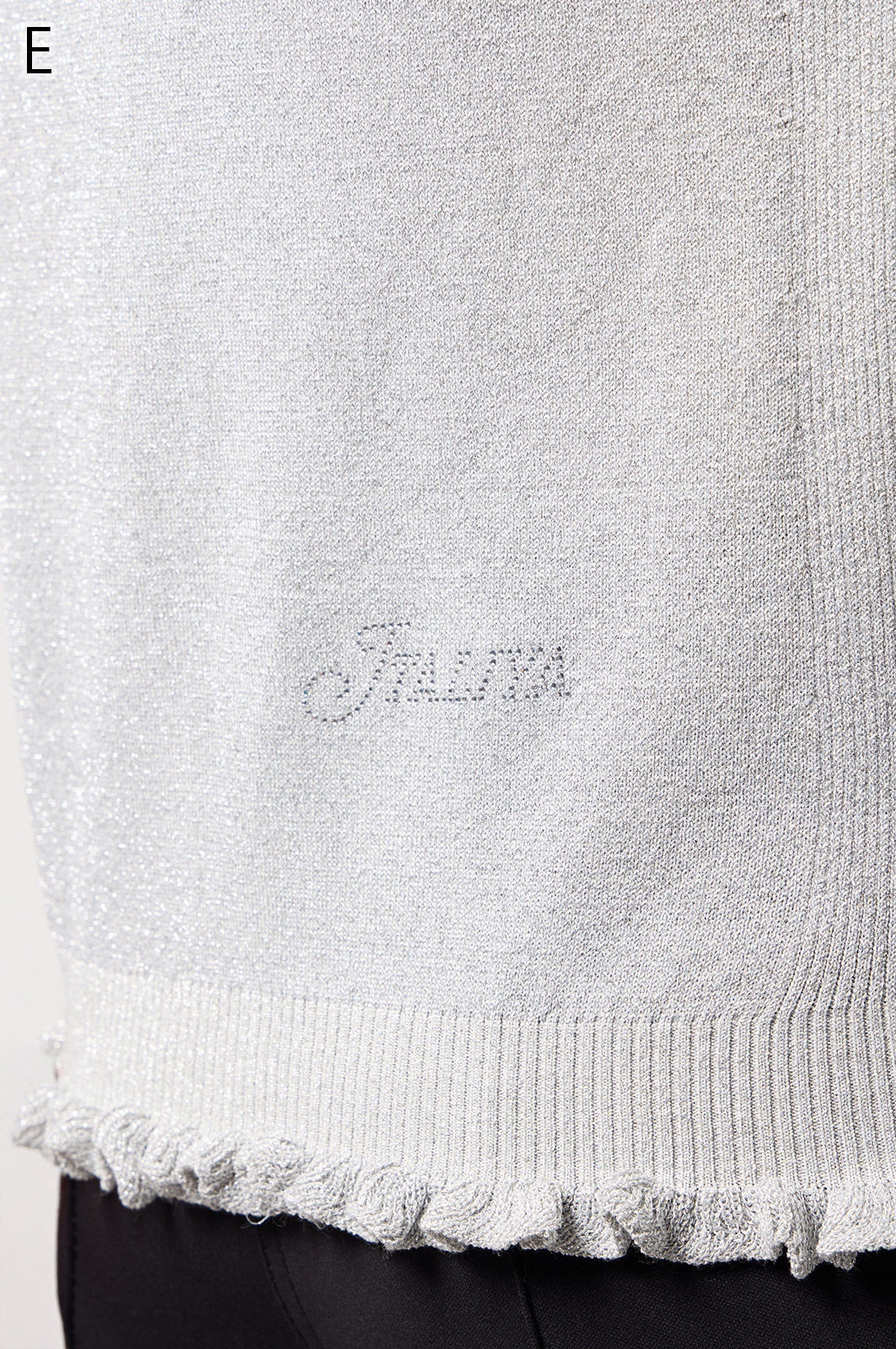 きらきら輝くスパンコール入りの生地と、光沢感のあるニットを組み合わせた羽織りカーディガン。華やかなシーンでもおしゃれに決まる一着です。