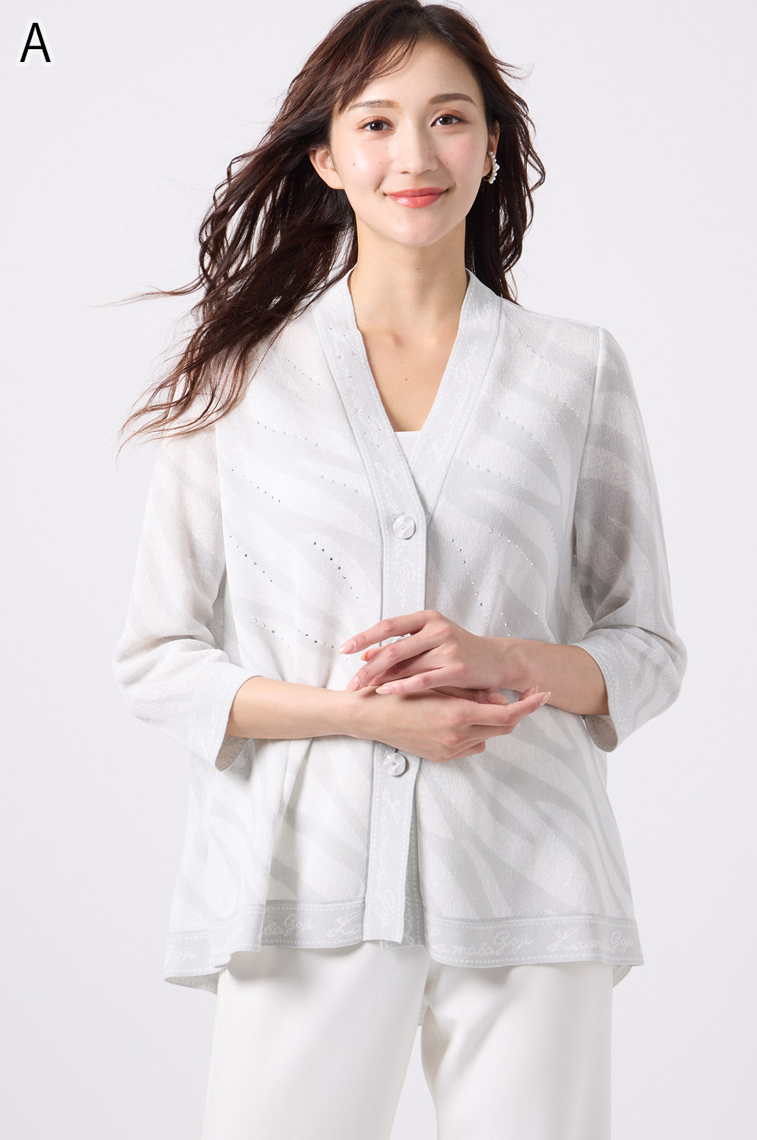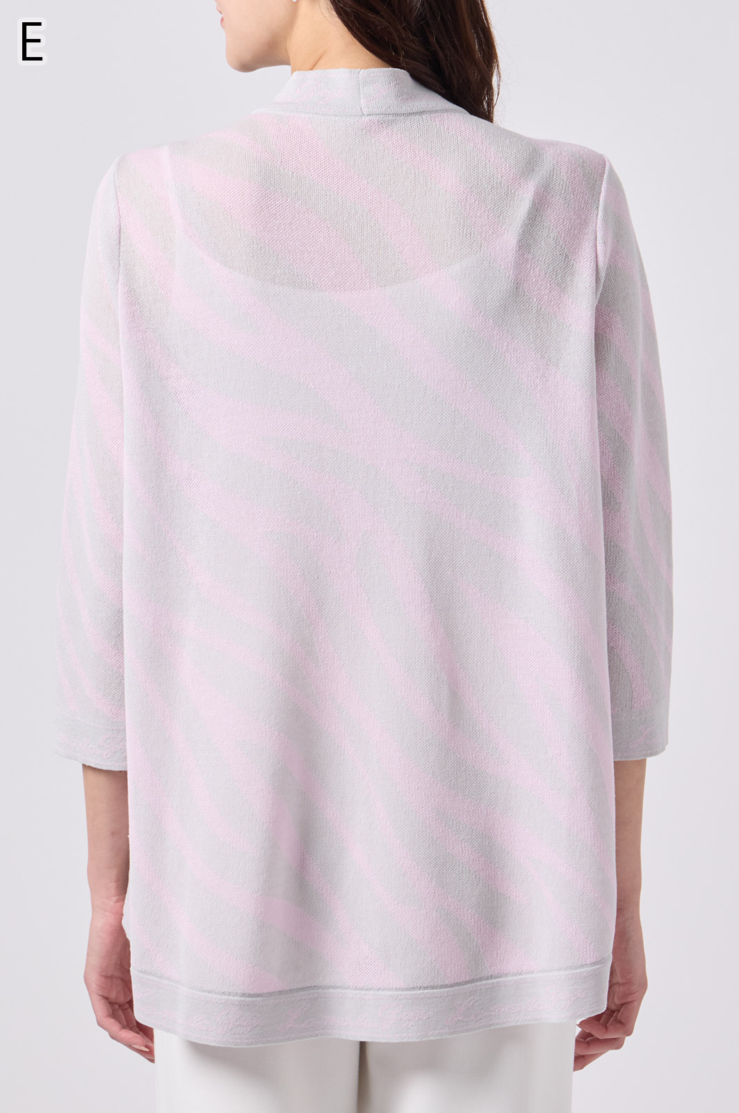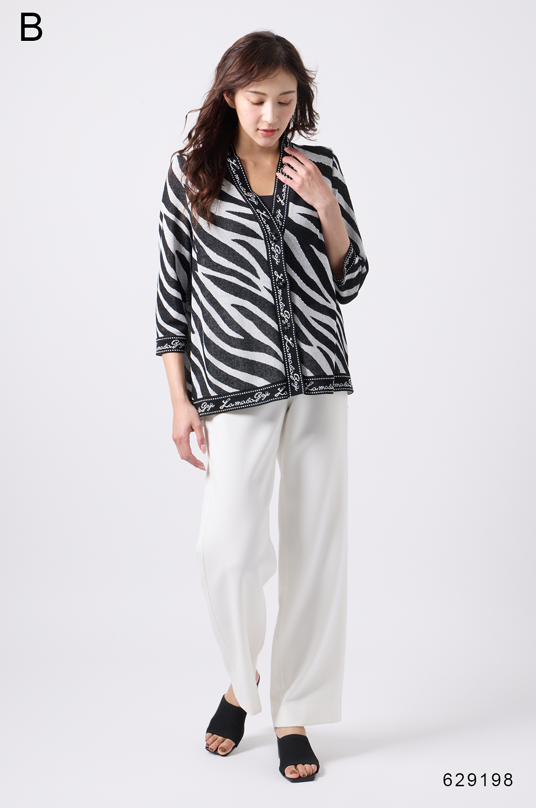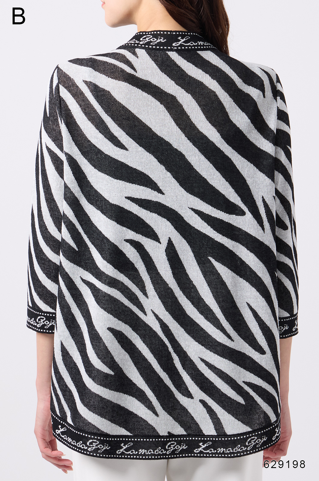 綿麻素材のミックス糸で編み上げた、ゼブラ柄が印象的な涼しげカーディガン。軽やかな風合いで春夏にぴったり。編地にさりげなく施されたオリジナルロゴが、大人の遊び心をプラスします。