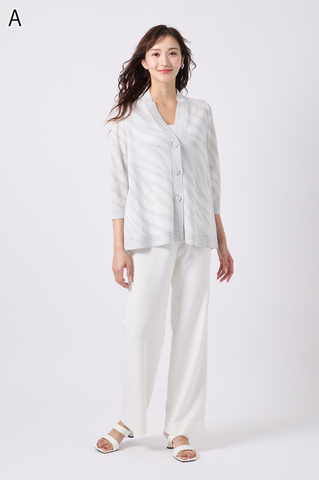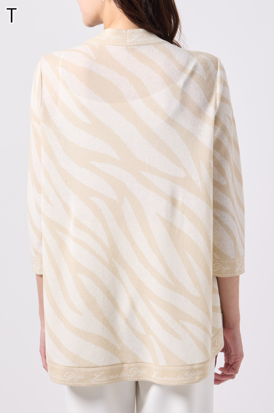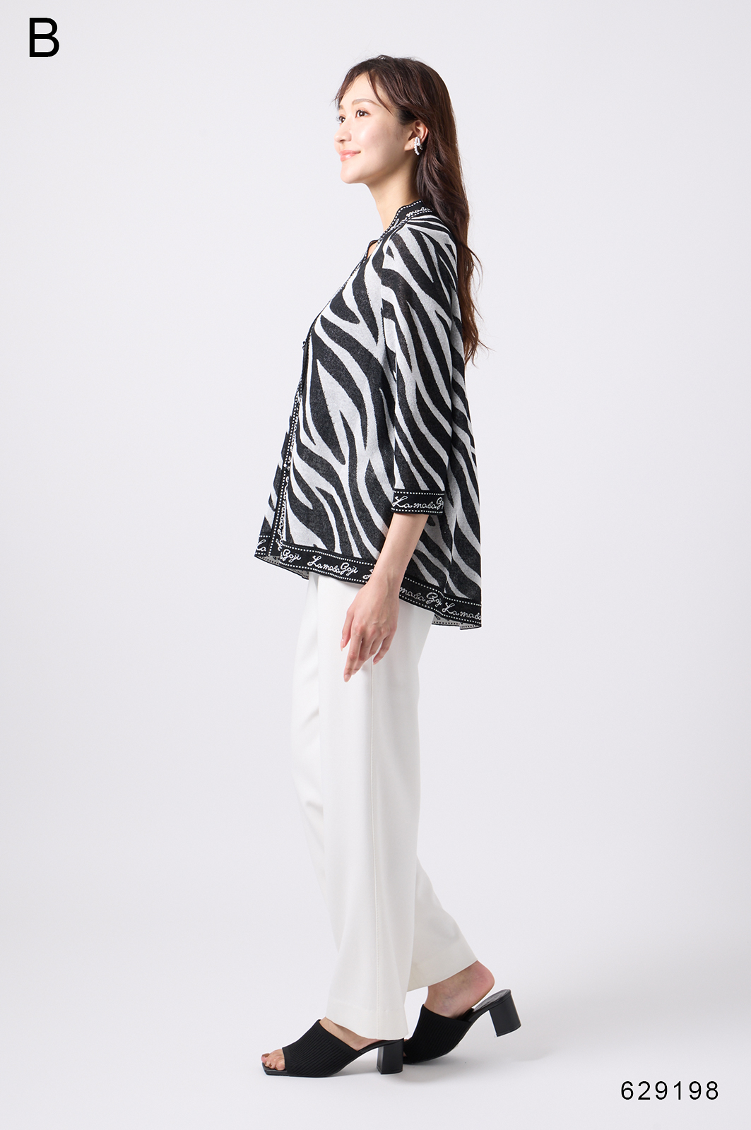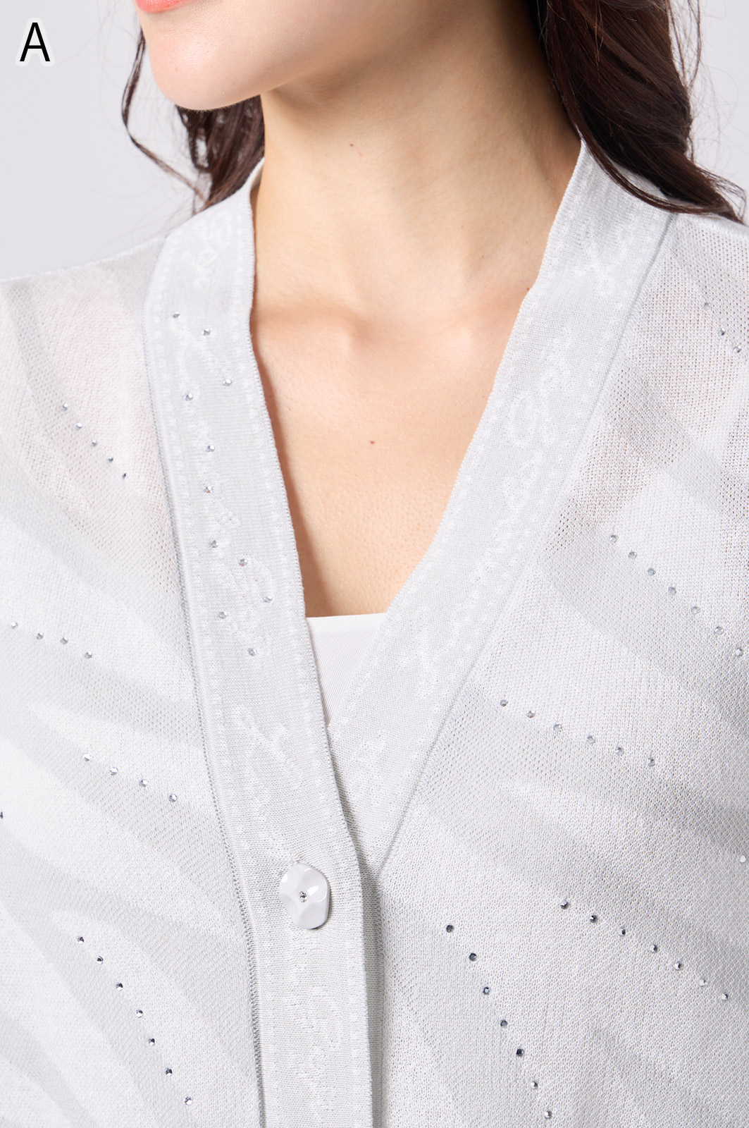 綿麻素材のミックス糸で編み上げた、ゼブラ柄が印象的な涼しげカーディガン。軽やかな風合いで春夏にぴったり。編地にさりげなく施されたオリジナルロゴが、大人の遊び心をプラスします。