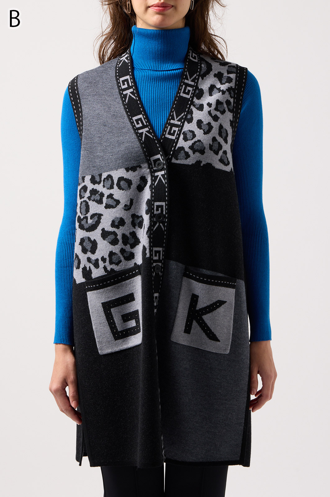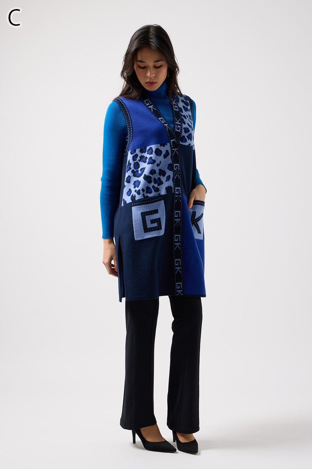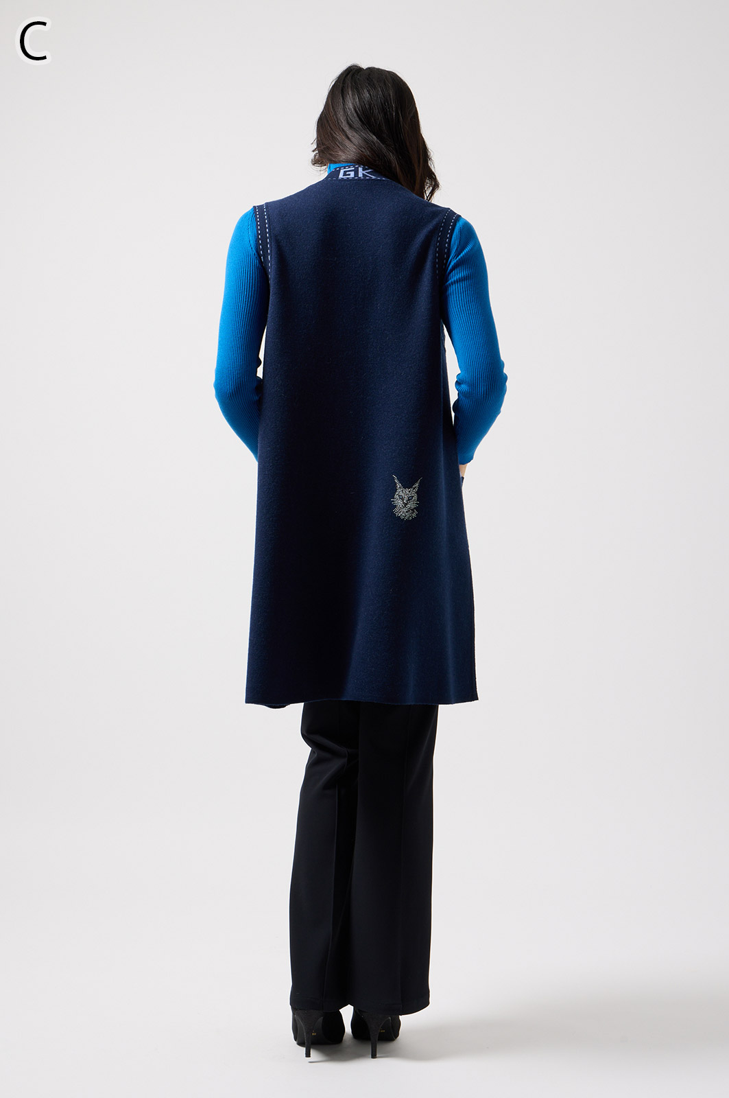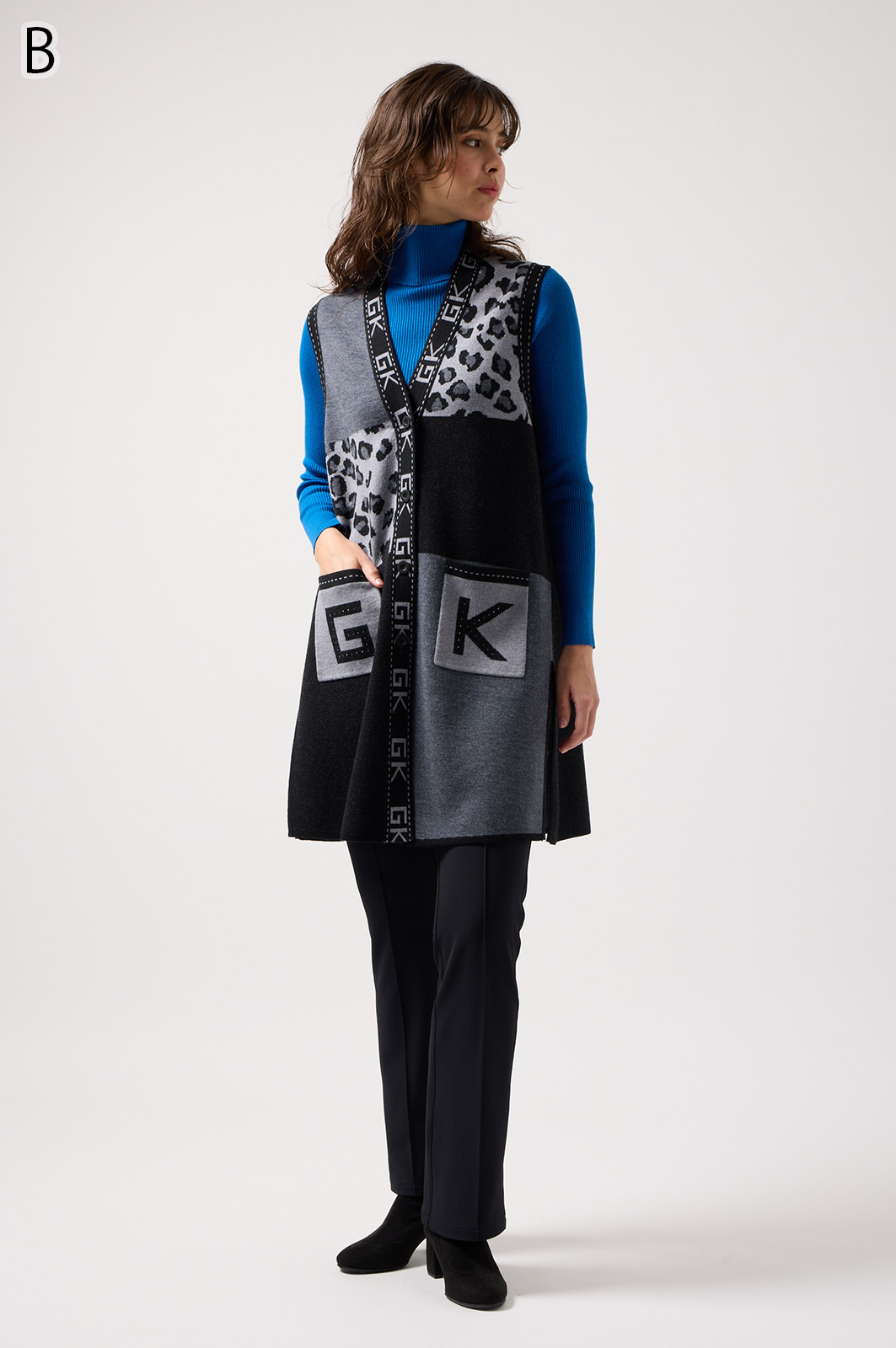 NO.680048VE ヴェスト (Vest) ヒョウ柄とロゴを織り込んだ存在感のあるデザイン。カシミヤのようにやわらかく上質なウール素材を使用。脇にスリットが入った、ロング丈のベストです。 【 価格 (PRICE) 】 ¥61,600 税込(W/ TAX) 【 カラー (COLOR) 】 【 品質 (QUALITY) 】 毛100% 【 サイズ ( SIZE ) 】 9号:着丈84.5cm/バスト102cm/裾幅136cm/アームホール50cm 11号:着丈86.5cm/バスト110cm/裾幅142cm/アームホール53cm