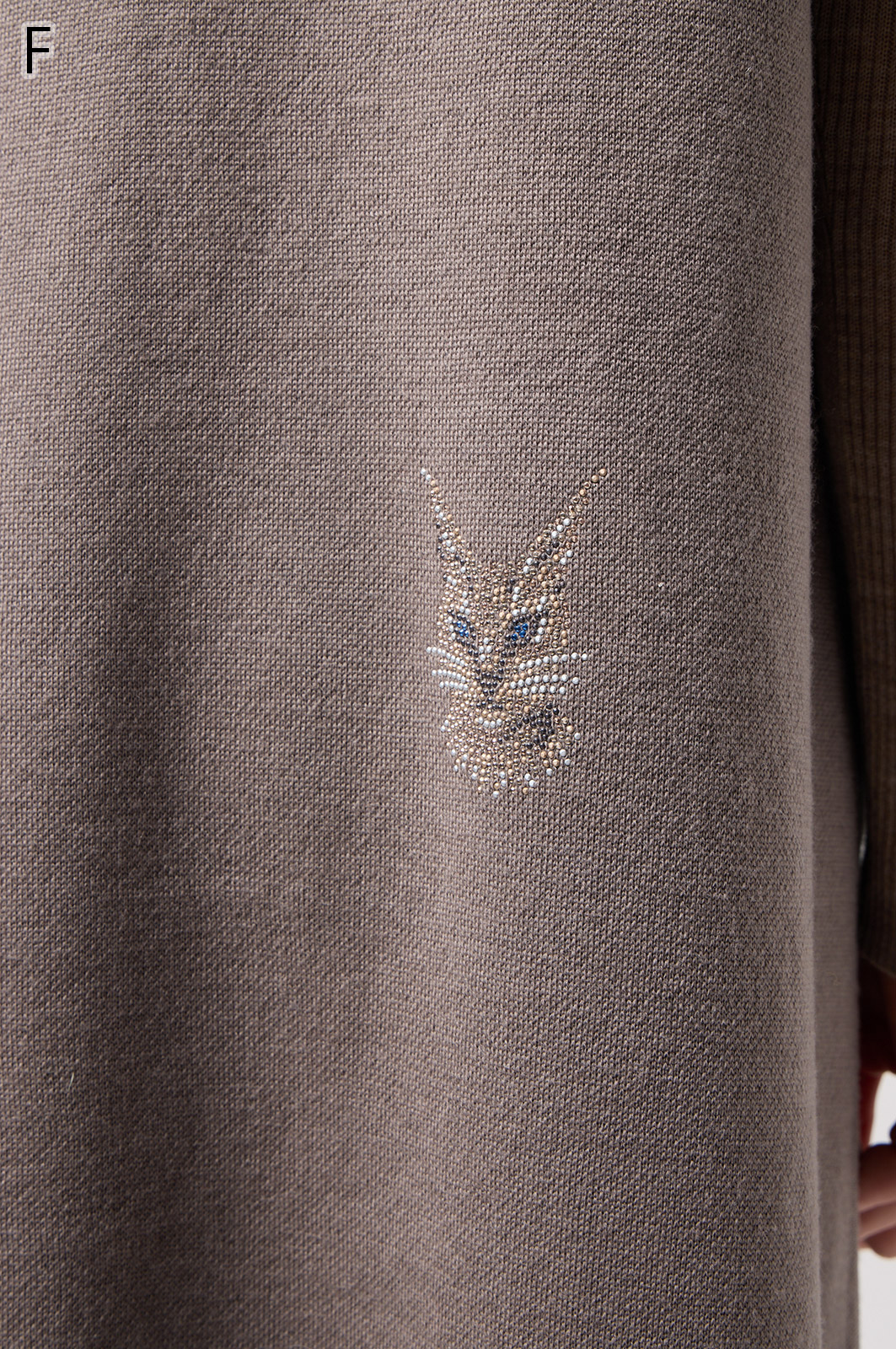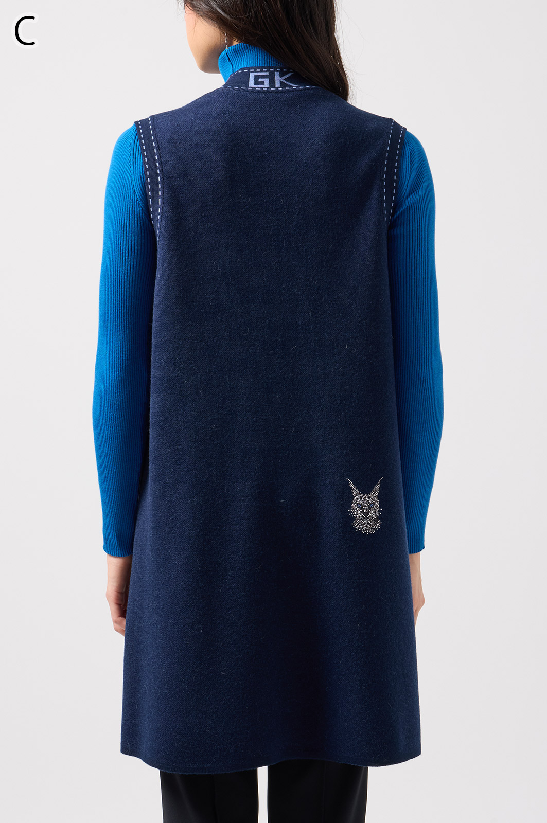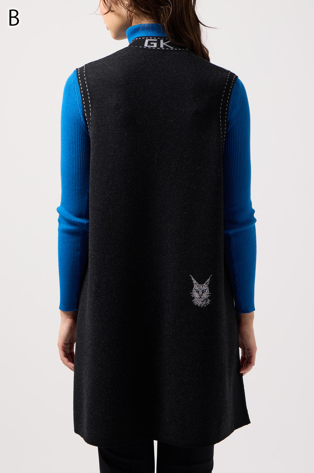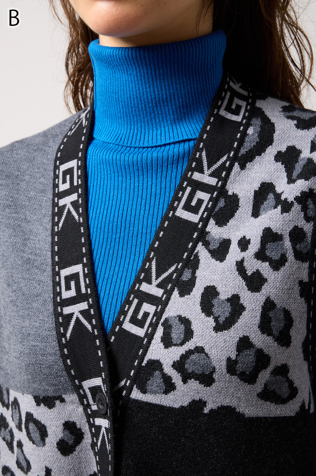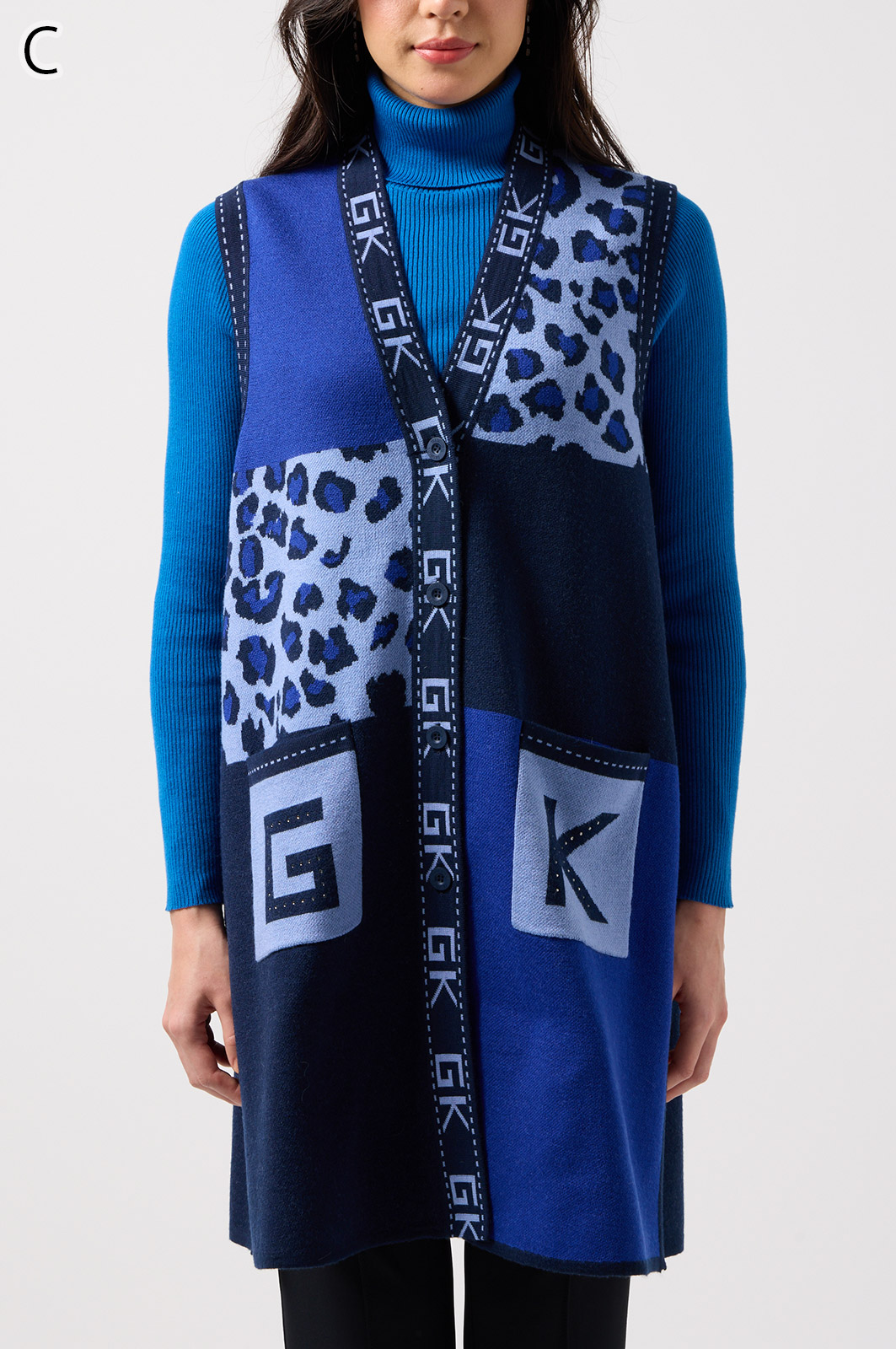 NO.680048VE ヴェスト (Vest) ヒョウ柄とロゴを織り込んだ存在感のあるデザイン。カシミヤのようにやわらかく上質なウール素材を使用。脇にスリットが入った、ロング丈のベストです。 【 価格 (PRICE) 】 ¥61,600 税込(W/ TAX) 【 カラー (COLOR) 】 【 品質 (QUALITY) 】 毛100% 【 サイズ ( SIZE ) 】 9号:着丈84.5cm/バスト102cm/裾幅136cm/アームホール50cm 11号:着丈86.5cm/バスト110cm/裾幅142cm/アームホール53cm