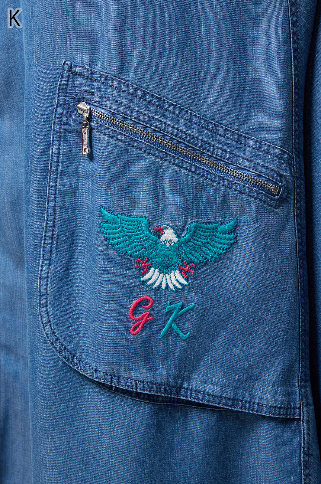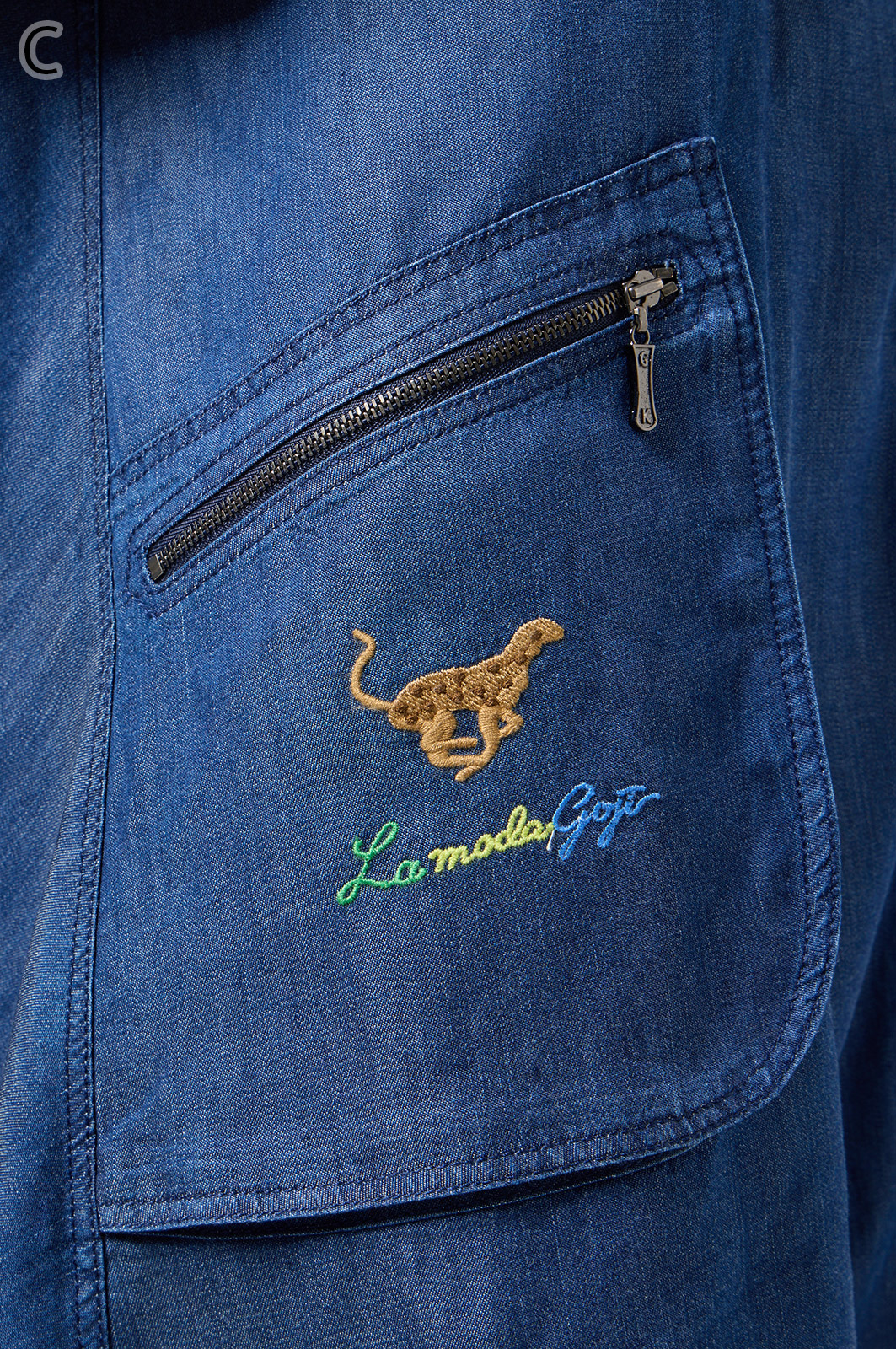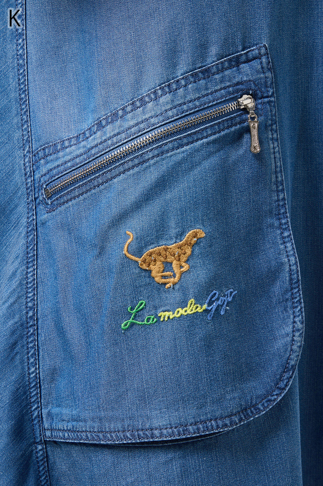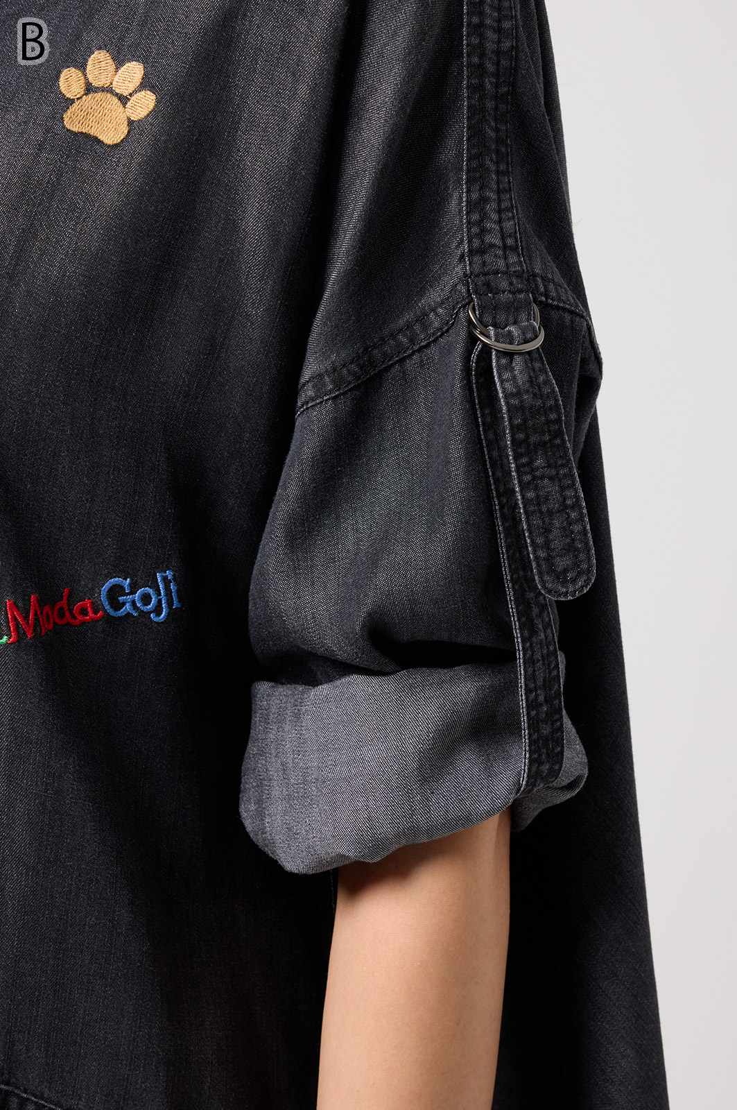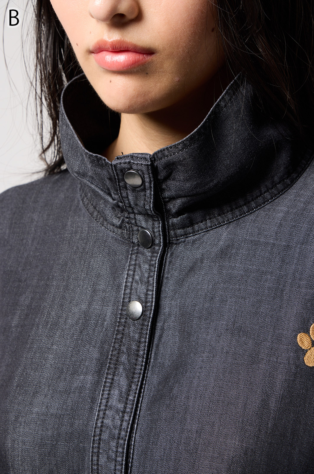 やわらかなテンセル素材100%のデニム生地に、こだわりの刺しゅうを全体に施した羽織りブラウス。ゆったり広がるフレアシルエットで、季節を問わず軽やかに着こなせます。