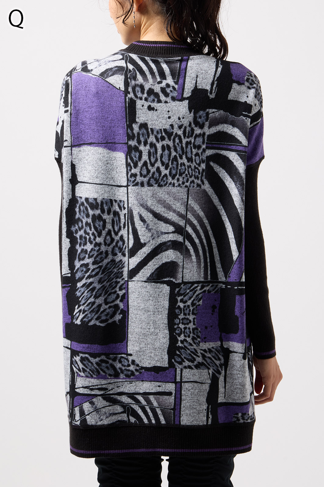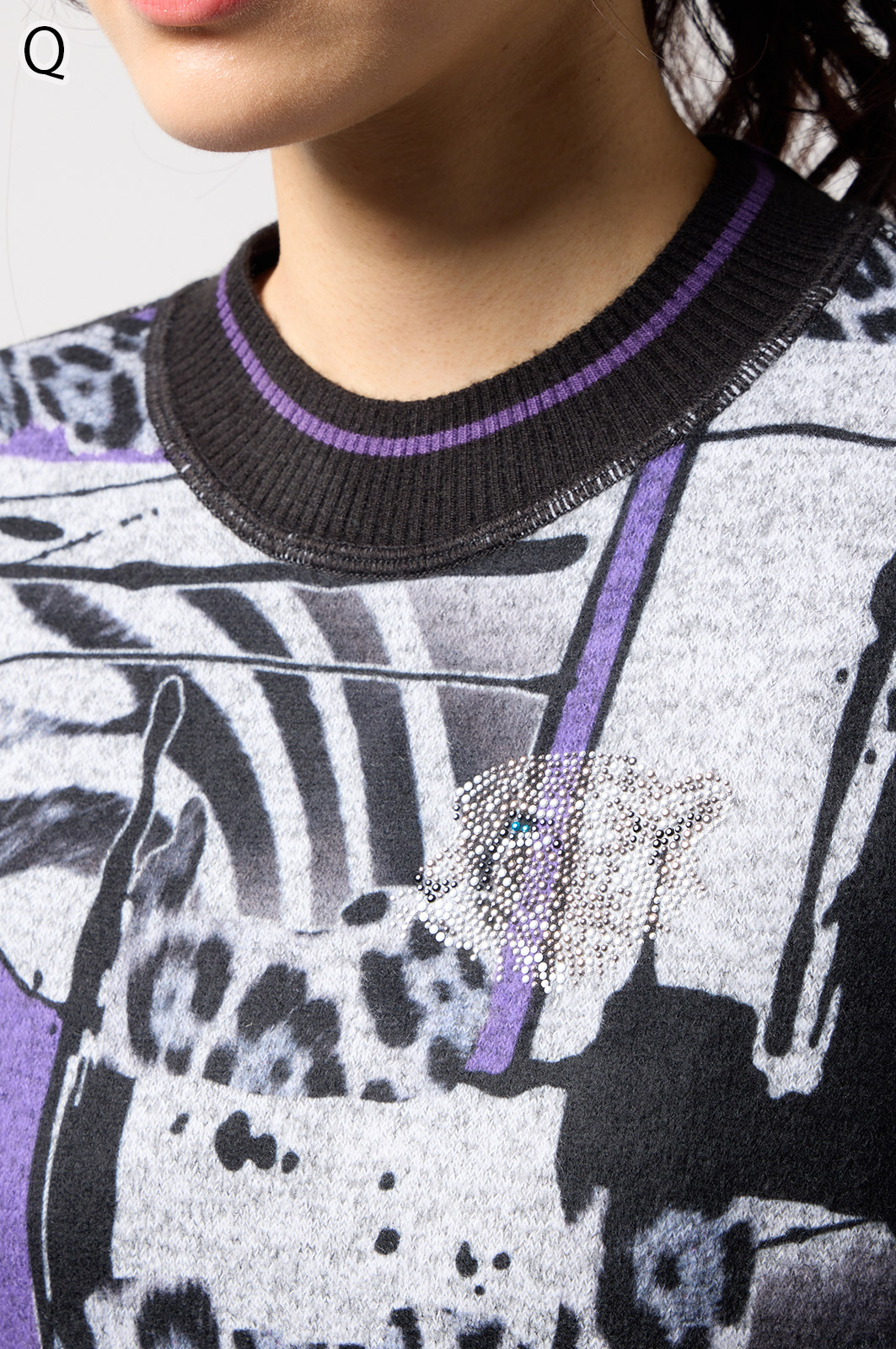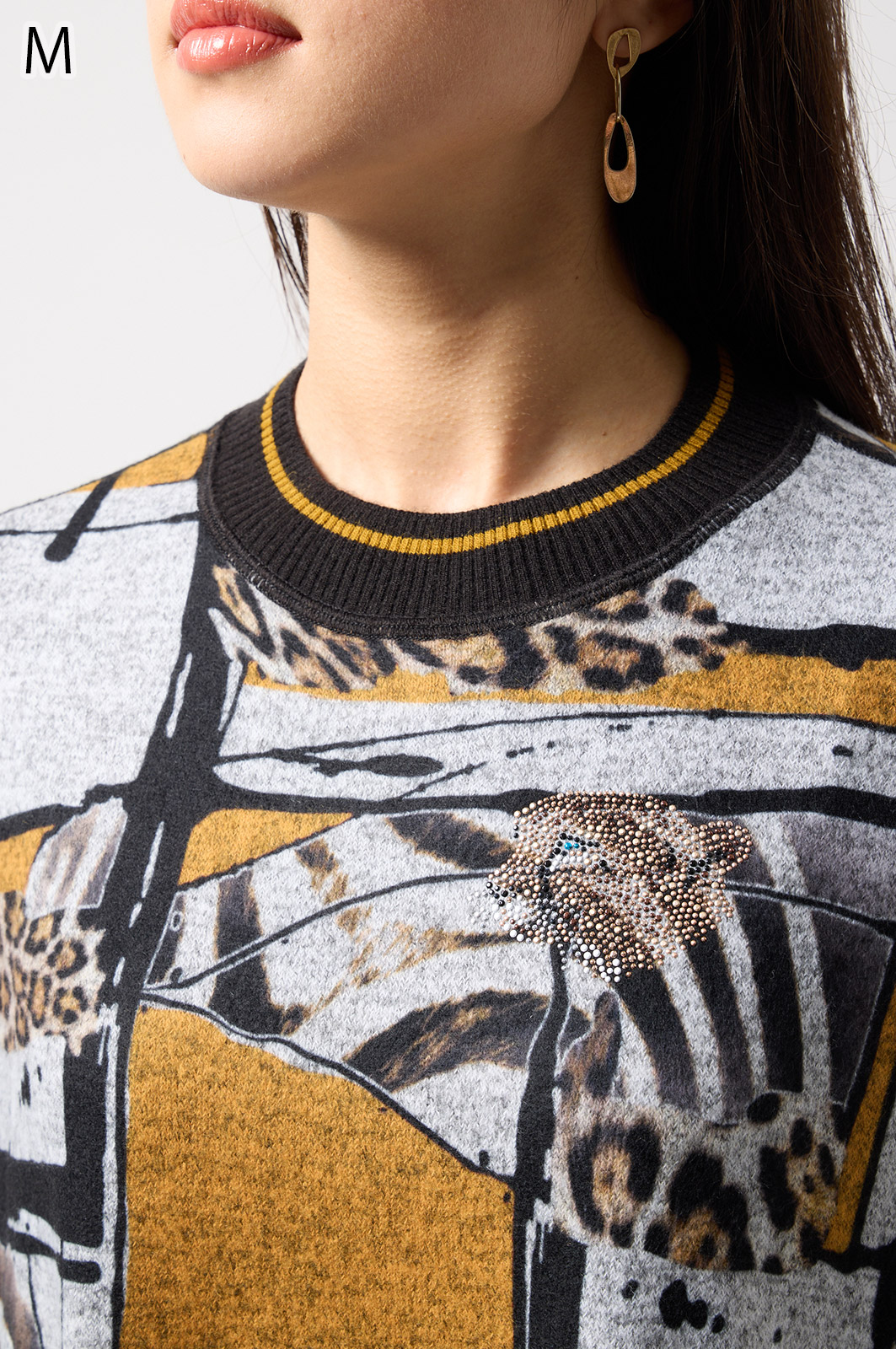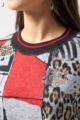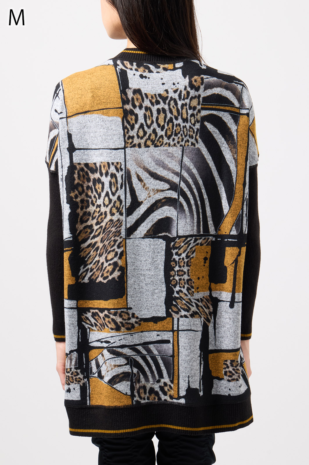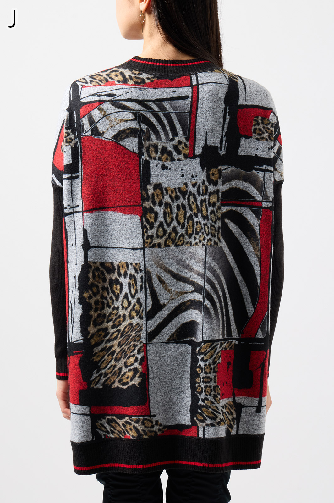 ヒョウ柄と幾何学柄が融合した個性際立つニット素材のTシャツ。衿・袖・裾にニットを使用し、上品なアクセントをプラス。程よいフィット感で快適な着心地を叶えます。