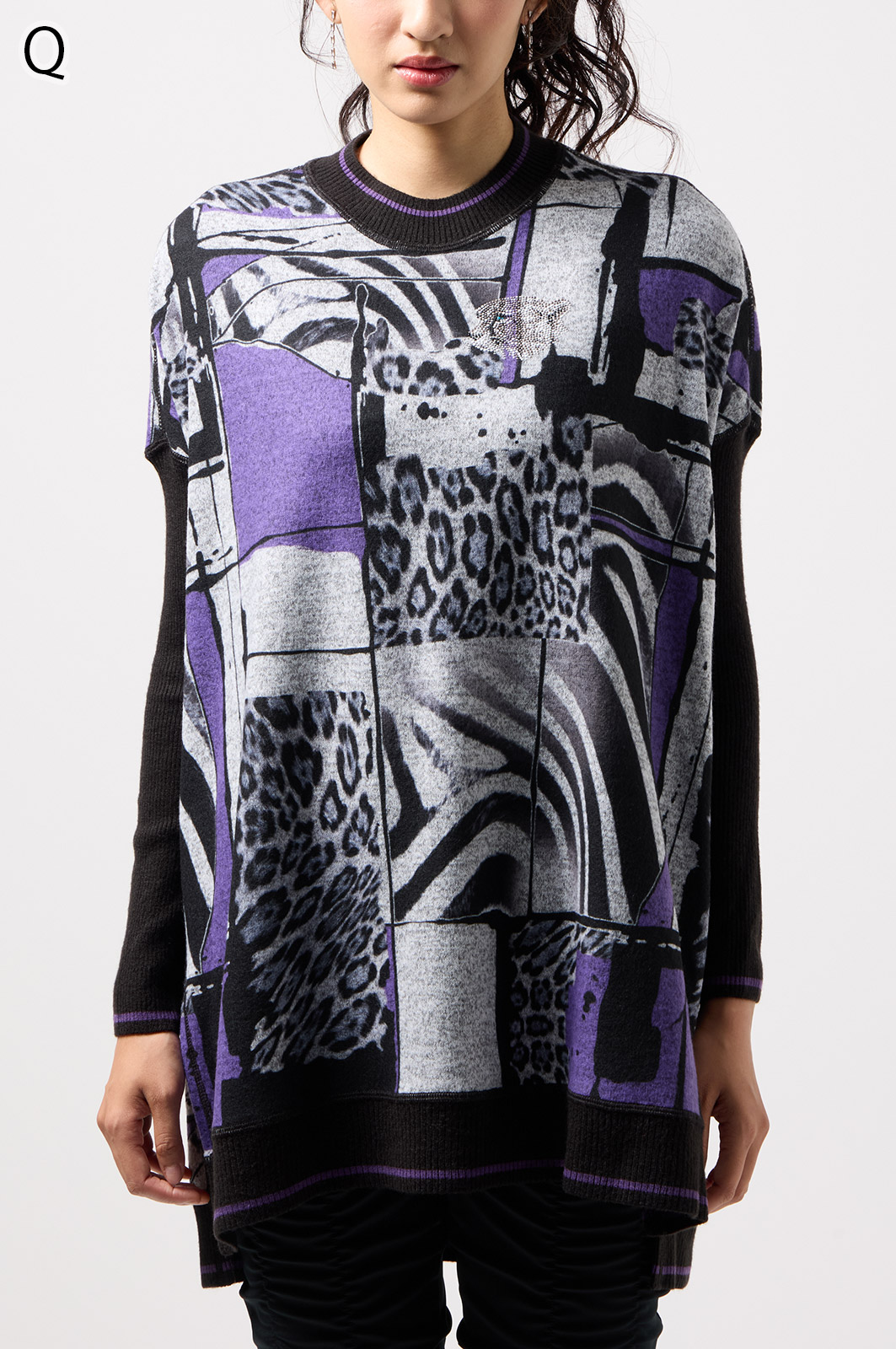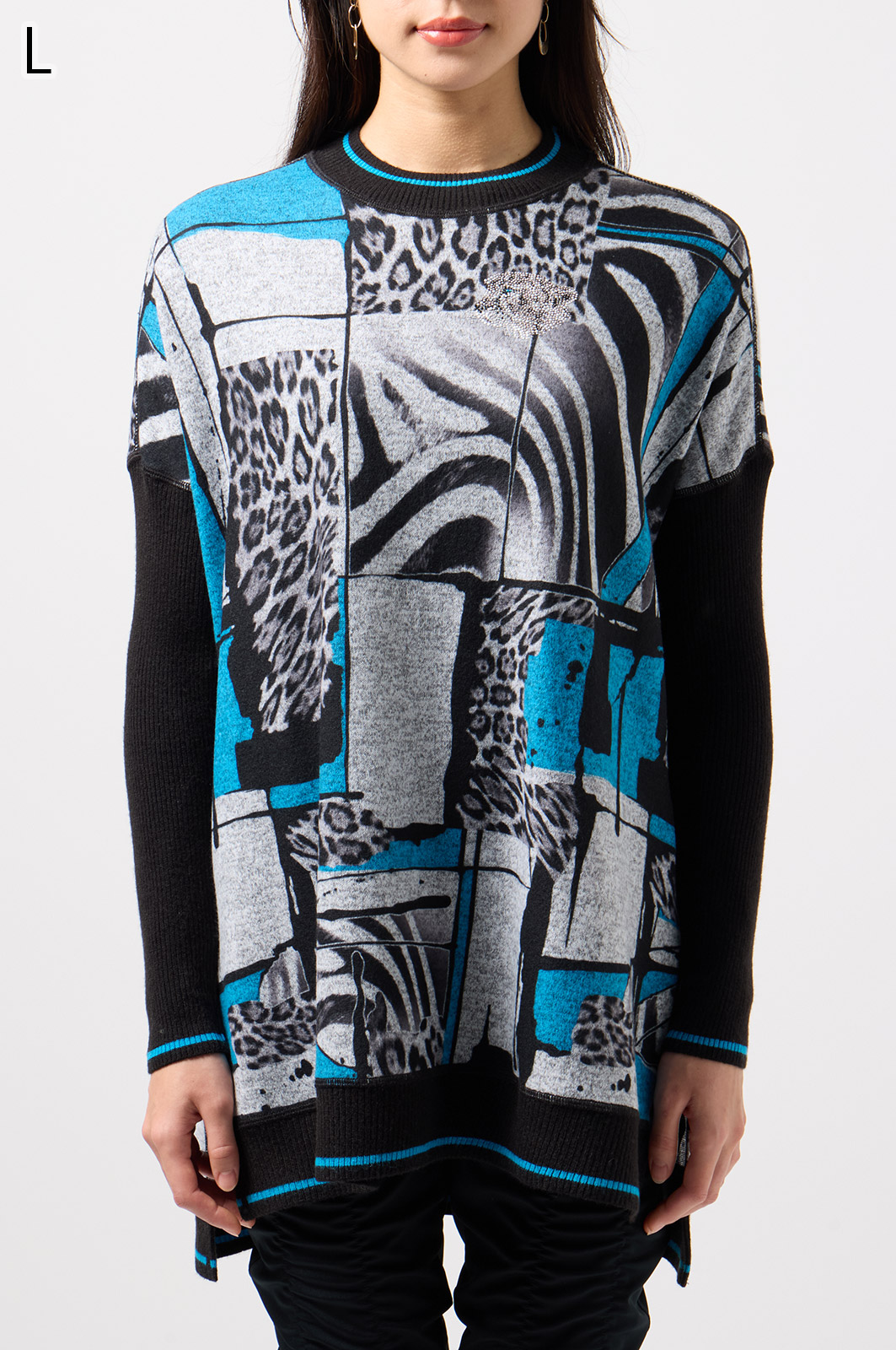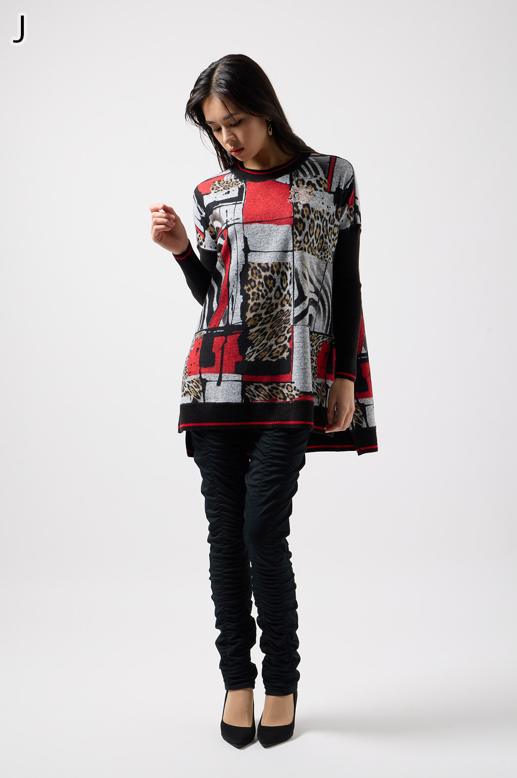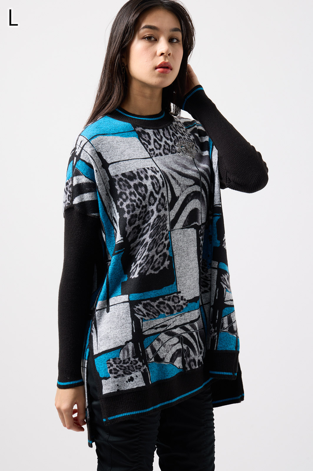 ヒョウ柄と幾何学柄が融合した個性際立つニット素材のTシャツ。衿・袖・裾にニットを使用し、上品なアクセントをプラス。程よいフィット感で快適な着心地を叶えます。