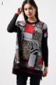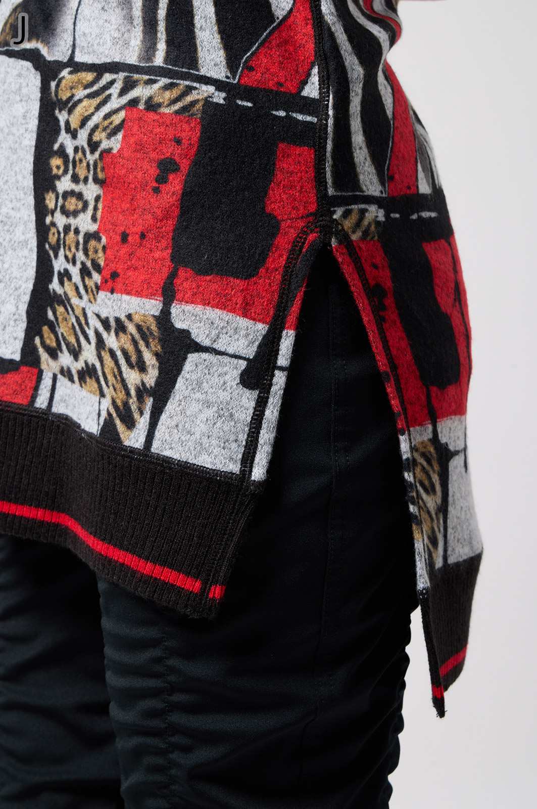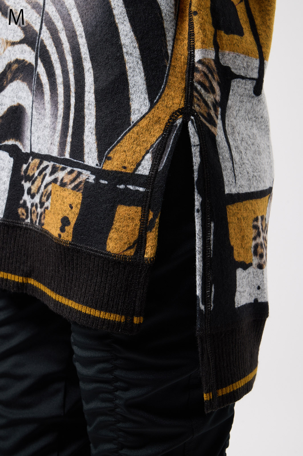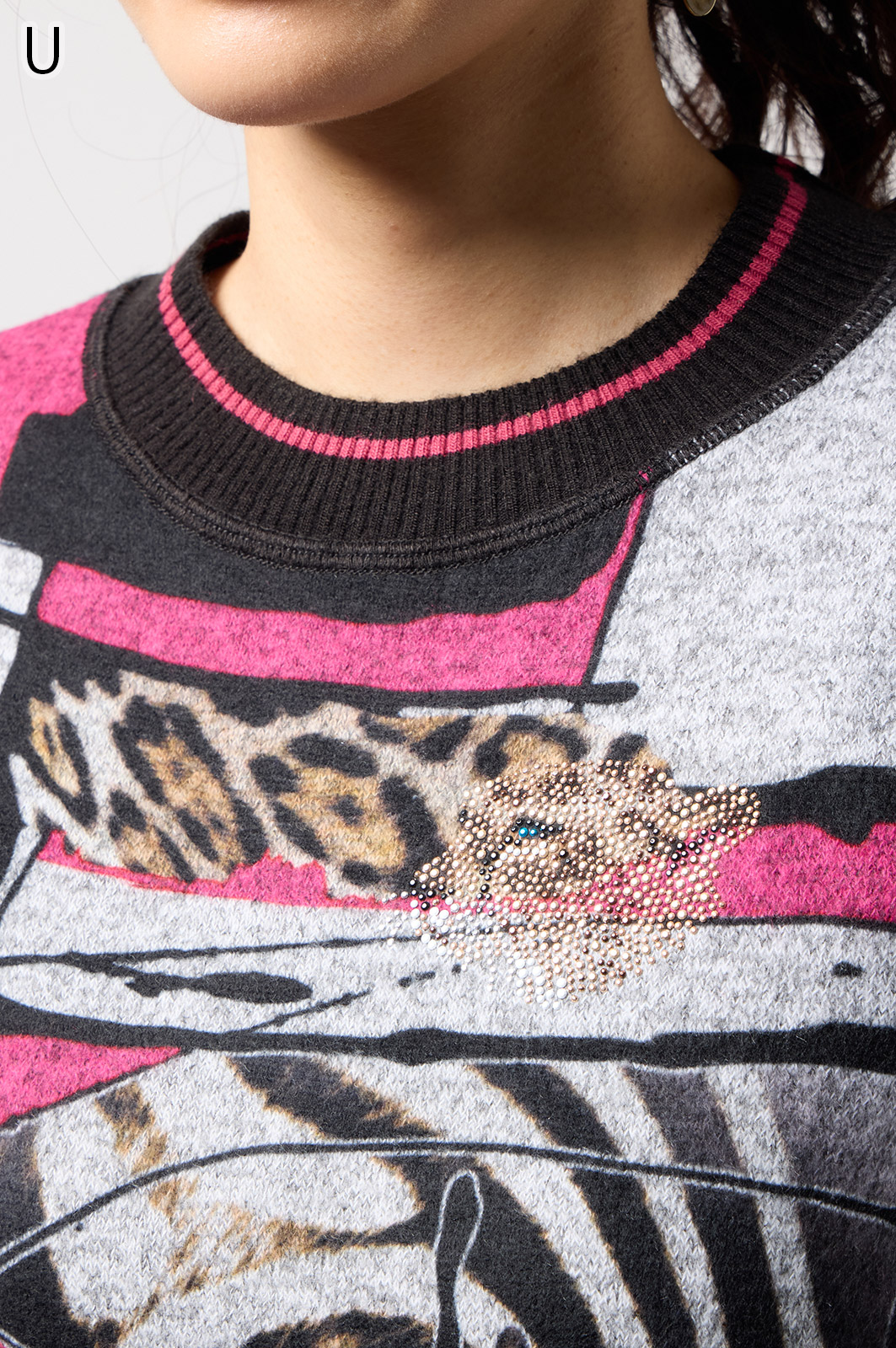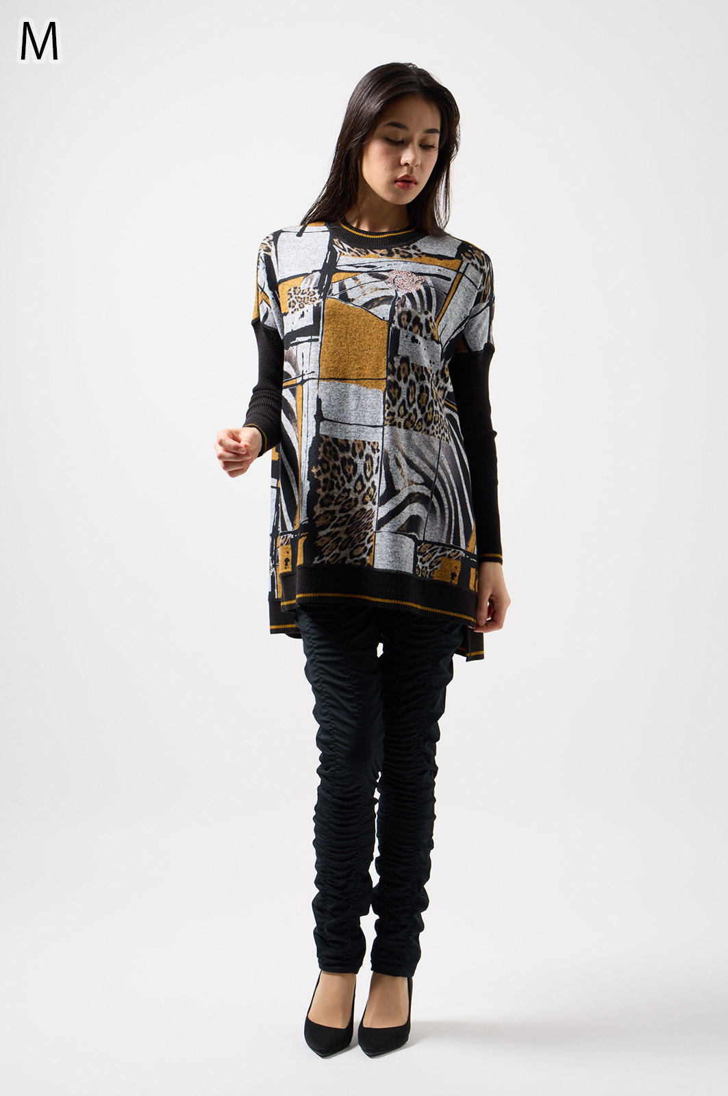 ヒョウ柄と幾何学柄が融合した個性際立つニット素材のTシャツ。衿・袖・裾にニットを使用し、上品なアクセントをプラス。程よいフィット感で快適な着心地を叶えます。